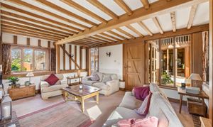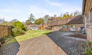 A beautifully presented grade 2 listed barn conversion believed to date from the early 1600’s with later Victorian additions, tucked away towards the end of this no through, private lane. Surrounded by open countryside and with far reaching views over farmland to the South Downs National Park.  With five double bedrooms and three separate bath/shower rooms, a triple aspect sitting room with Inglenook style fireplace, separate dual aspect dining room and a farmhouse style kitchen/breakfast room with high vaulted ceilings this characterful family home lies within just a few minutes walk of the picturesque and historic village High Street.