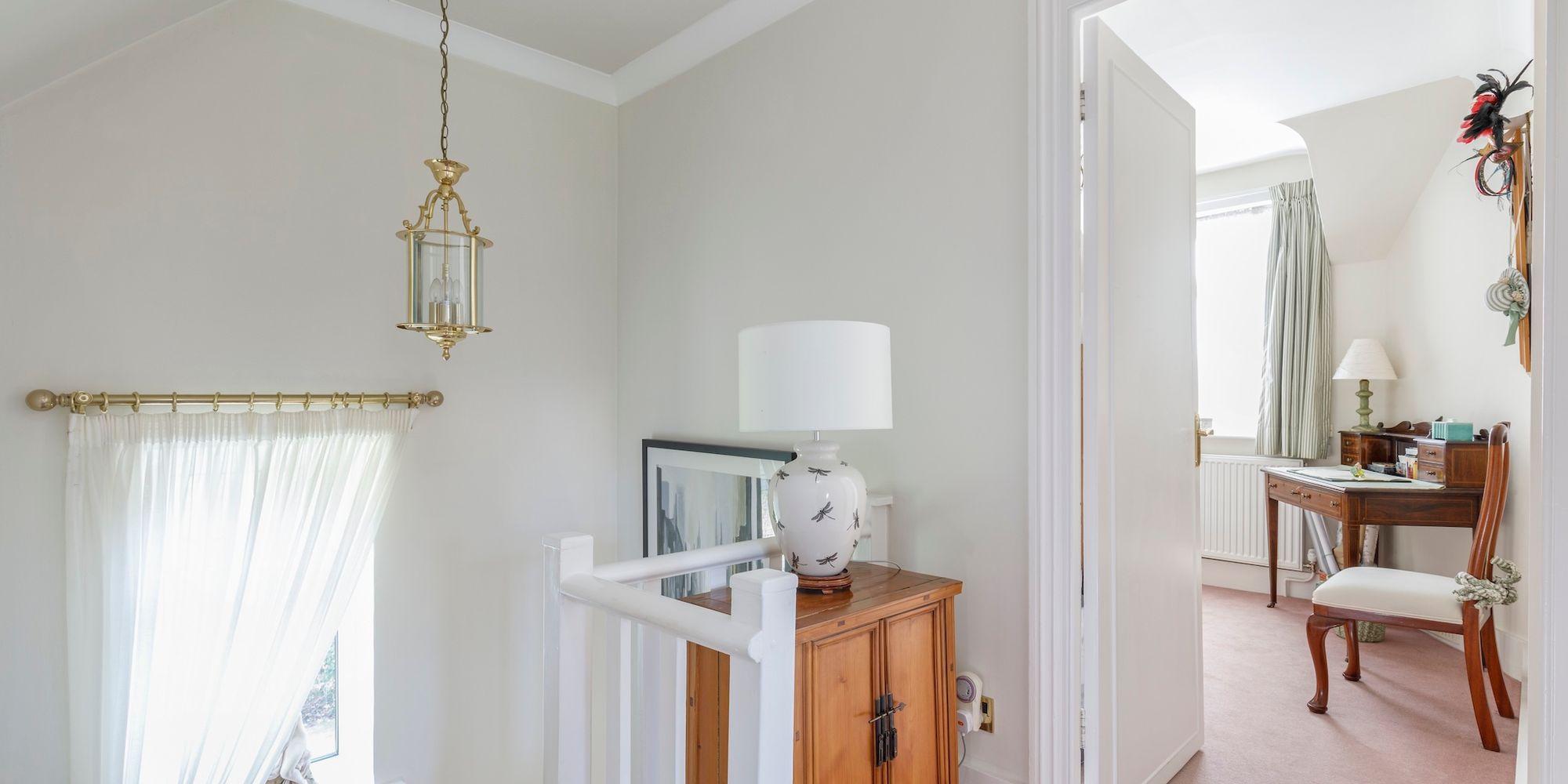 From the hall a staircase with double-sided storage, rises to the FIRST FLOOR LANDING where there are FOUR BEDROOMS all enjoying beautiful countryside views. The PRINICPAL SUITE comprises a double aspect BEDROOM, DRESSING ROOM with fitted wardrobing and dressing table leading into a contemporary style, refitted EN-SUITE BATH/SHOWER ROOM. BEDROOMS 2 and 3 are generous doubles with fitted wardrobe cupboards whilst BEDROOM 4 a large single, all of which are served by a FAMILY BATHROOM equipped with a white suite.