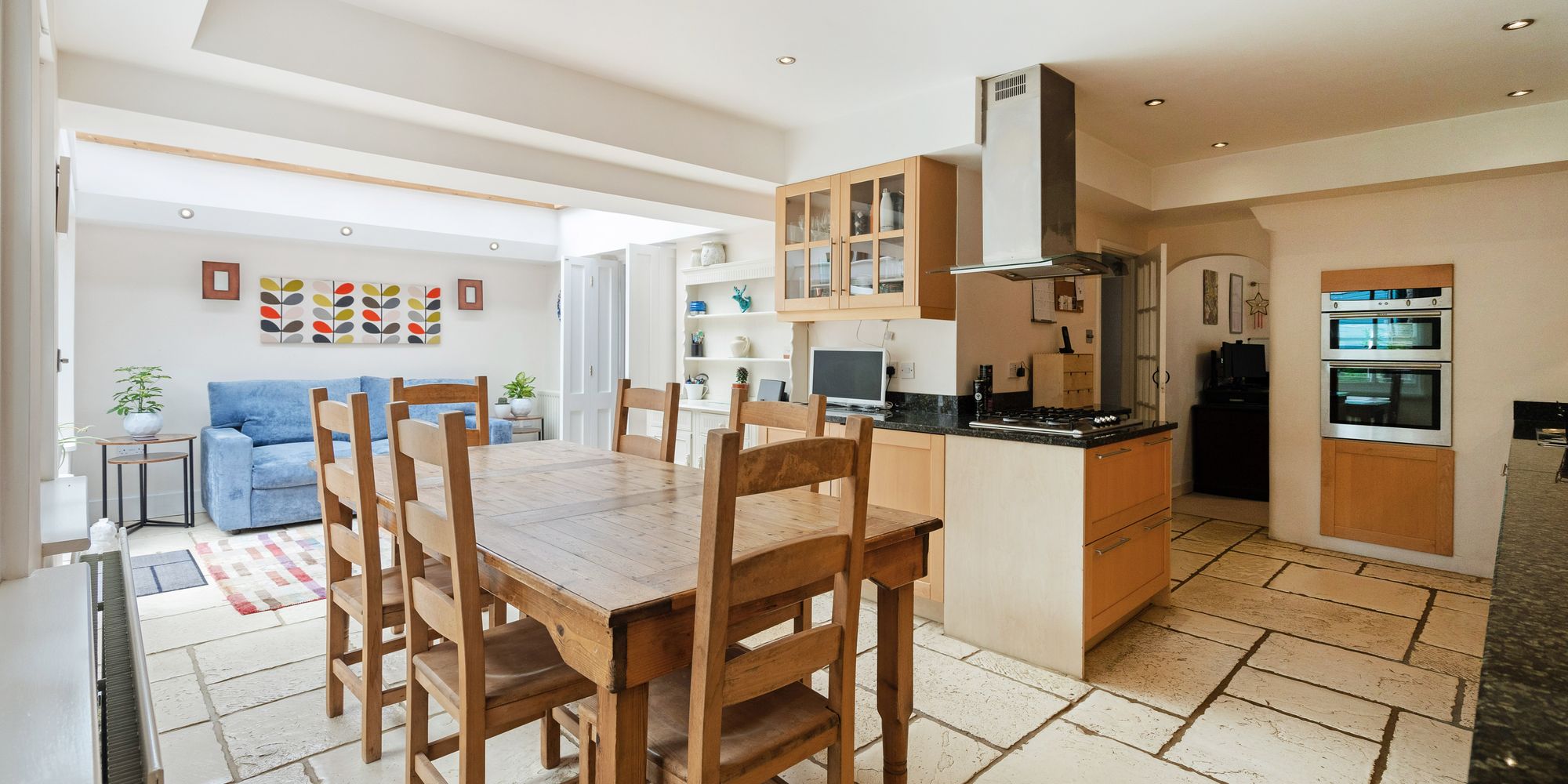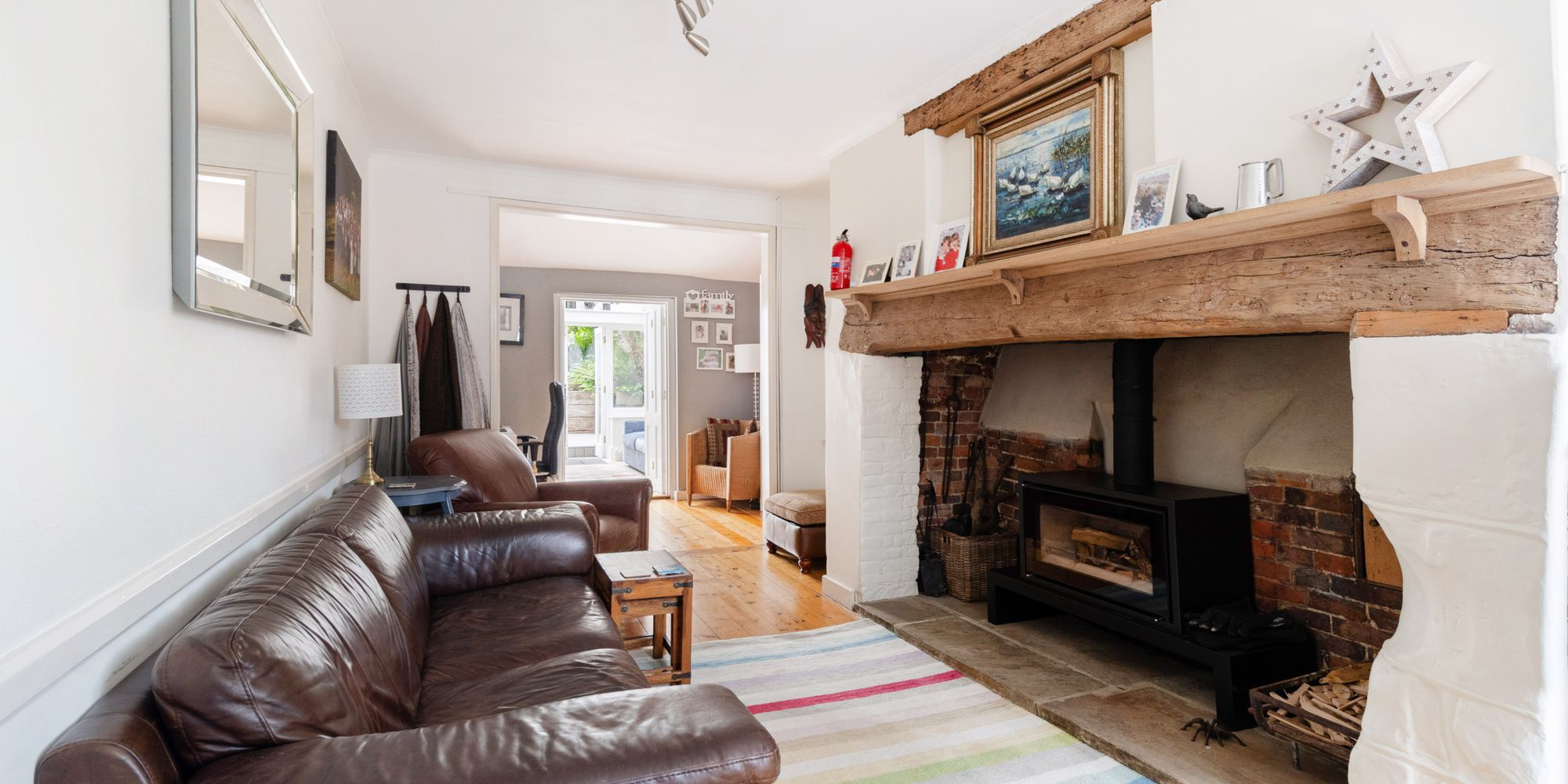 The accommodation in brief comprises: ENTRANCE LOBBY opening into a long RECEPTION HALL with CLOAKROOM/WC. TWO SITTING ROOMS, both sharing a front aspect with stripped wooden floors and woodburning stoves. The smaller of the two is an elegant room with a beautiful large bay window, whilst the secondary sitting room is slightly set-back with an Inglenook creating a beautiful focal point to this large room which in turn flows through to a STUDY area. From here, double doors open into the FAMILY AREA of the OPEN PLAN KITCHEN/BREAKFAST/ DINING ROOM being particularly bright and airy with its vaulted roof lantern. The DINING AREA provides ample space for a large table and chairs whilst the KITCHEN is comprehensively fitted with wooden-fronted Shaker-style cabinetry complemented with contrasting black granite worksurfaces. Integrated appliances include double eye-level oven, dishwasher, washing machine and fridge/freezer. Additionally, is a WALK-IN PANTRY with window. Off the kitchen is a further reception room, currently used as a HOME OFFICE with window to side aspect.