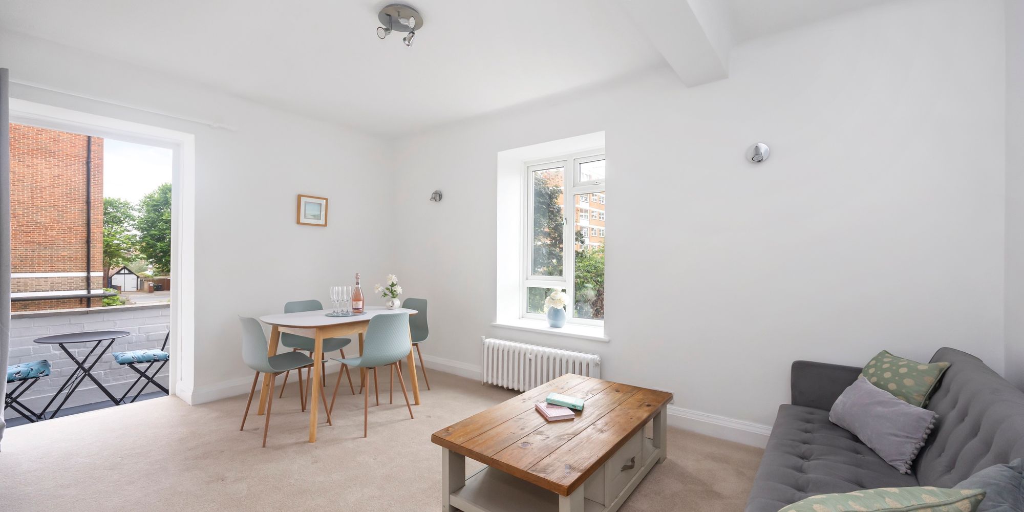- DOUBLE ASPECT LOUNGE/DINER WITH FRENCH DOORS OPENING ONTO SMALL BALCONY