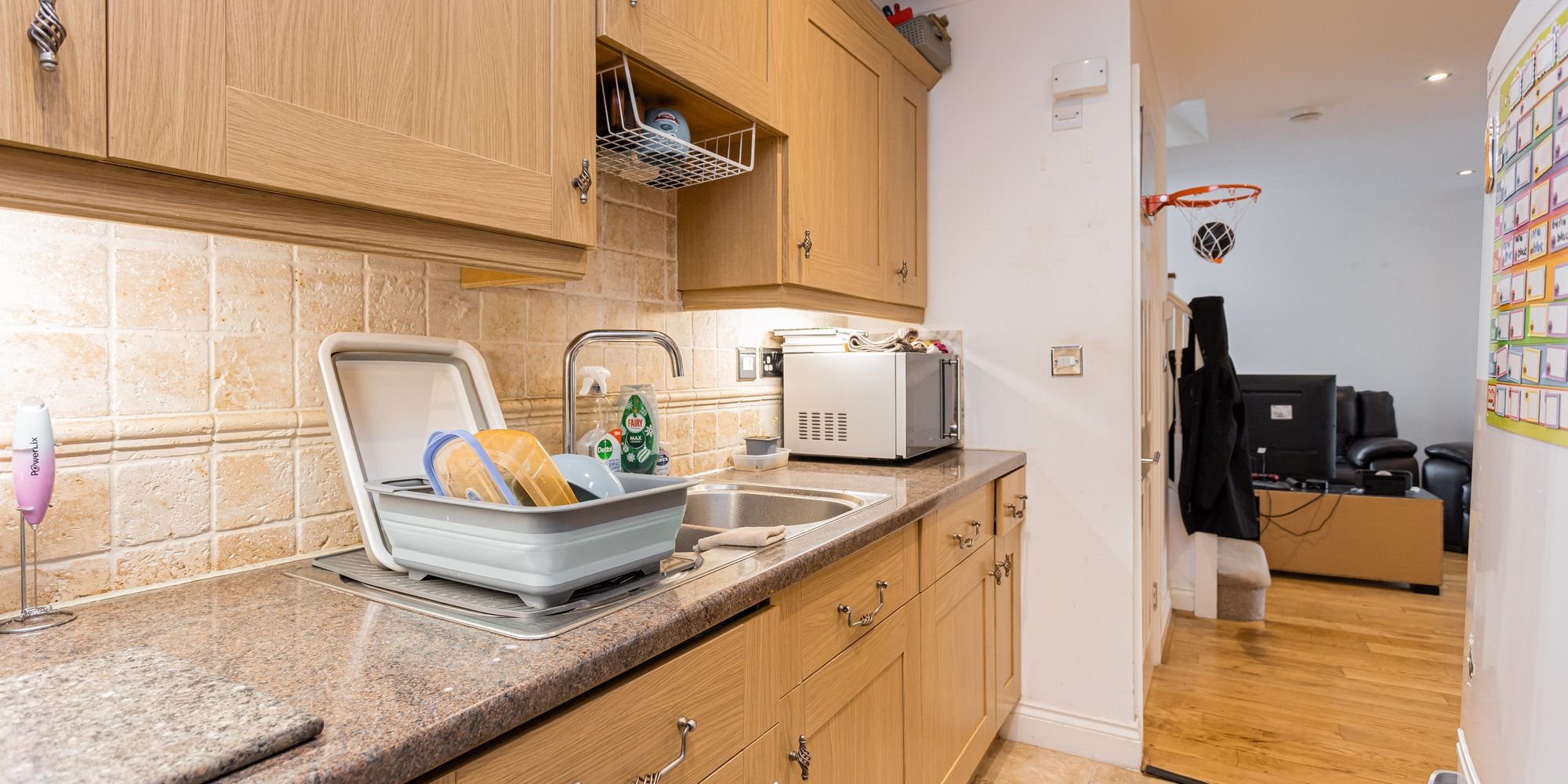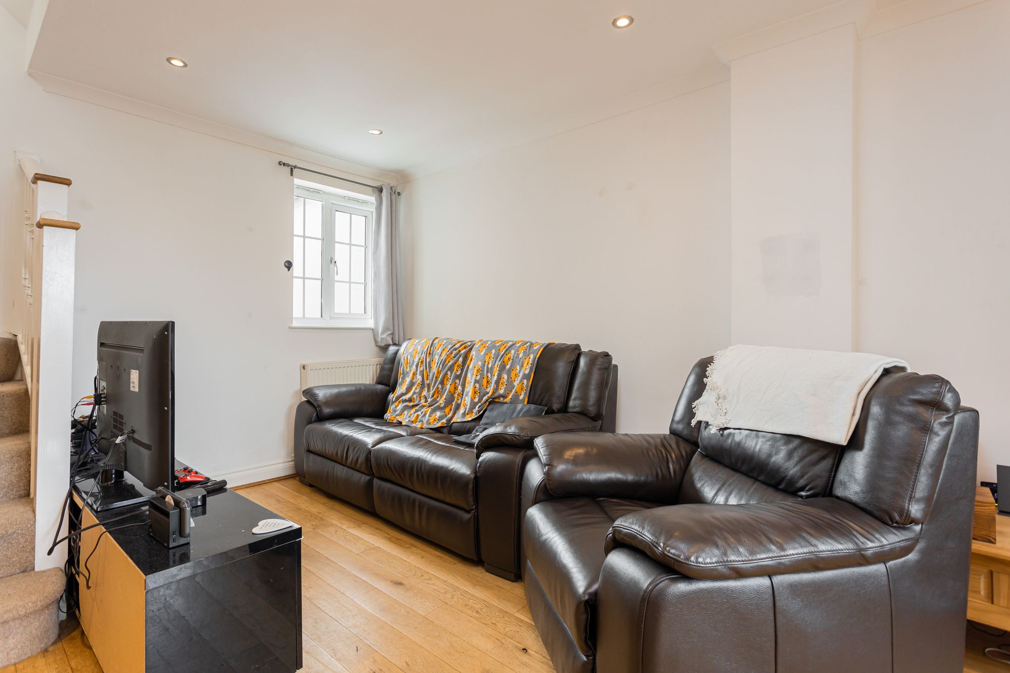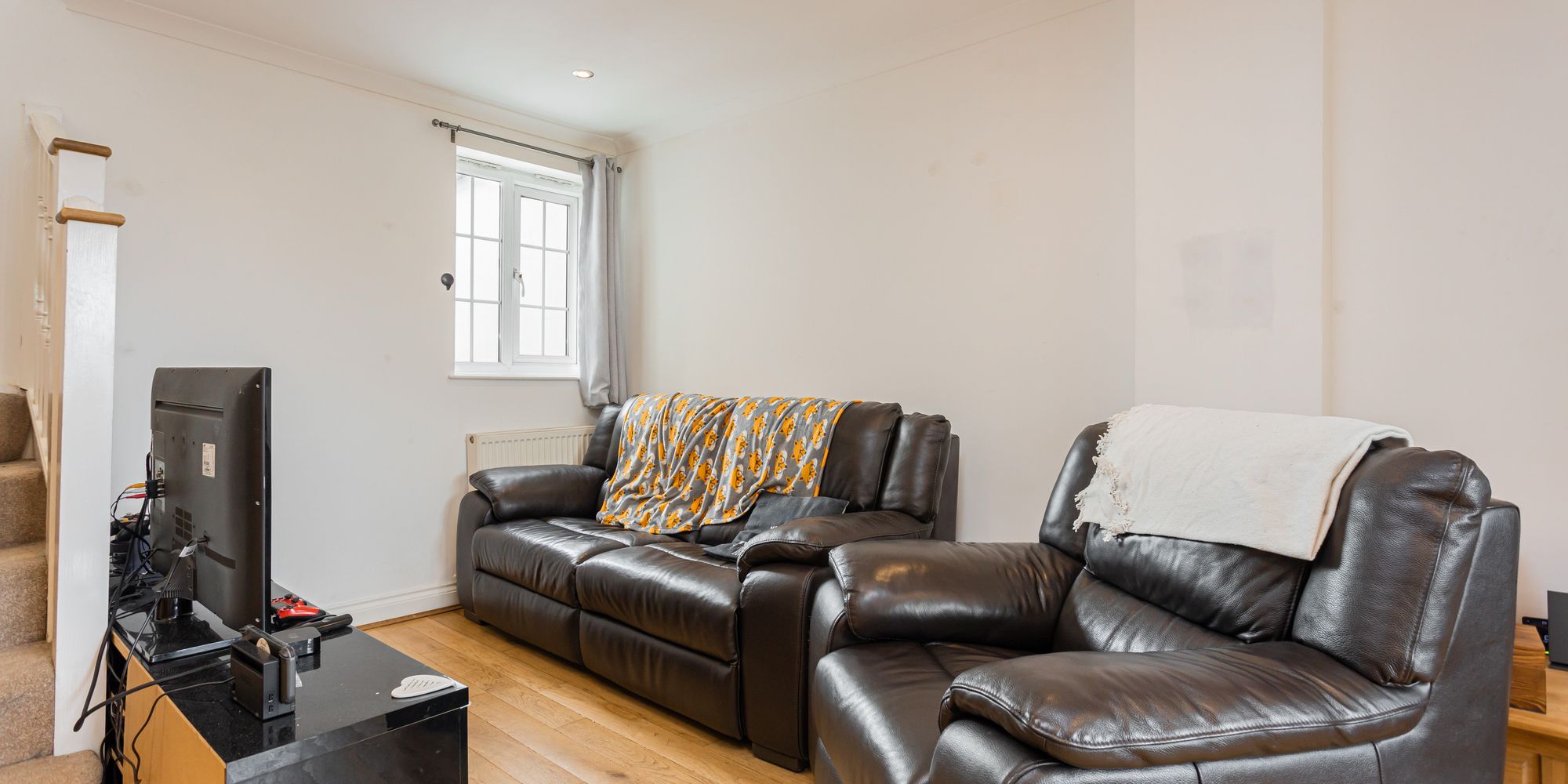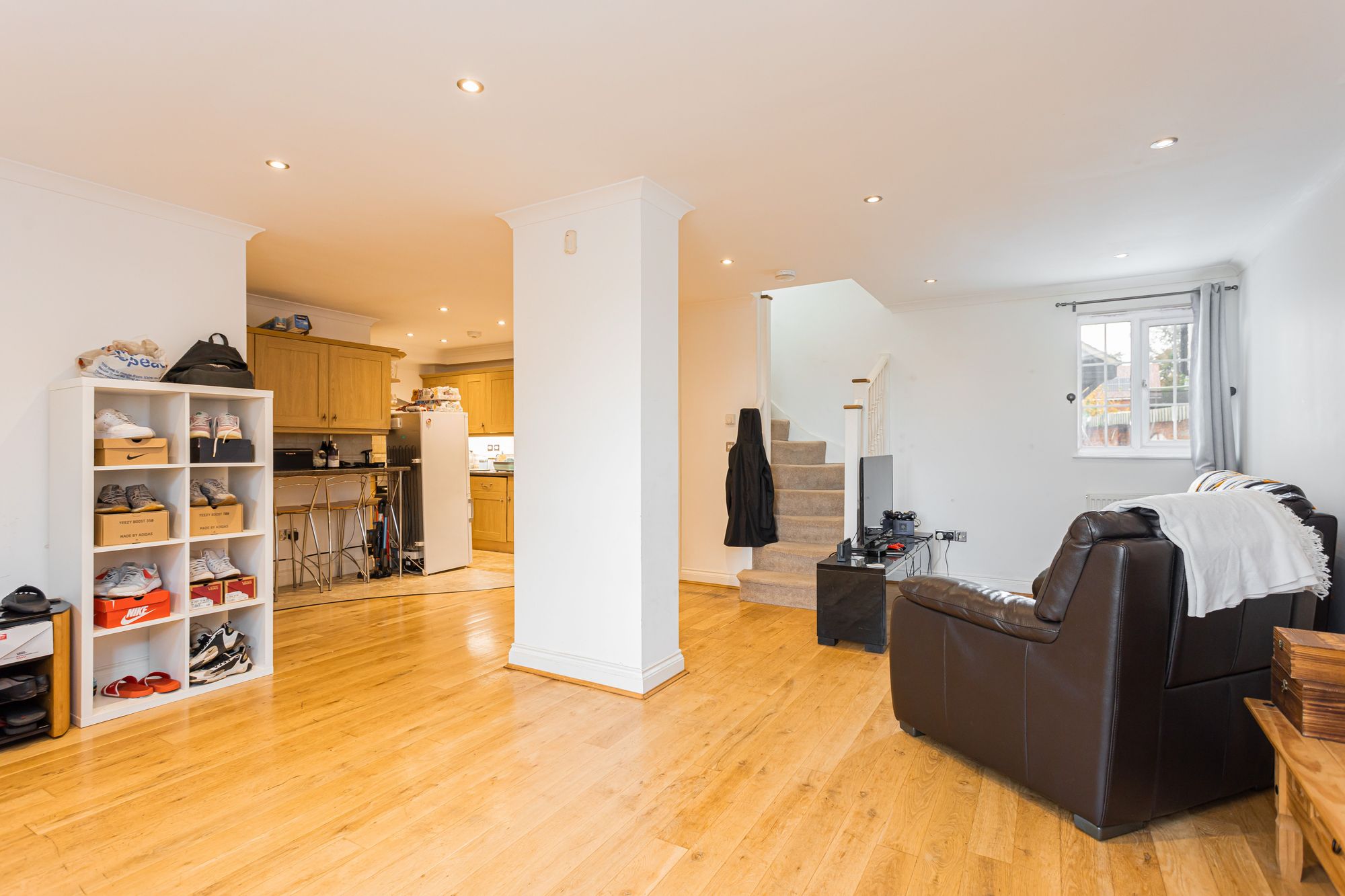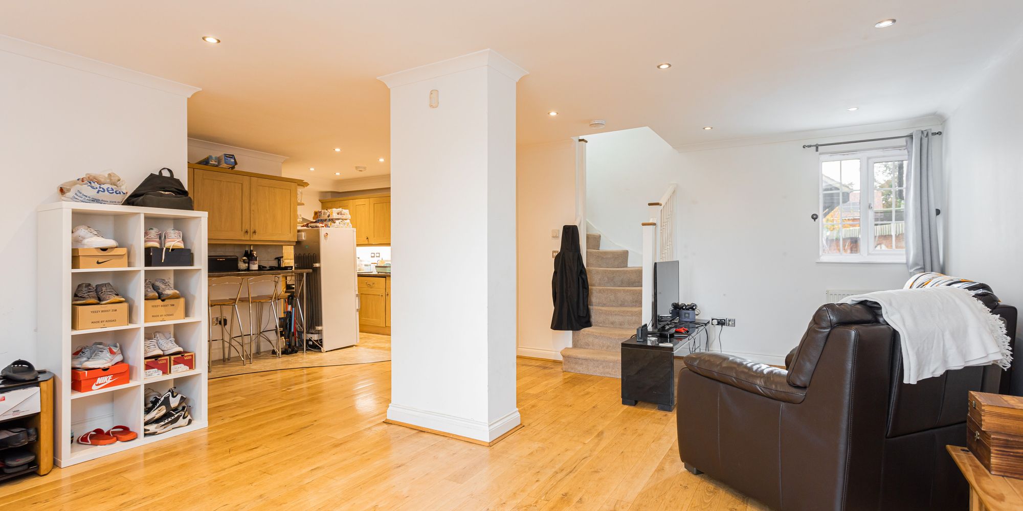 - Open plan living/dining room/kitchen with integrated appliances