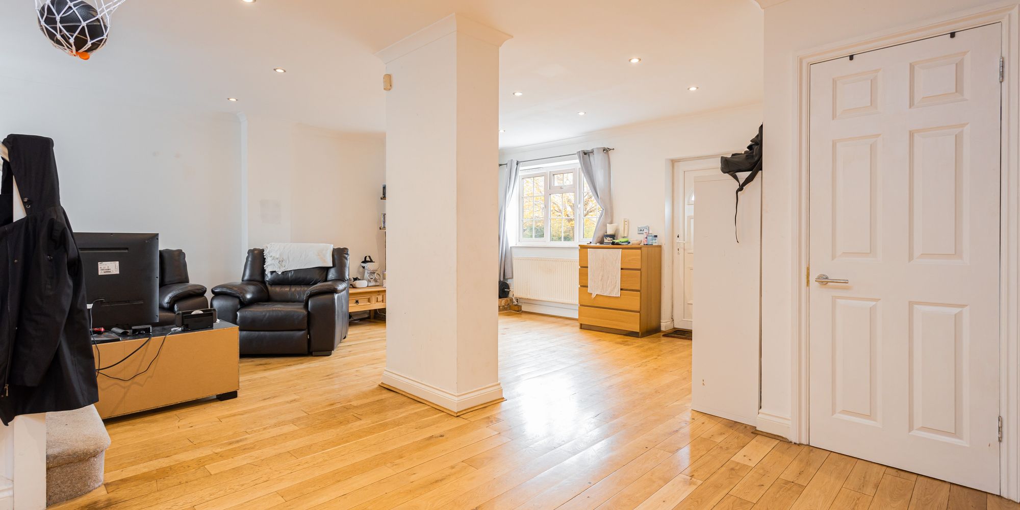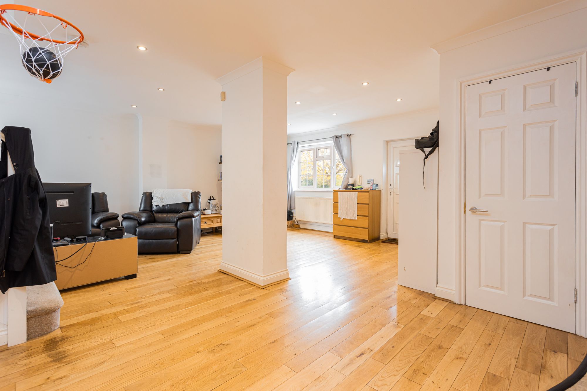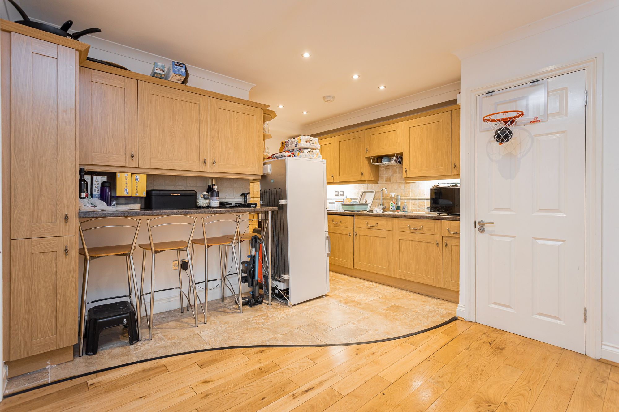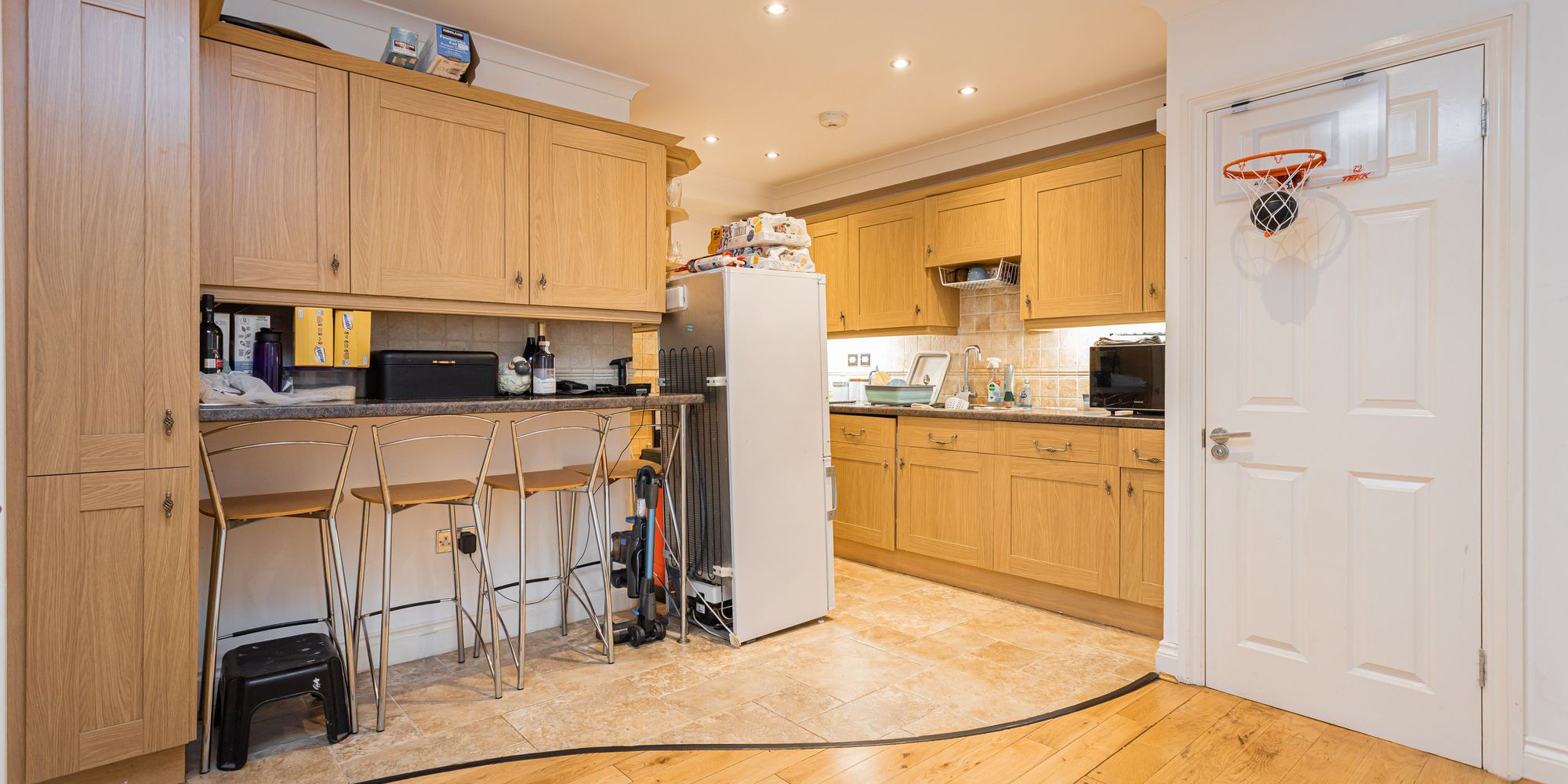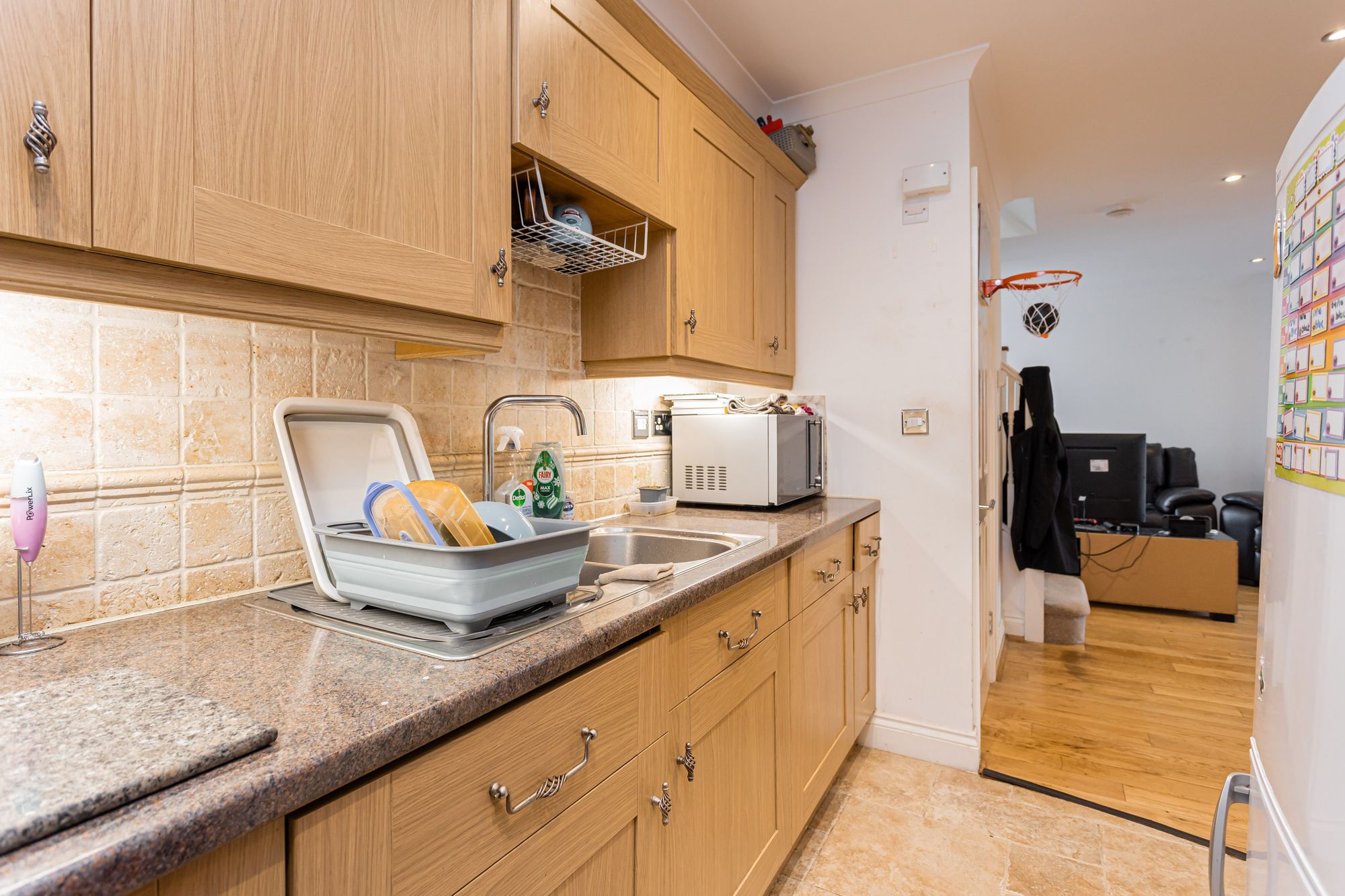 - Open plan living/dining room/kitchen with integrated appliances