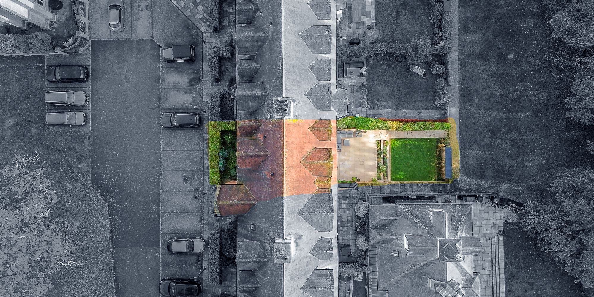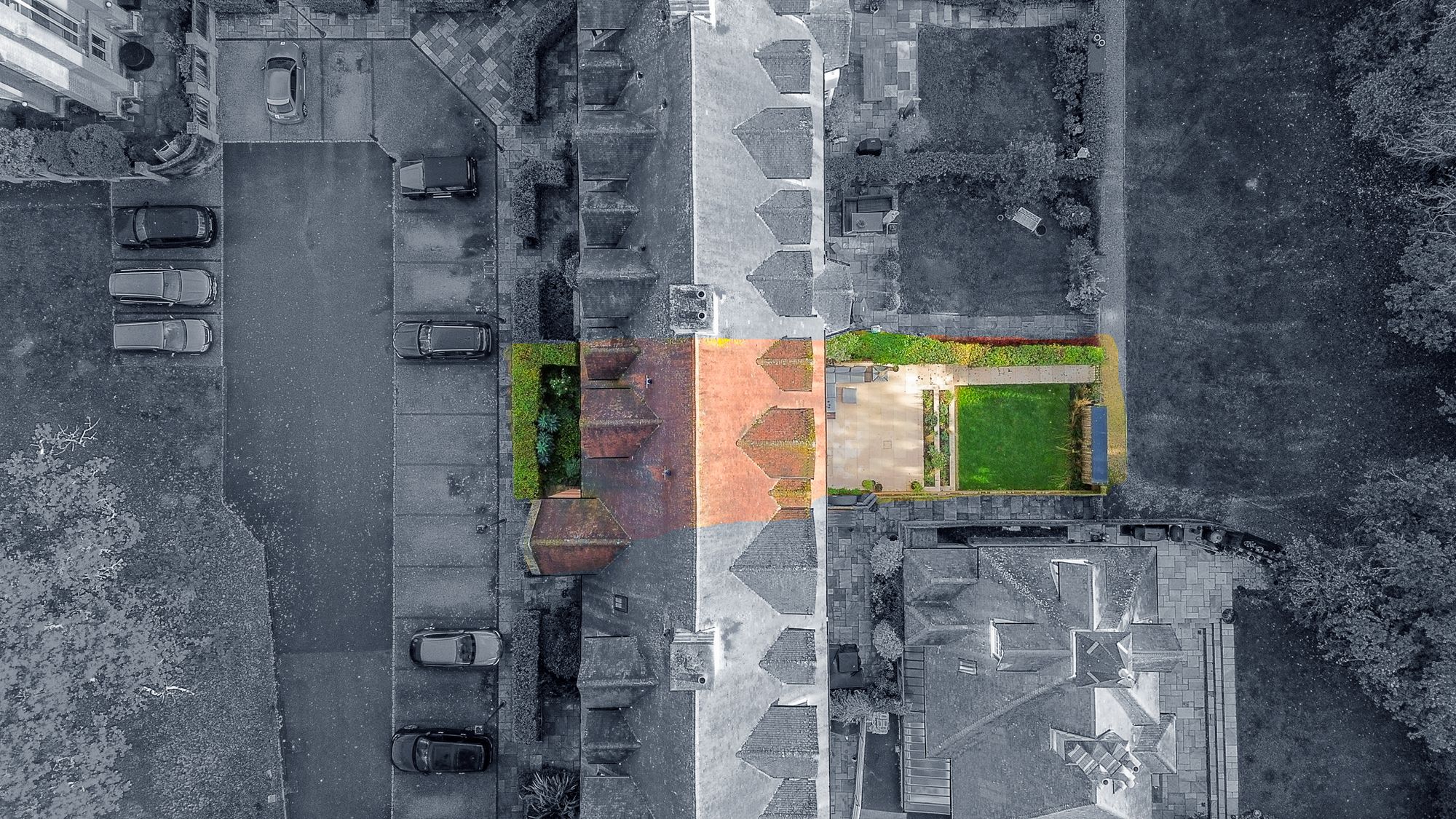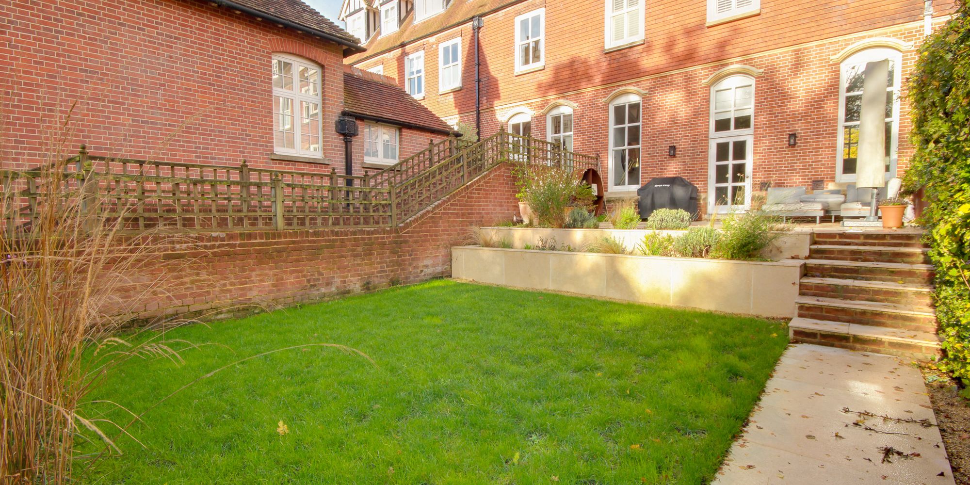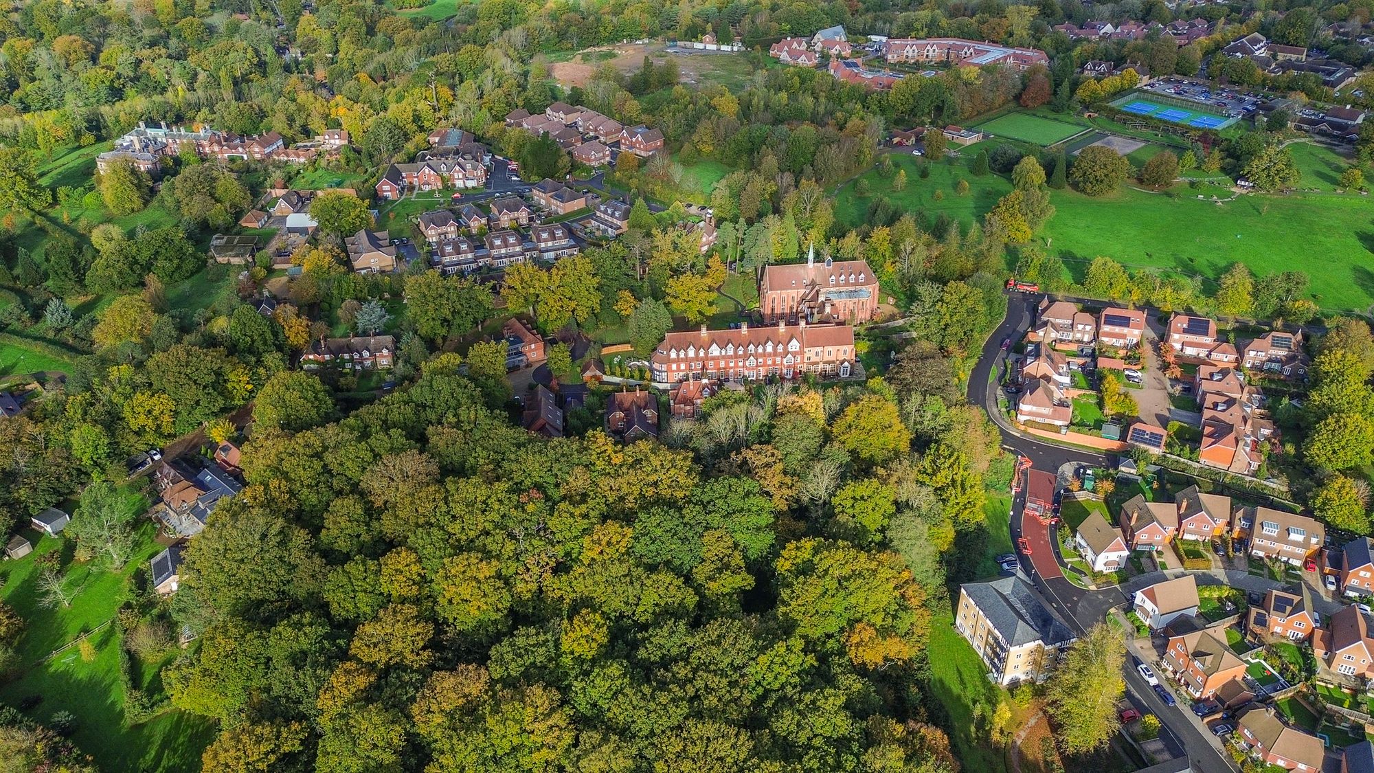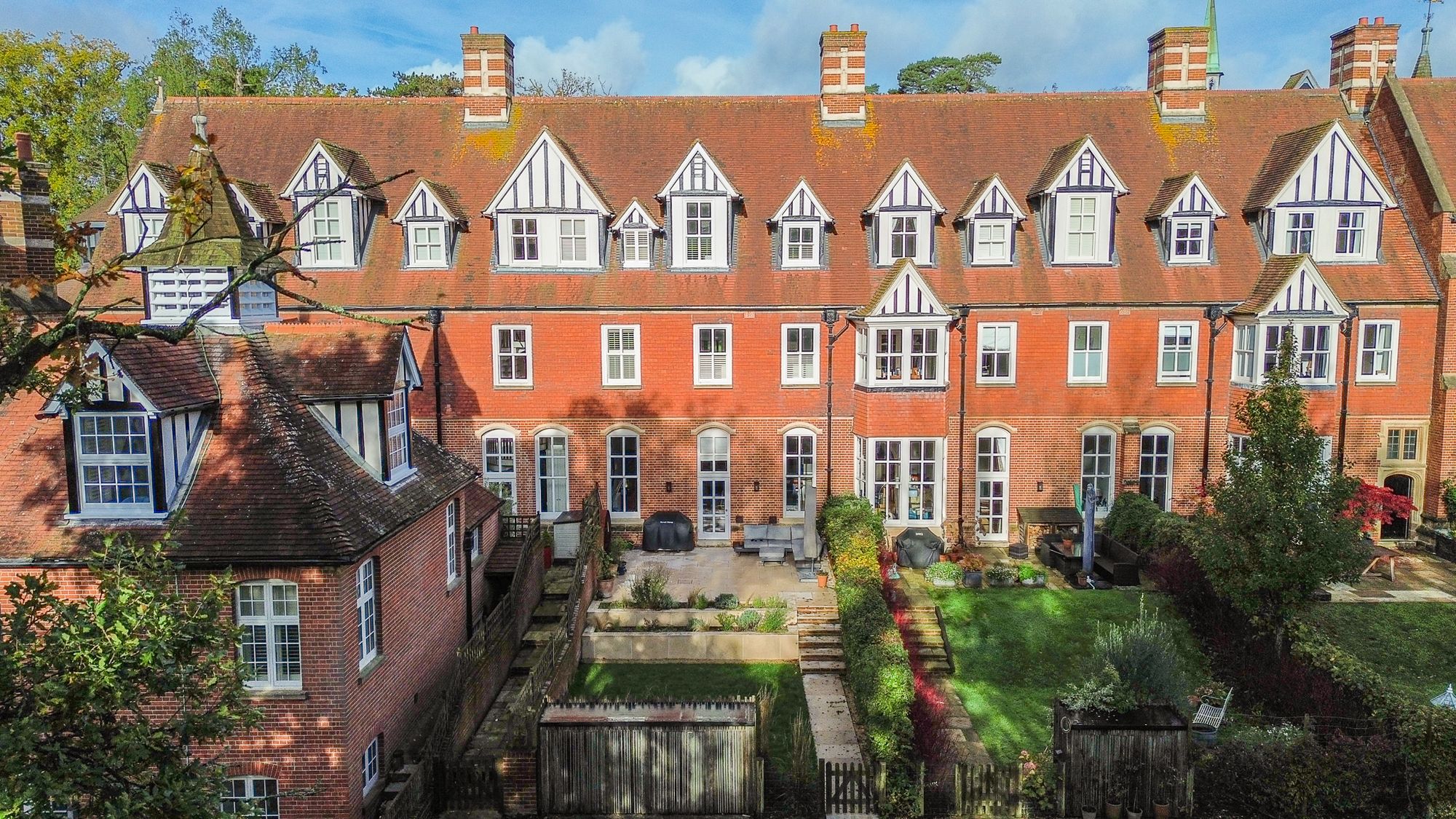 The 12 houses that make up Grosvenor Hall all collectively own the freehold of the communal gardens and ancient woodland for which they all pay a service charge of approximately £200 per month for the upkeep.