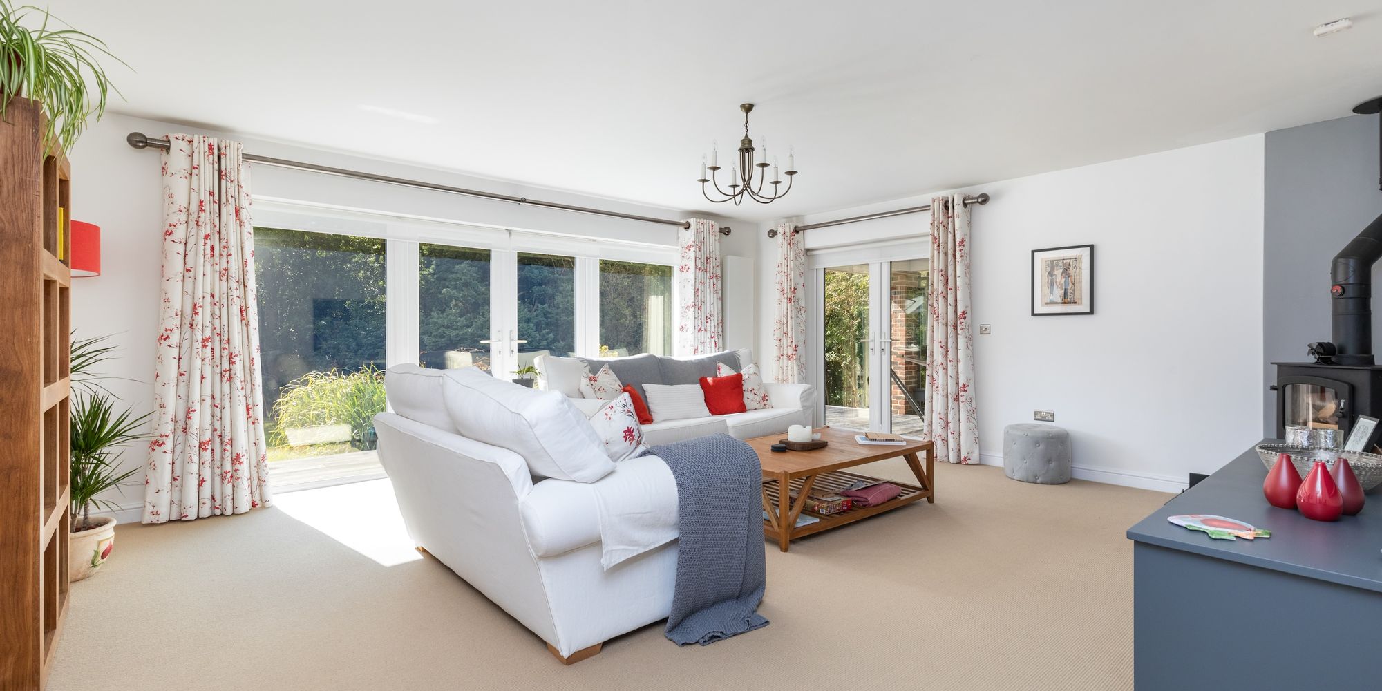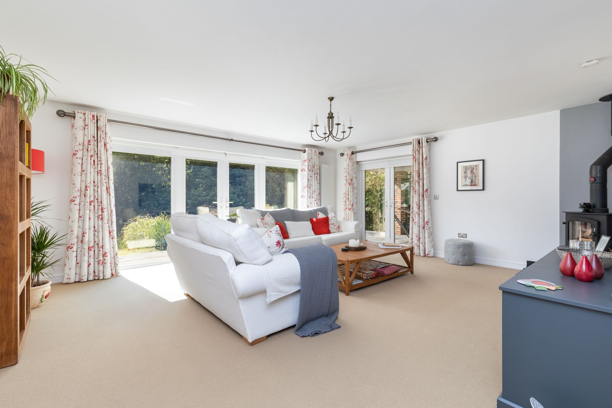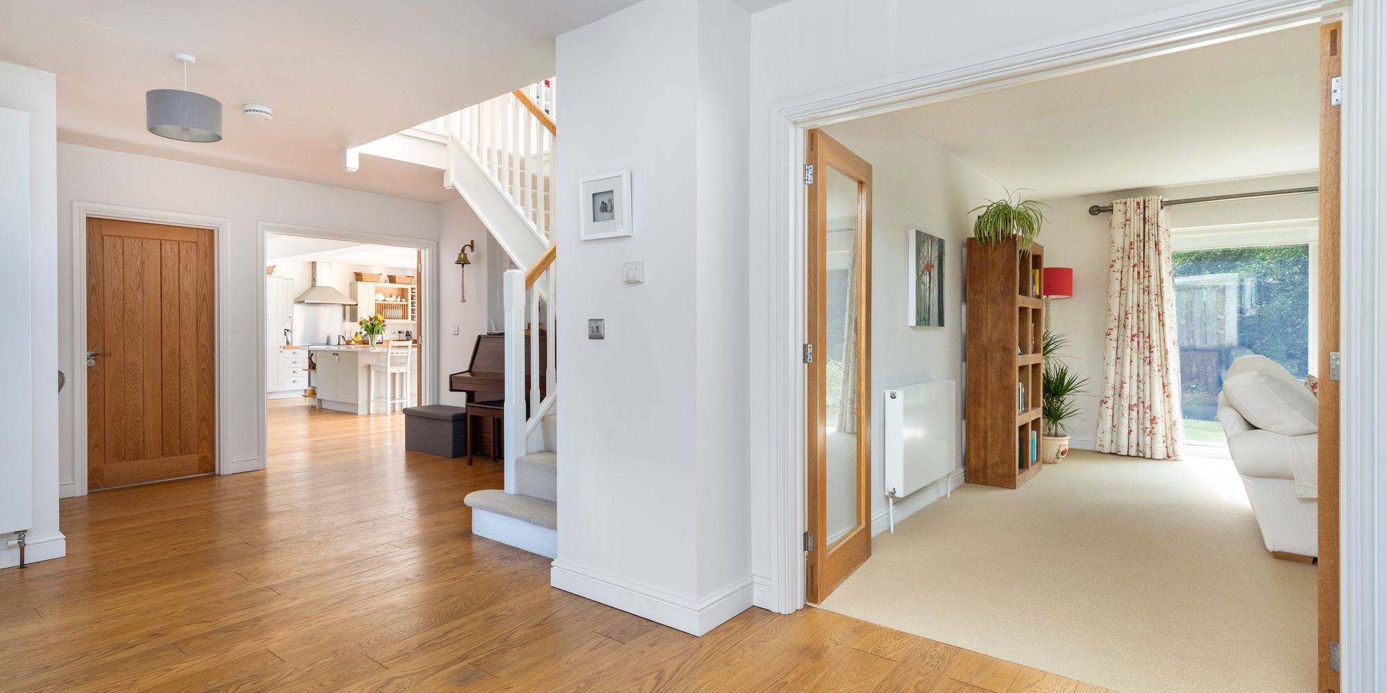 The accommodation comprises: entrance hallway with ample space for pushchairs, shoes and winter coats, cloakroom, utility room with access into the double garage, office/study and 20’ 17’ double aspect sitting room with wood burner and 2 sets of French doors onto the garden.