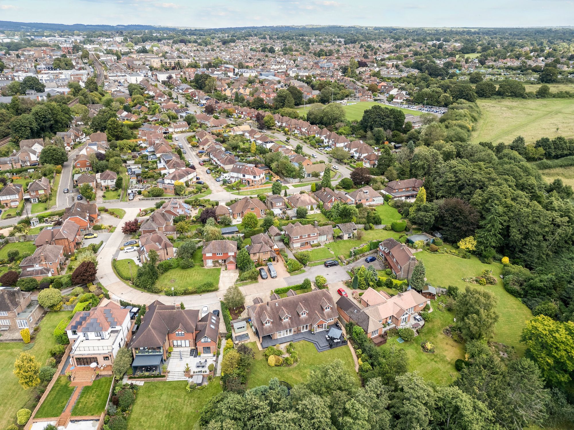A superbly presented and versatile 4 double bedroom, 3 reception room detached house of 3,544 sq ft, originally built in the 1960s and transformed into a uniquely special lifestyle home by the current sellers. The property boasts a great sized 33’ X 21’ kitchen/breakfast/family room, master suite, driveway for 3 vehicles, double garage and secluded garden with natural habitat.