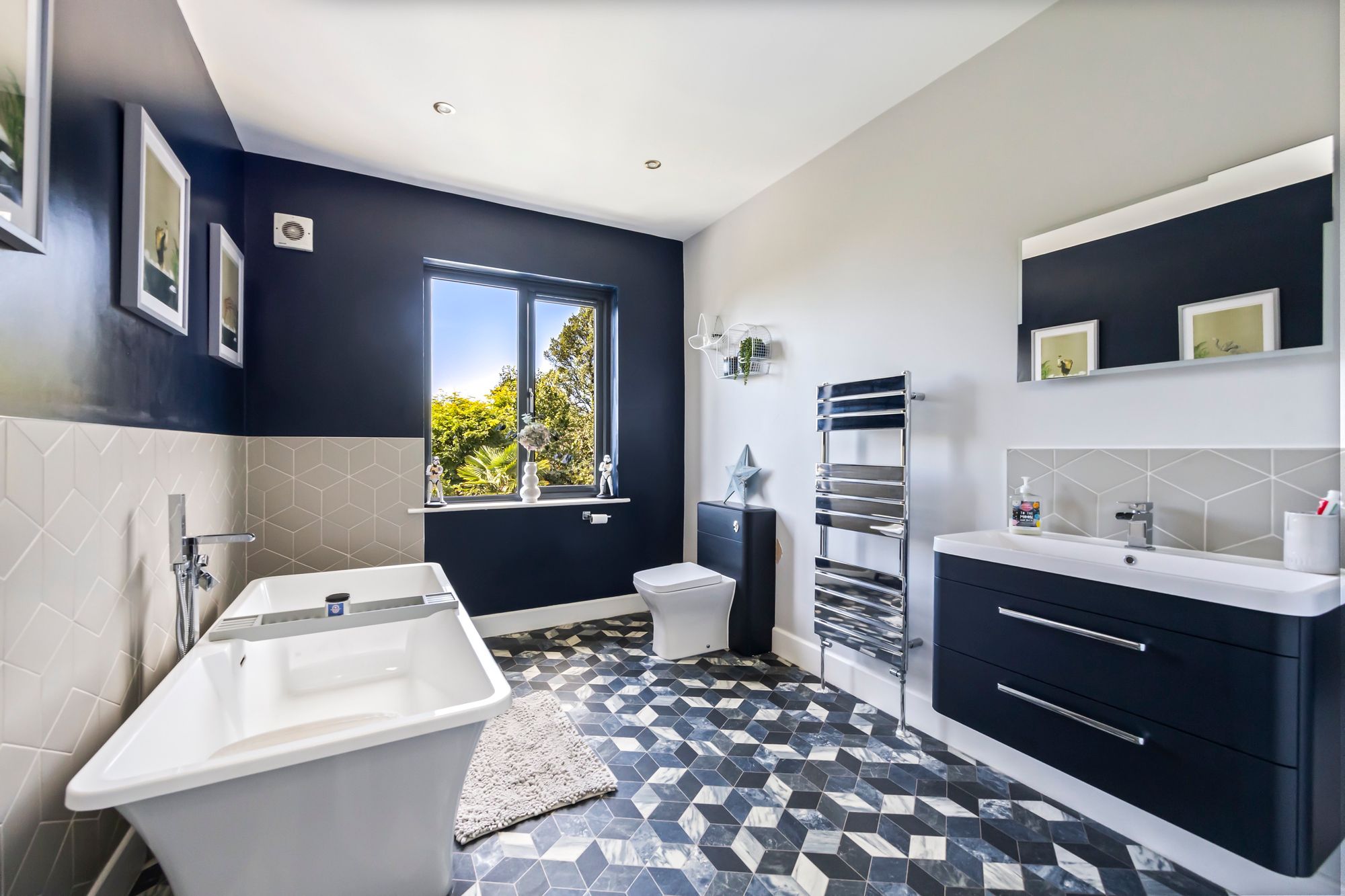 The property boasts multiple reception rooms, offering a perfect setting for entertaining loved ones. Revel in sea views from both the first and second floors, adding a touch of tranquillity to your daily routine. Three spa-like bathrooms, two of which are en-suite, provide a luxurious retreat within the confines of your own home.