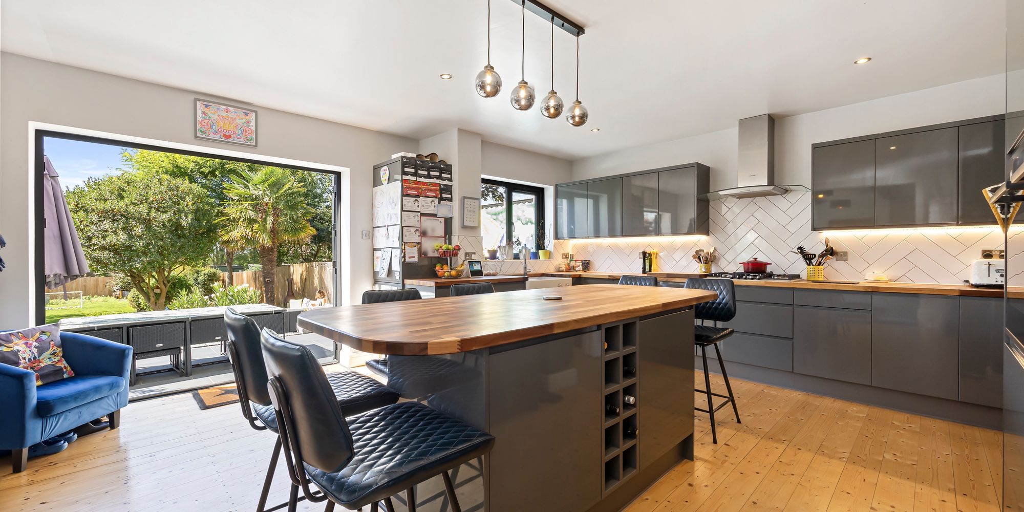 - Plush Open Plan Kitchen With Feature Island, Built In Appliances And Separate Utility Room