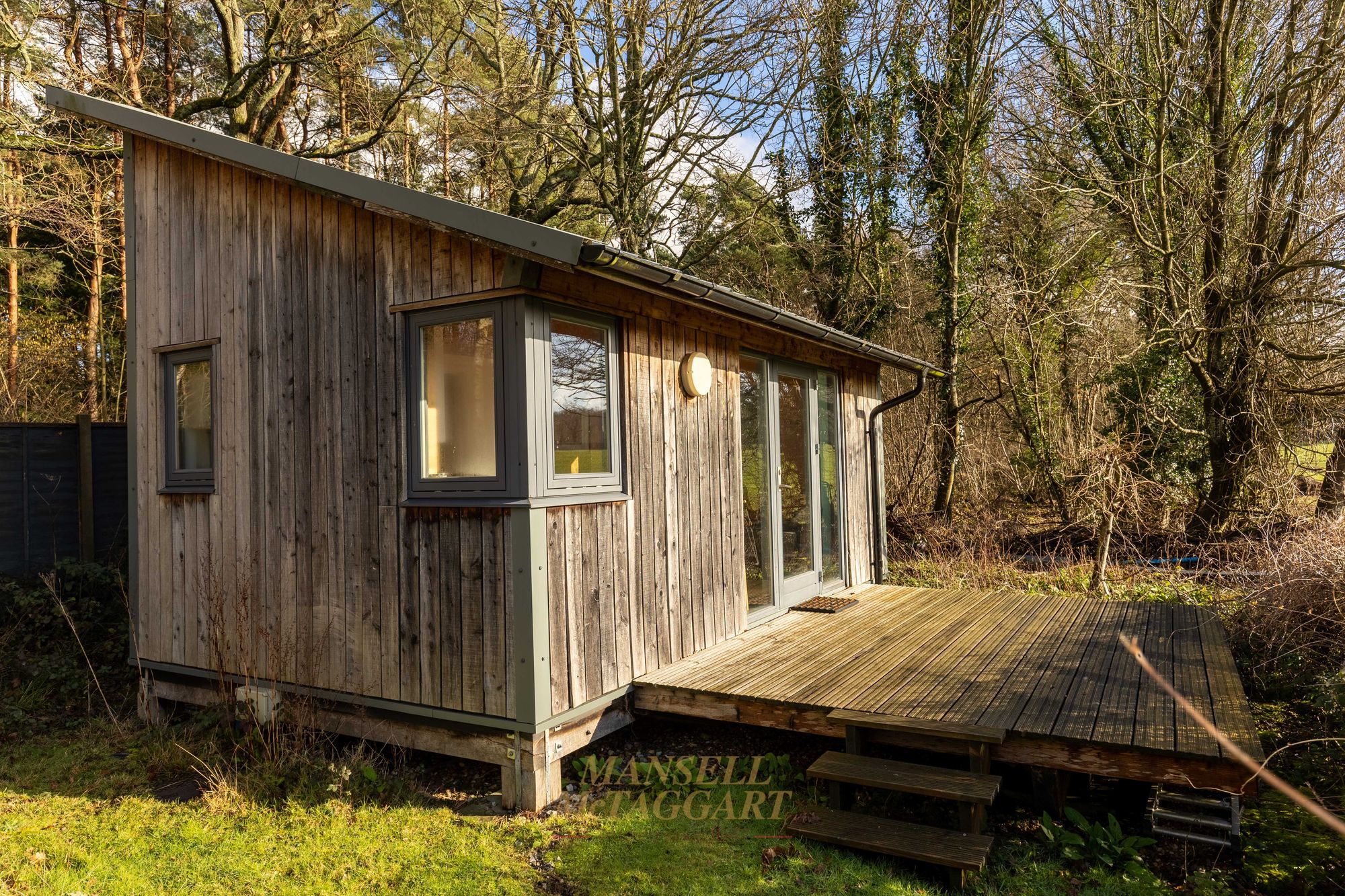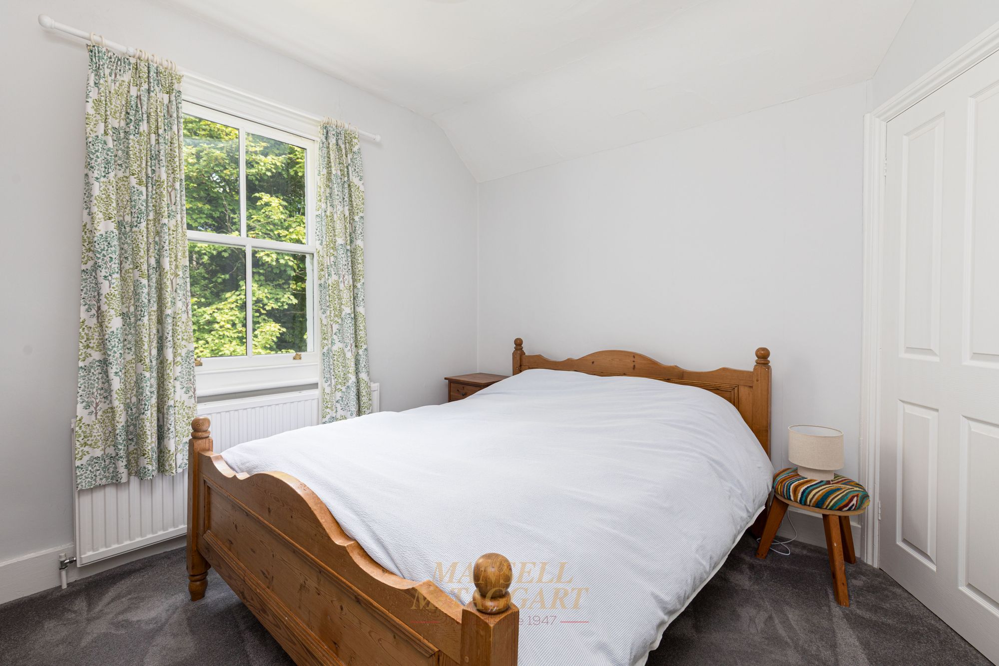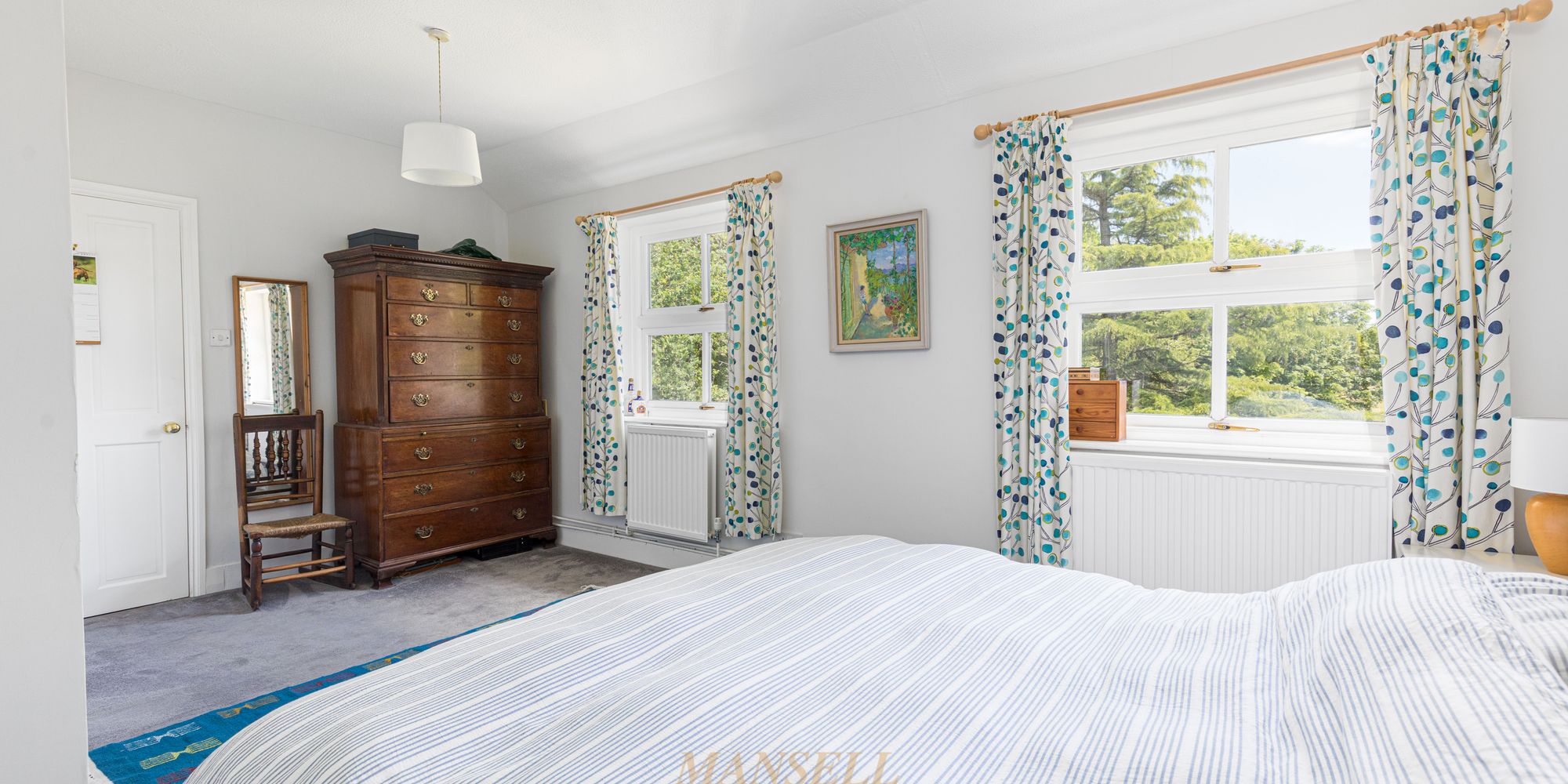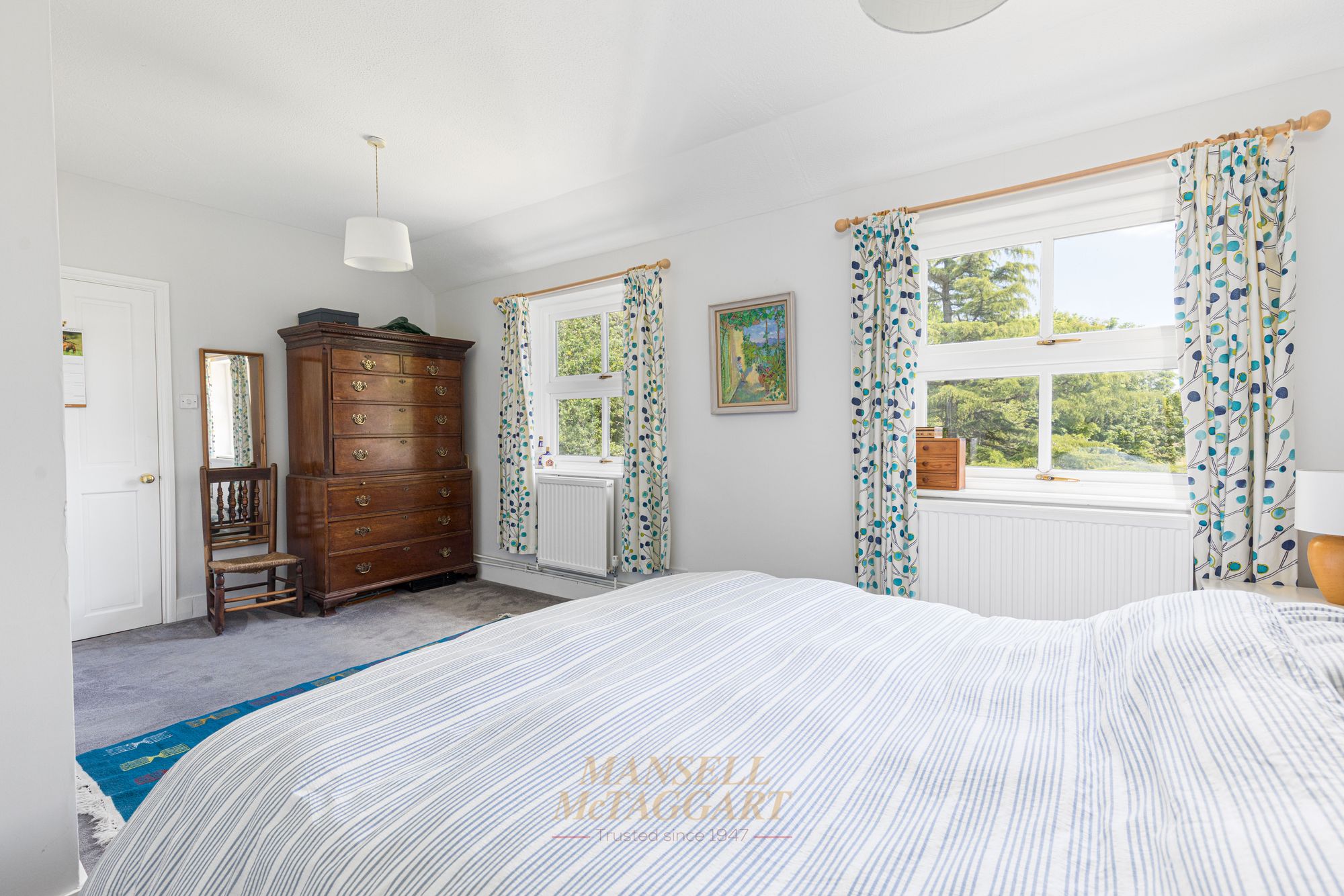 The generously sized rear garden is predominantly laid to a lawn framed by mature trees and hedged borders, offering utmost privacy. Concealed behind some hedging is the oil tank, responsible for keeping the home warm and cosy throughout the year along with the sewage treatment system. Admire the idyllic views of the countryside and farmland owned by Paddockhurst that unfurls in the distance, creating a serene backdrop for the property. The detached self-contained annexe is of architect design and constructed in 2013 adding an extra layer of versatility to the property, with a studio layout comprising a living/bedroom area, mezzanine sleeping area, a convenient kitchenette, and a modern wet room, providing endless possibilities for guests, extended family, or even as potential additional income.