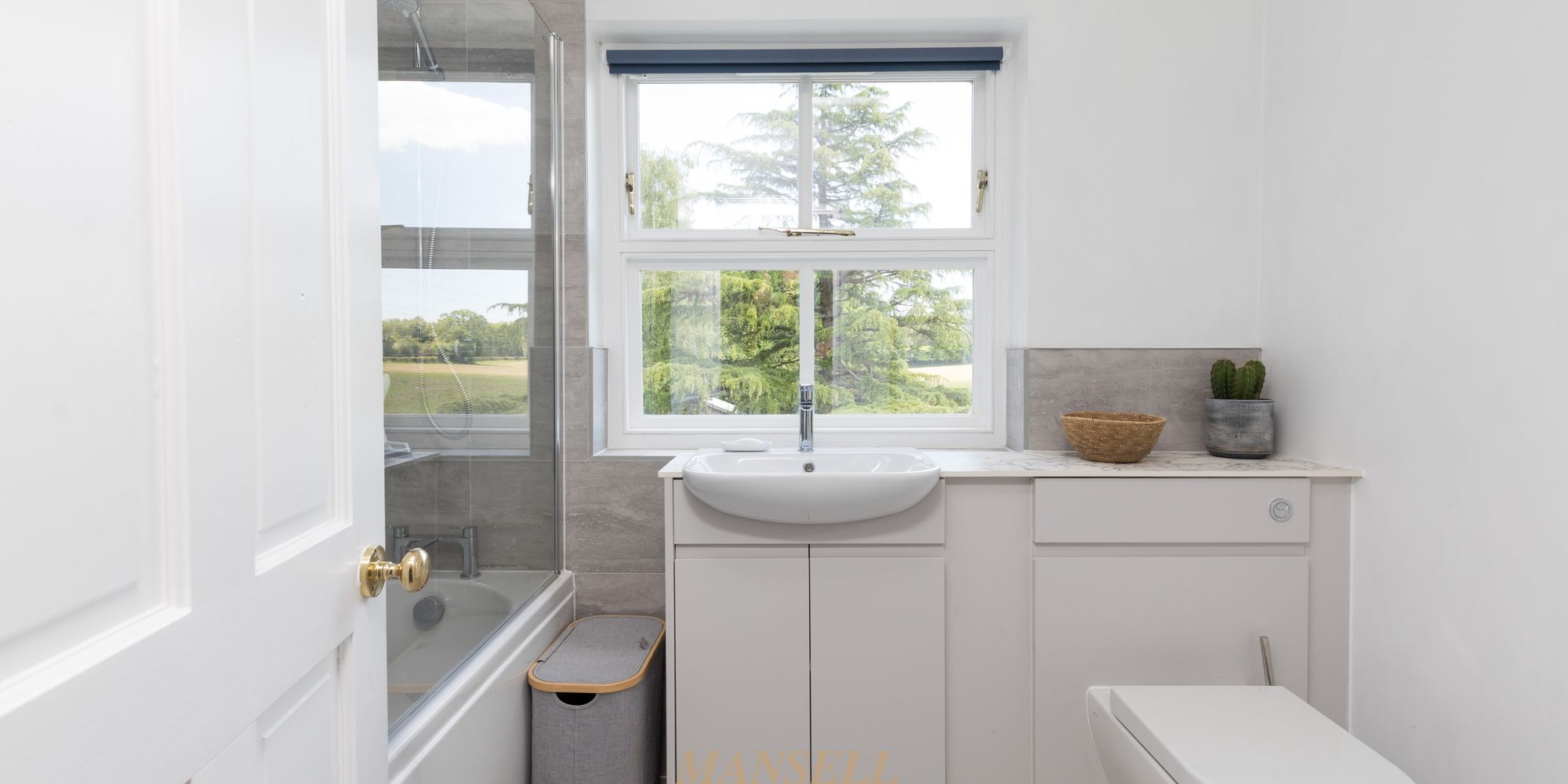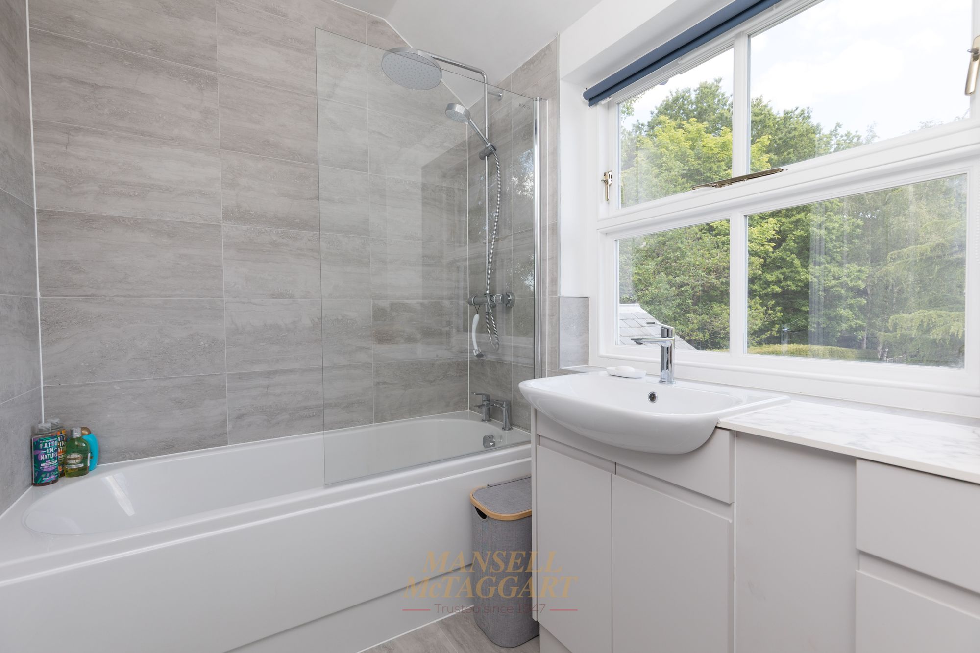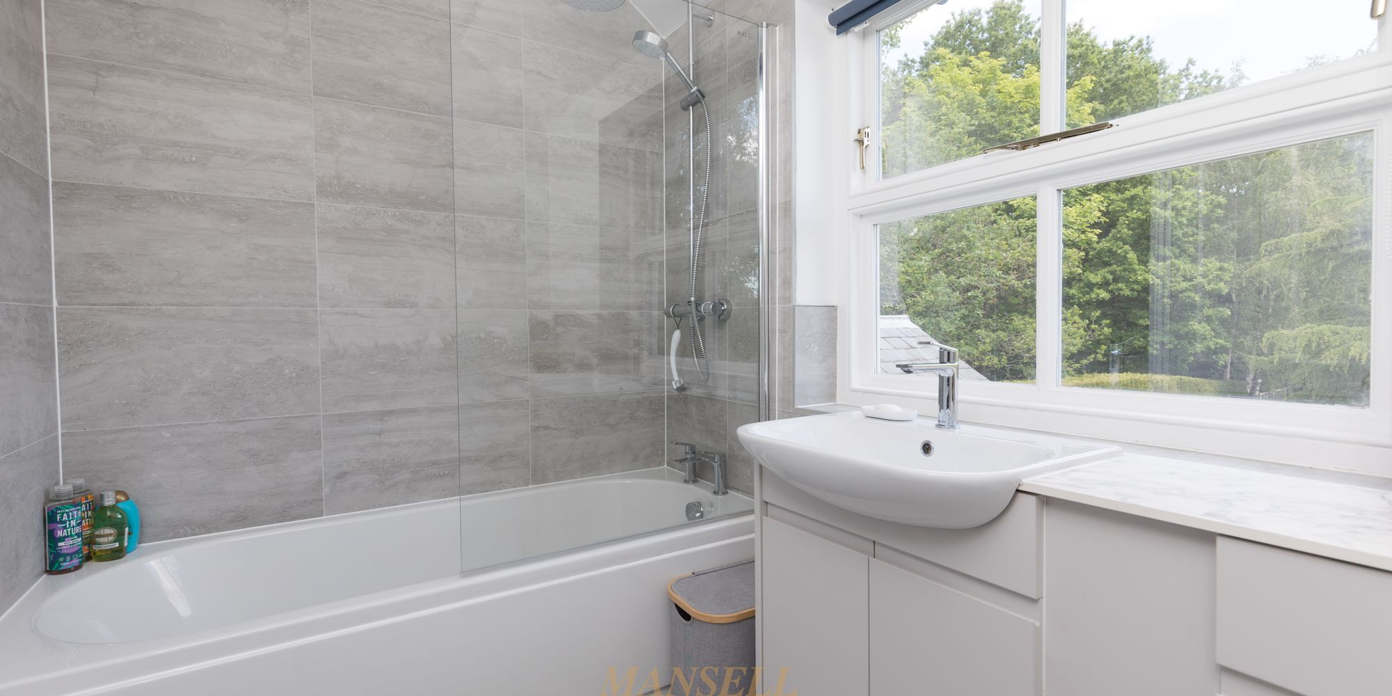 Finally, a brand new (2025) family bathroom has been installed boasting a contemporary suite and luxurious fittings including a panelled bath with rainfall shower and handheld shower, wash hand basin with vanity storage, low level WC and chrome towel warmer.