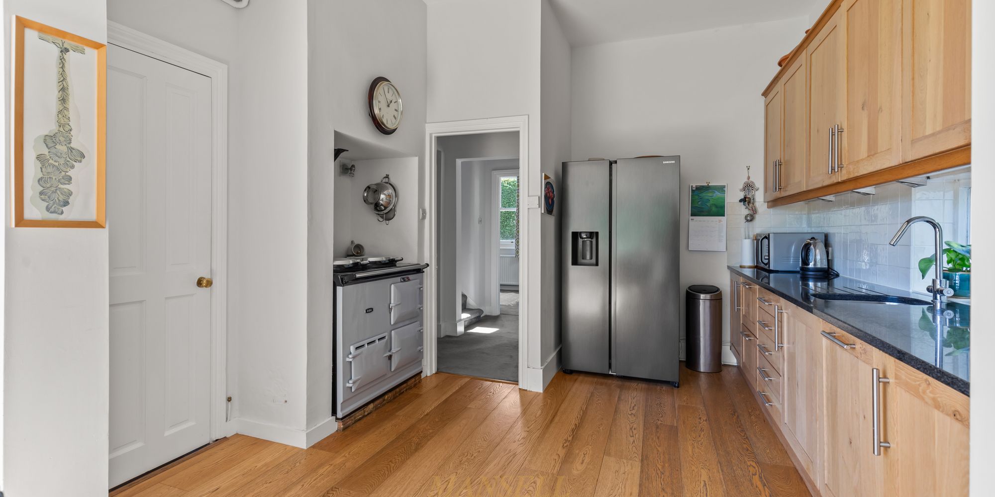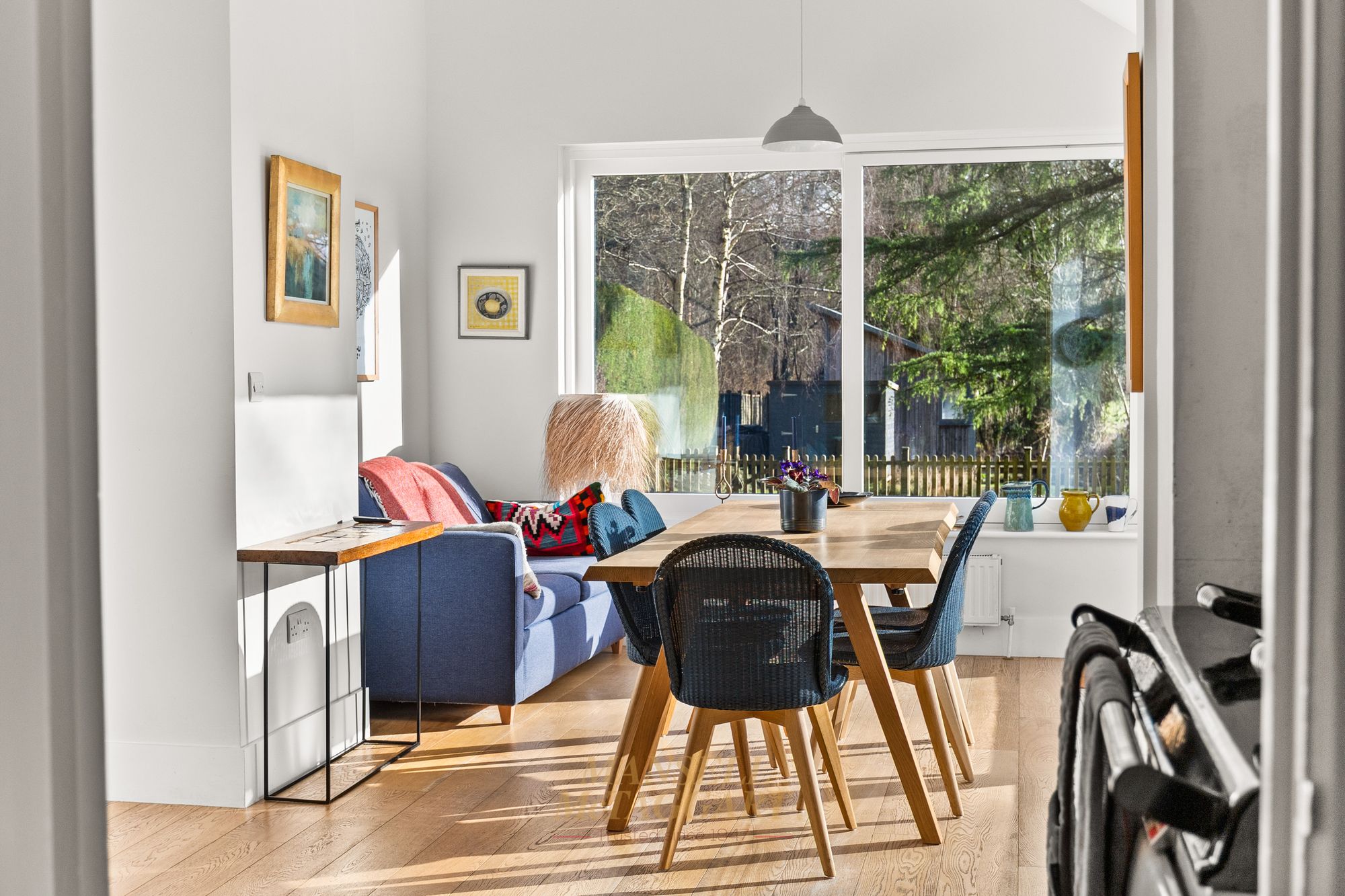 The focal point of the home is the stunning kitchen/dining room, whose extension in 2004 not only transformed the space but also established it as the heart of the home, boasting high vaulted ceilings, ample kitchen cupboards, and space for white goods, including an Aga oven space and an American style fridge/freezer. Further adding to the appeal are the patio doors that lead out to the rear garden, offering breath taking views of the surroundings.