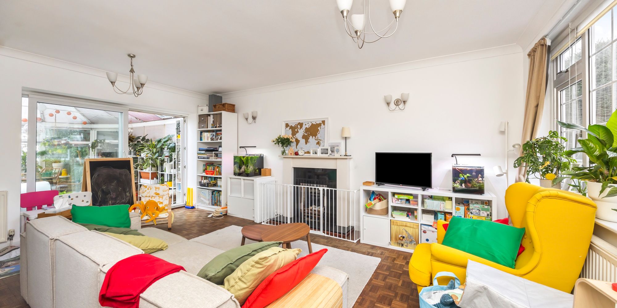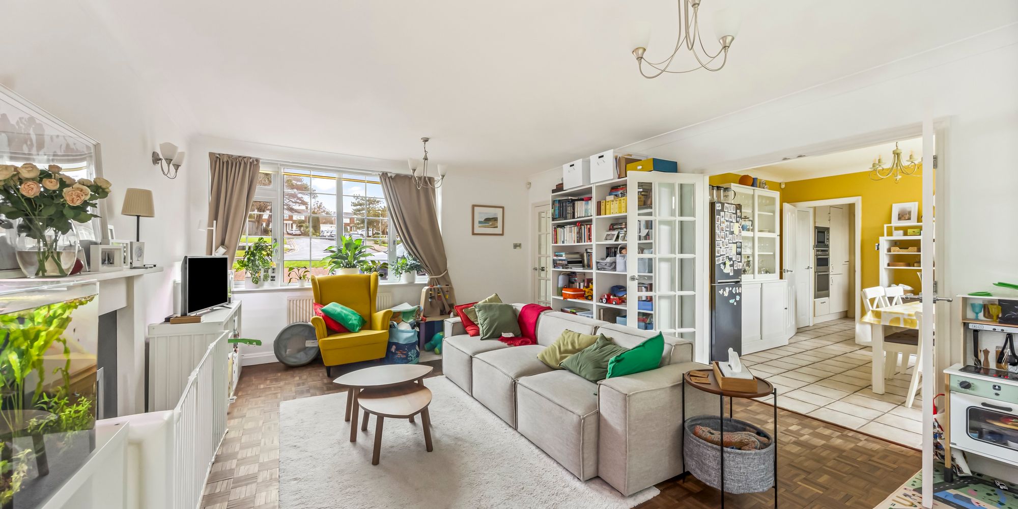 - Sociable Dual-Aspect Living Room With Parquet Flooring And Centred Around The Feature Fireplace