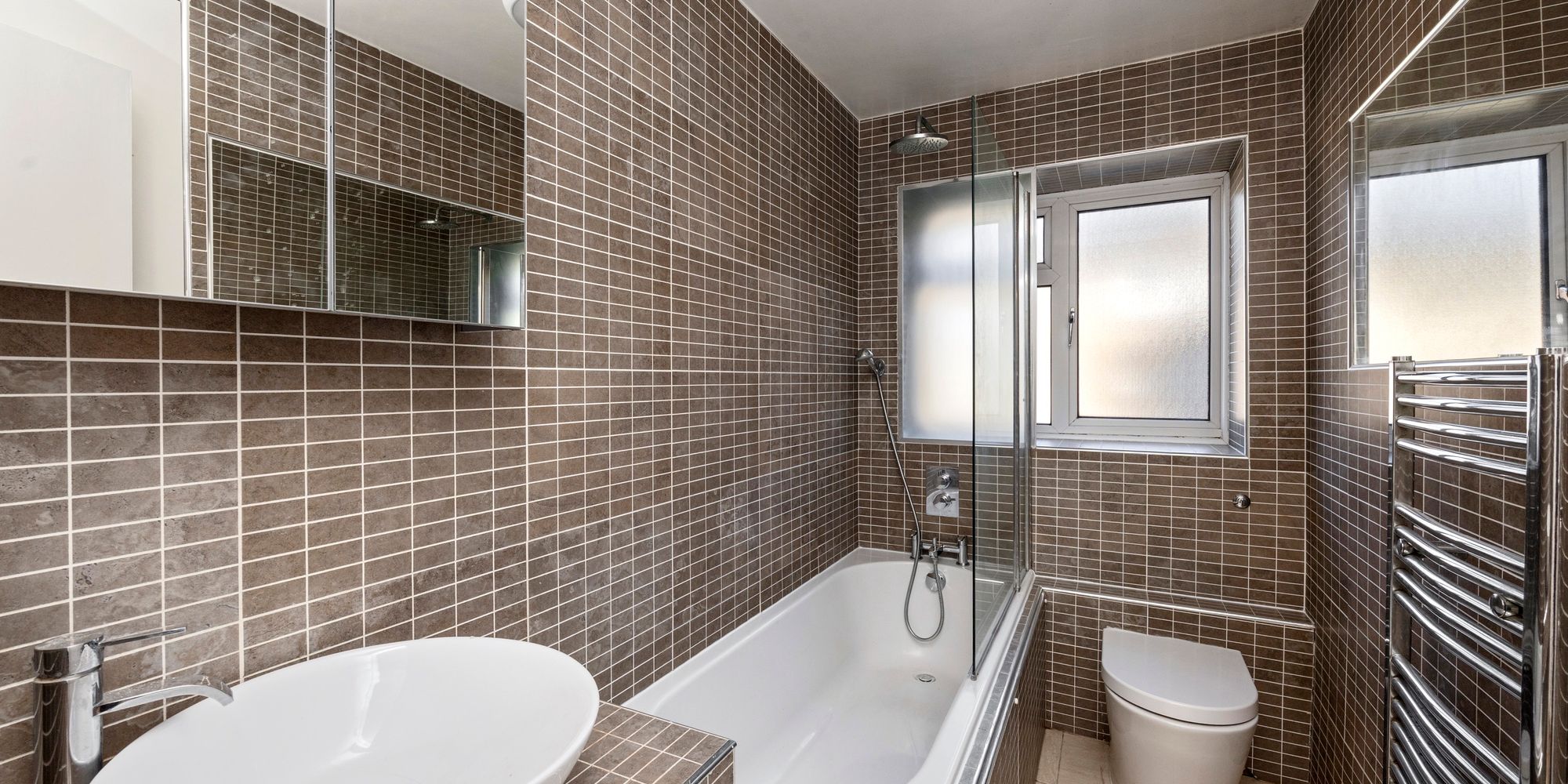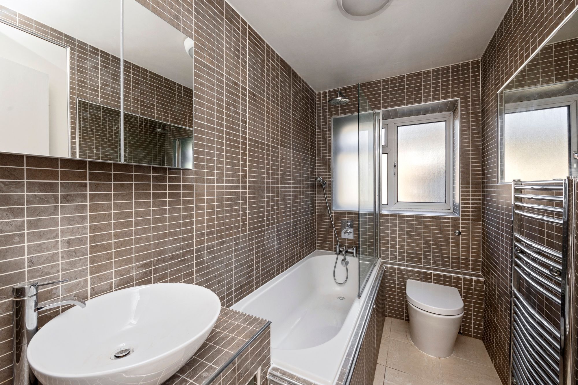 - FULLY TILED BATHROOM WITH SHOWER OVER THE BATH