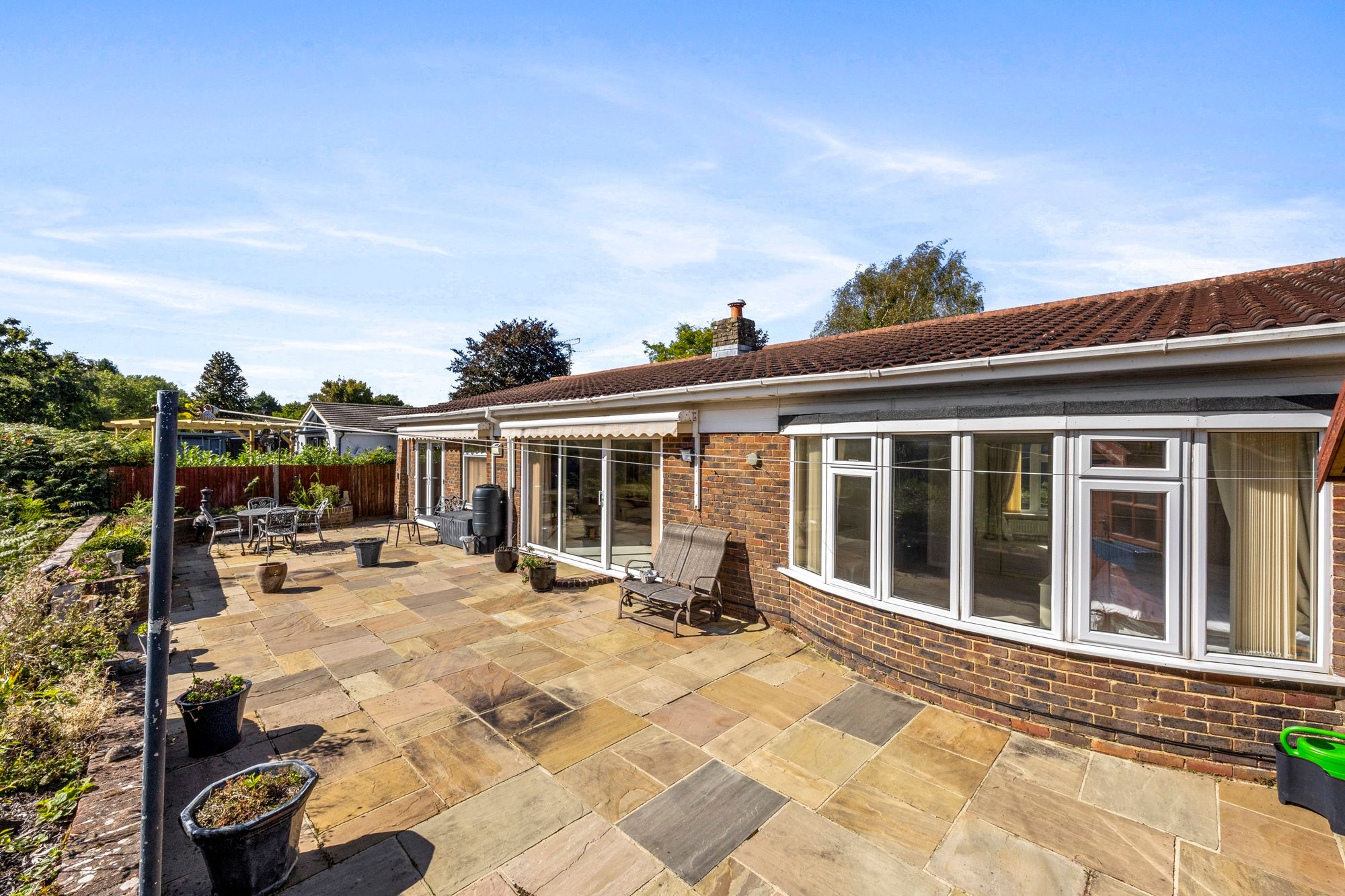 A very well presented, three double bedroom, two bathroom, detached bungalow forming part of this sought after private road with Southerly views over the Weald Racquets Club and in turn the South Downs National Park and Jack and Jill windmills. Offered for sale with early vacant possession and no onward chain.