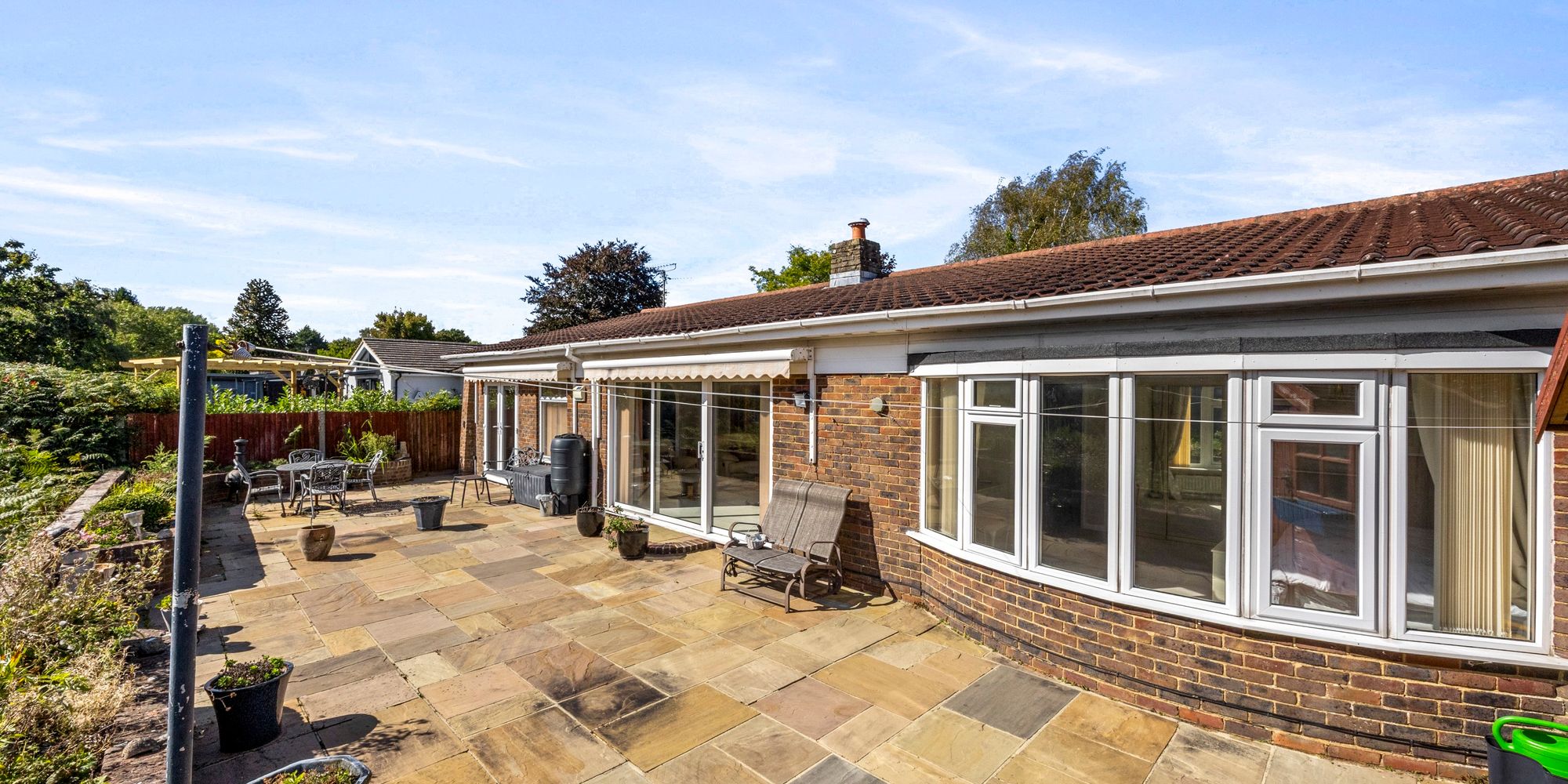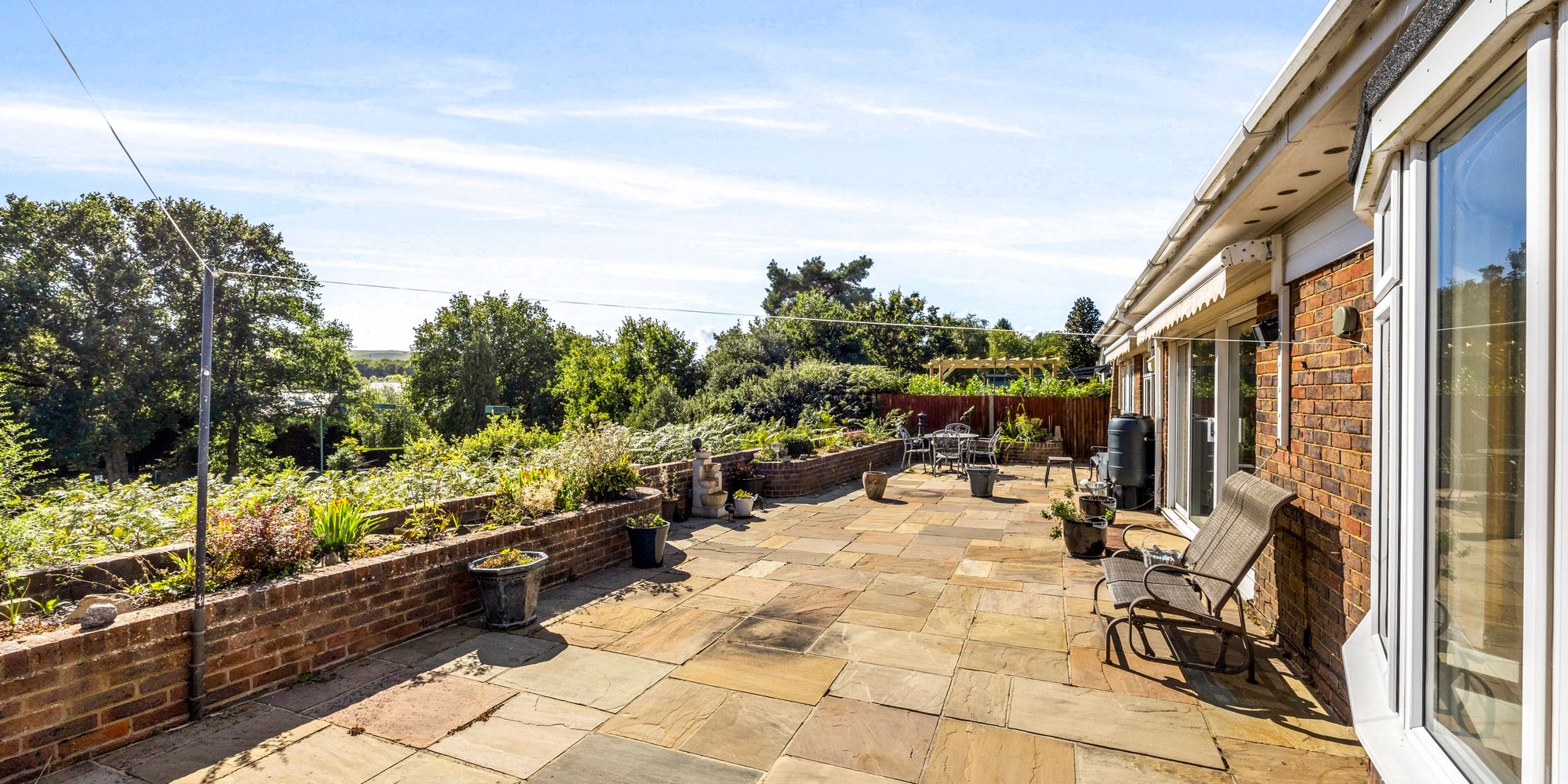 - Low maintenance South facing patio garden with views to the Jack and Jill windmills