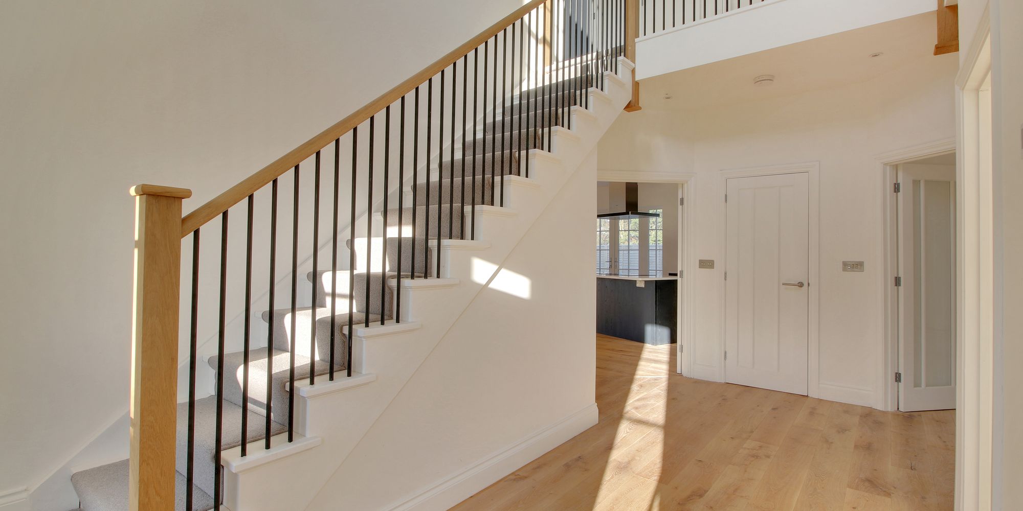 The accommodation: The ground floor enjoys underfloor heating and fine engineered oak flooring to the majority of the rooms. Many of the rooms are double aspect and there are 3 reception rooms, a cloakroom and an oak staircase with steel rails in the double height reception hall which allows the perfect drop of an elegant chandelier.