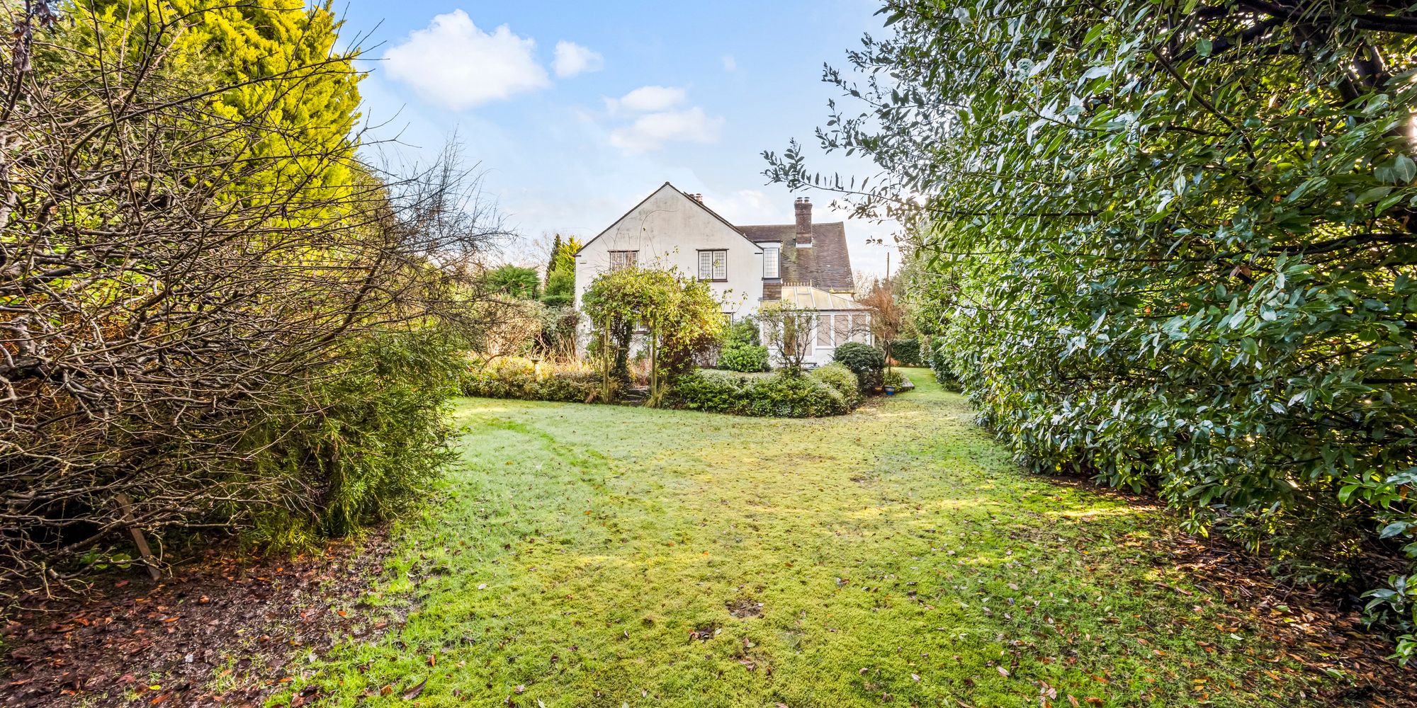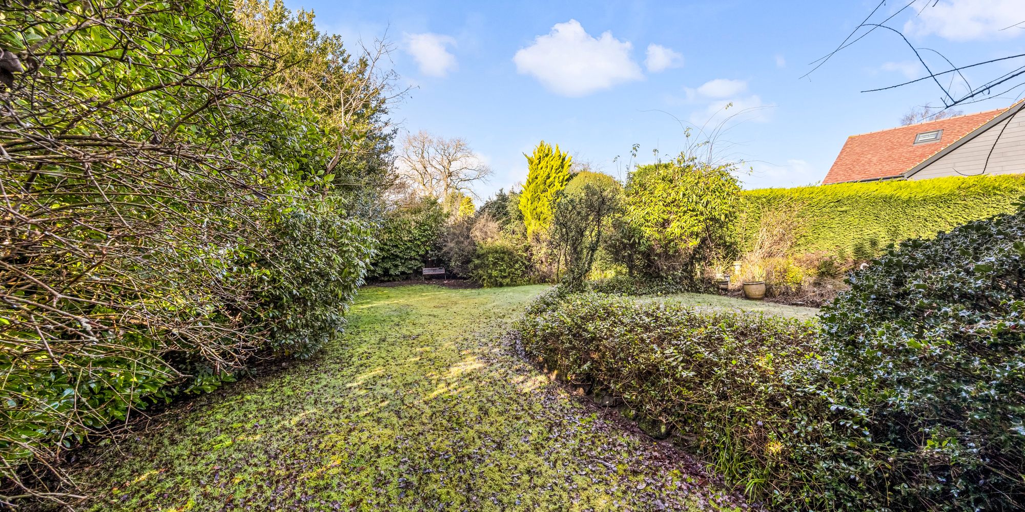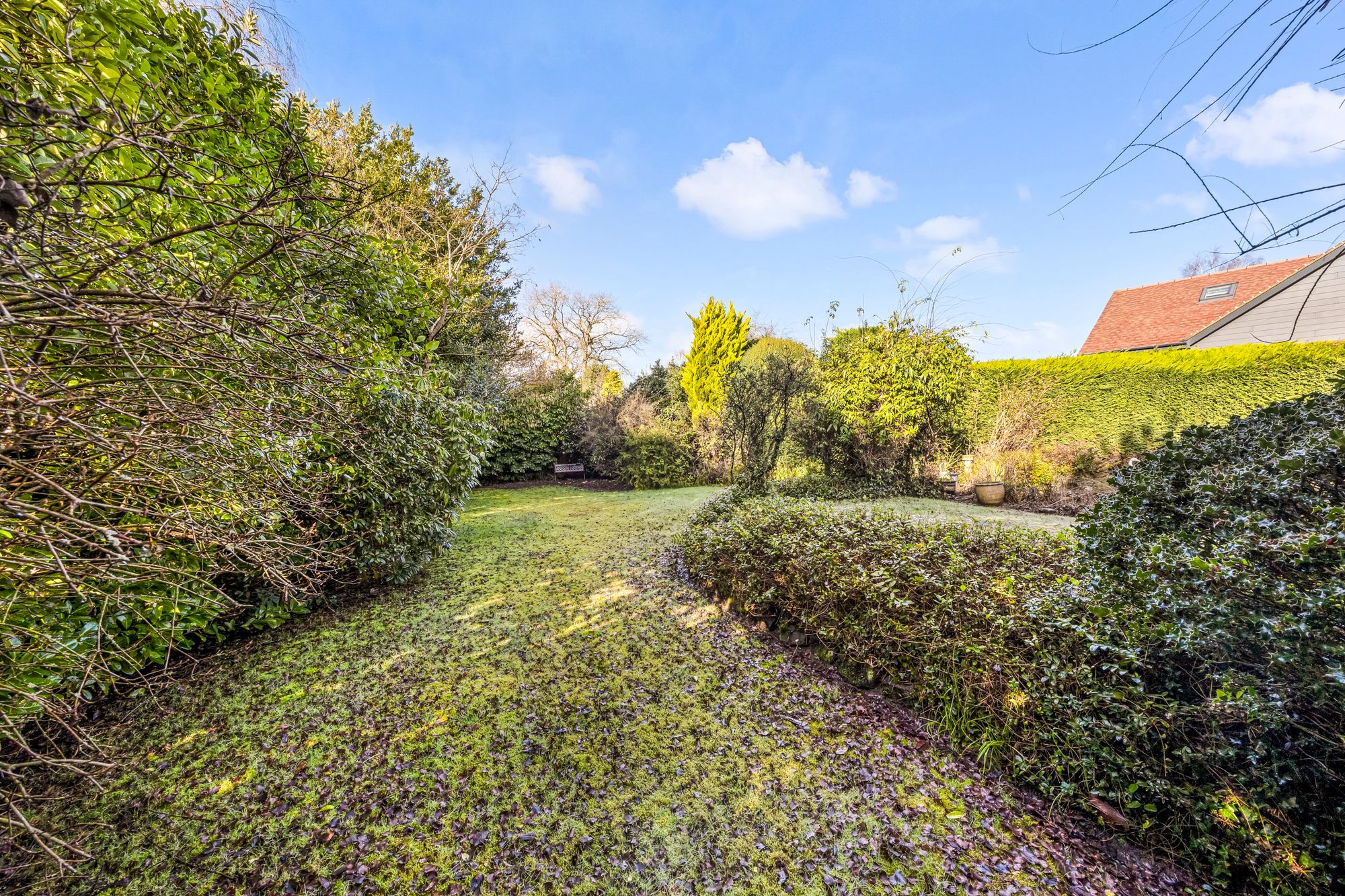 - Secluded mature rear garden with patio and pond