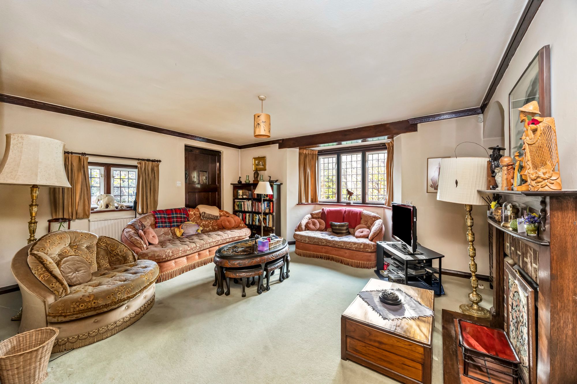 - Charming living room with feature fireplace and reading corner