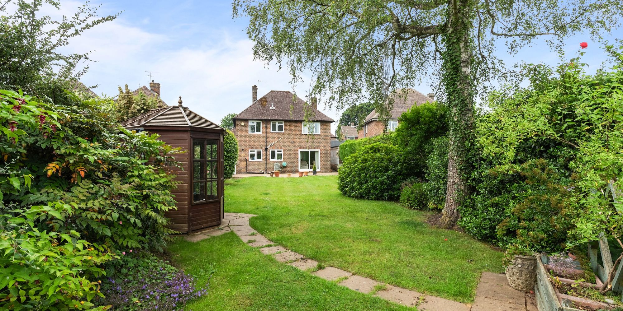 A rarely available and superbly located 4/5 bedroom, 2/3 reception room detached house, built in the 1950s with optional downstairs bedroom, 2 bath/shower rooms, driveway, garage, 134’ private garden and no onward chain.