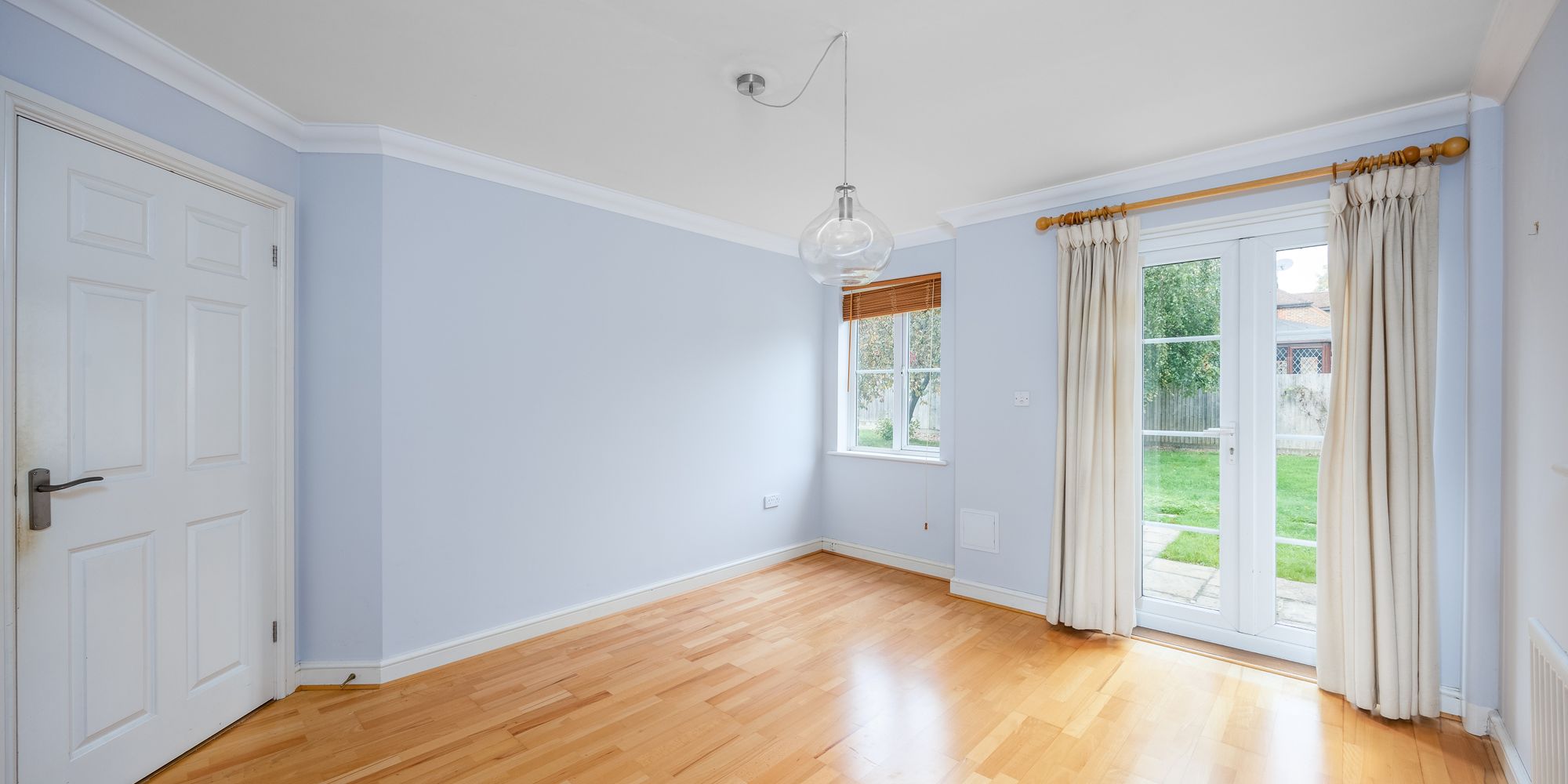 The front door leads into the porch which has a downstairs cloakroom/wc and then onto the hall with stairs rising to the first floor. To the left is the TRIPLE ASPECT LIVING ROOM with doors to the garden and at the rear is the TRIPLE ASPECT DINING ROOM also with doors to the garden.