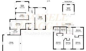 The kitchen/breakfast room has an oven, hob & dishwasher, the utility room has a washing machine & tumble dryer and there is also a STUDY. On the first floor there are 4 bedrooms, all with built in wardrobes, a bathroom and an en suite shower room. Further benefits include double glazing & oil fired central heating.