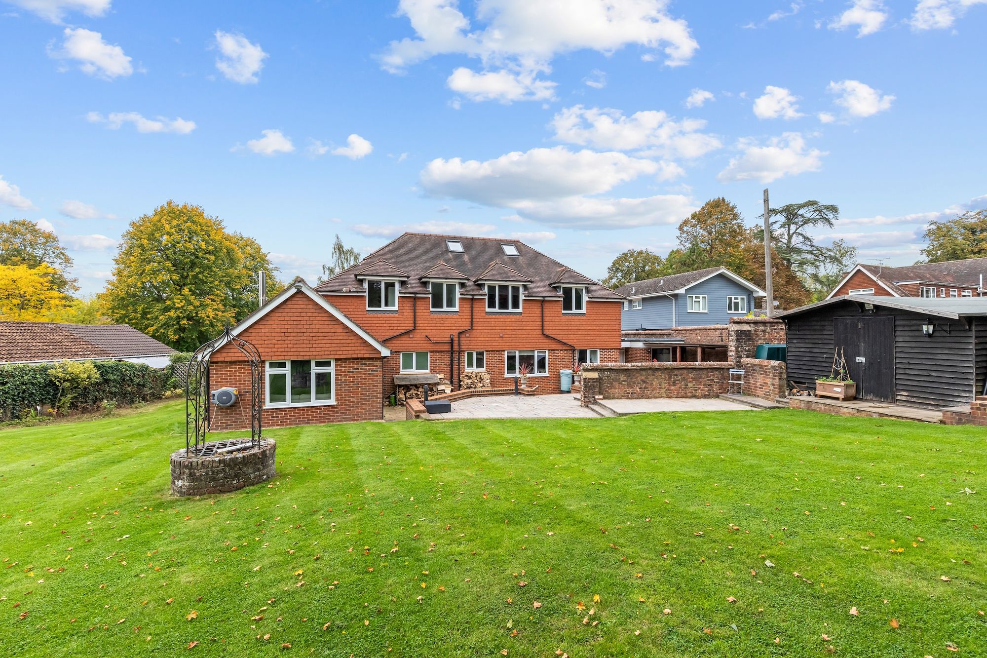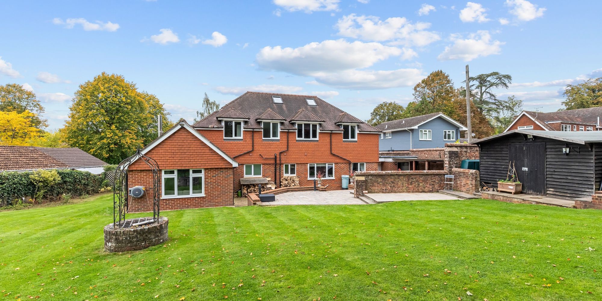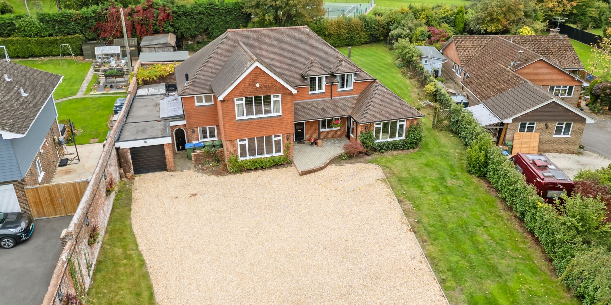 A substantial and highly versatile 5 double bedroom, 4 reception room, 4 bath/shower room detached house of 3,373 sq ft, originally built in the 1930s and massively enlarged with utility, loft room, large driveway, 32’1 × 9’6 garage and occupying a private 0.39 acre south east facing plot.