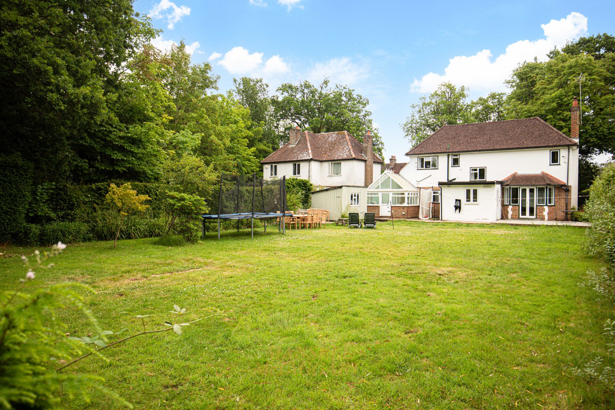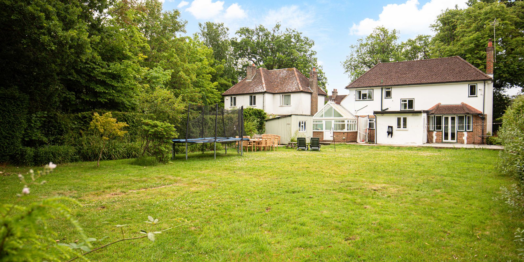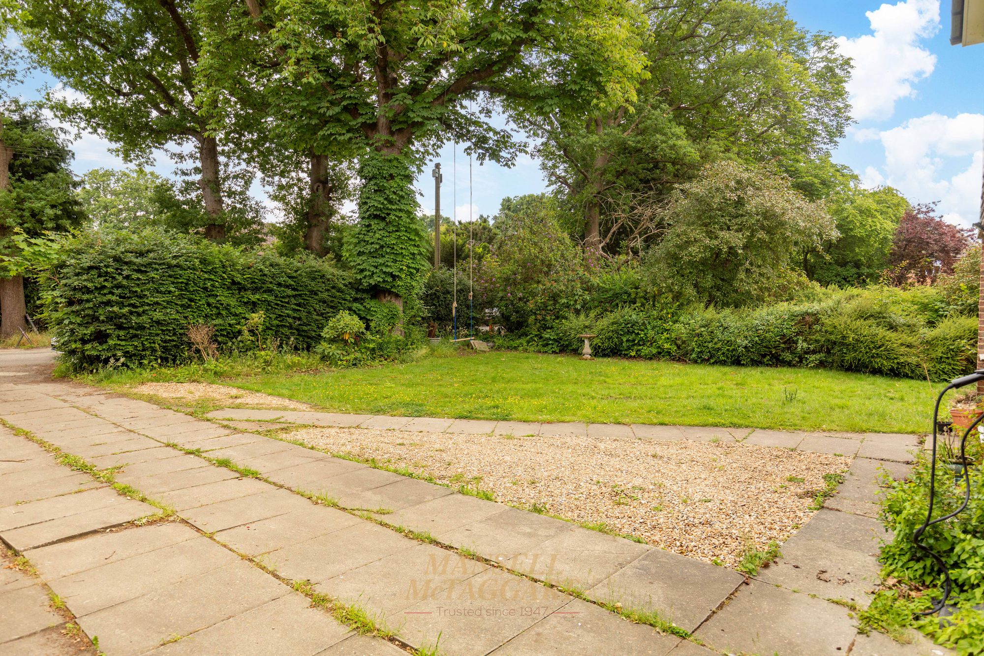 Outside to rear, is a highlight of the property. The garden is vast in size and on a flat plain perfect for children and/or entertaining. There is a high reaching tree boarder surrounding giving a sense of privacy. A patio area abuts the property.