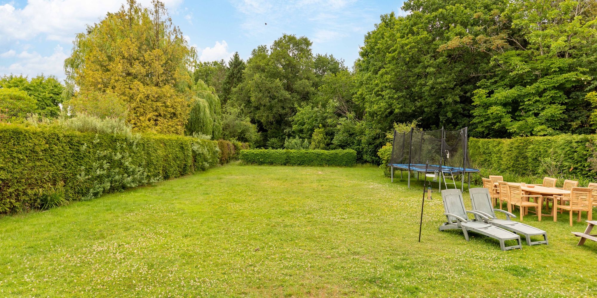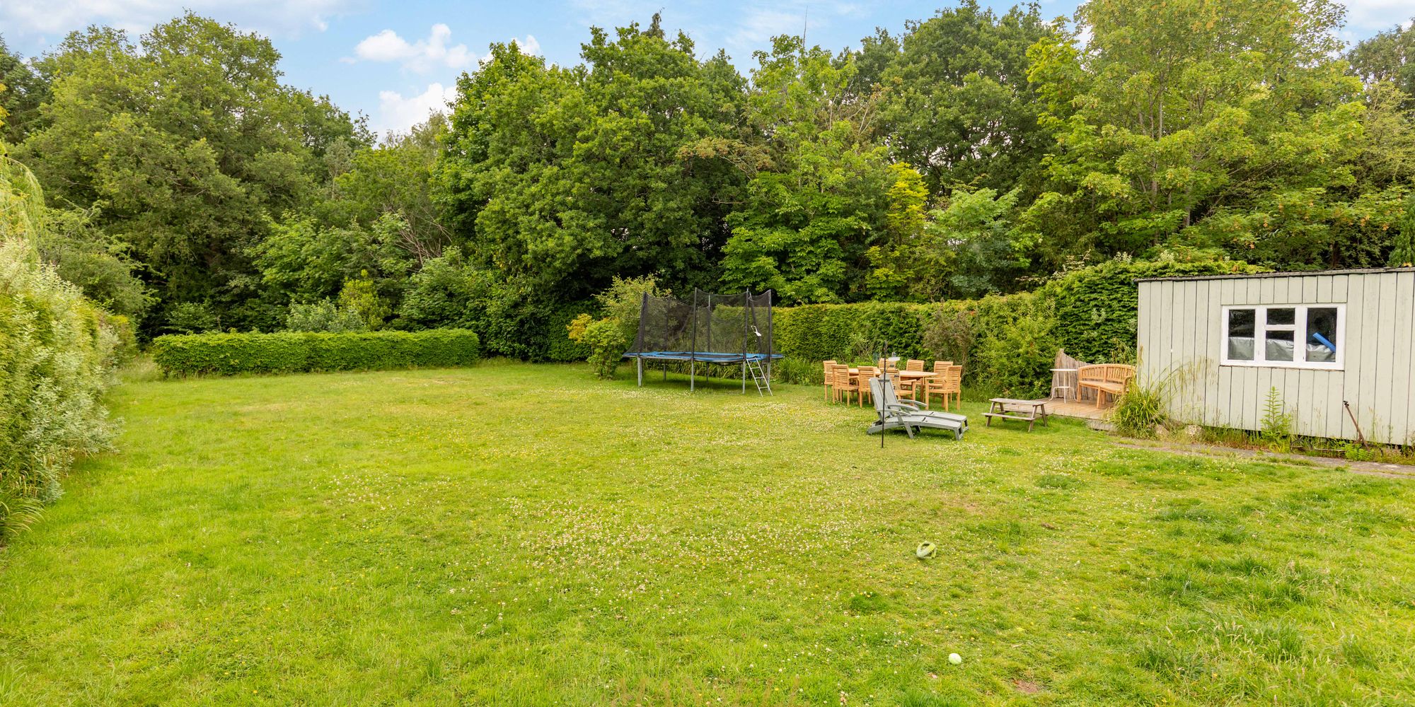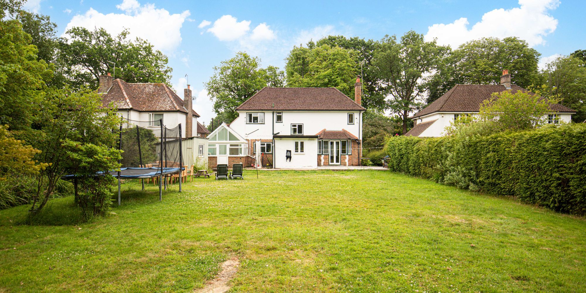 Outside to rear, is a highlight of the property. The garden is vast in size and on a flat plain perfect for children and/or entertaining. There is a high reaching tree boarder surrounding giving a sense of privacy. A patio area abuts the property.