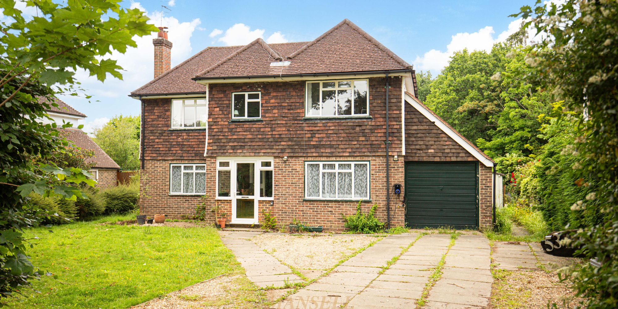Upon approach to the property, you will see the large frontage. There is driveway parking for numerous vehicles, side access to the garden, garage and porch/door to the property.