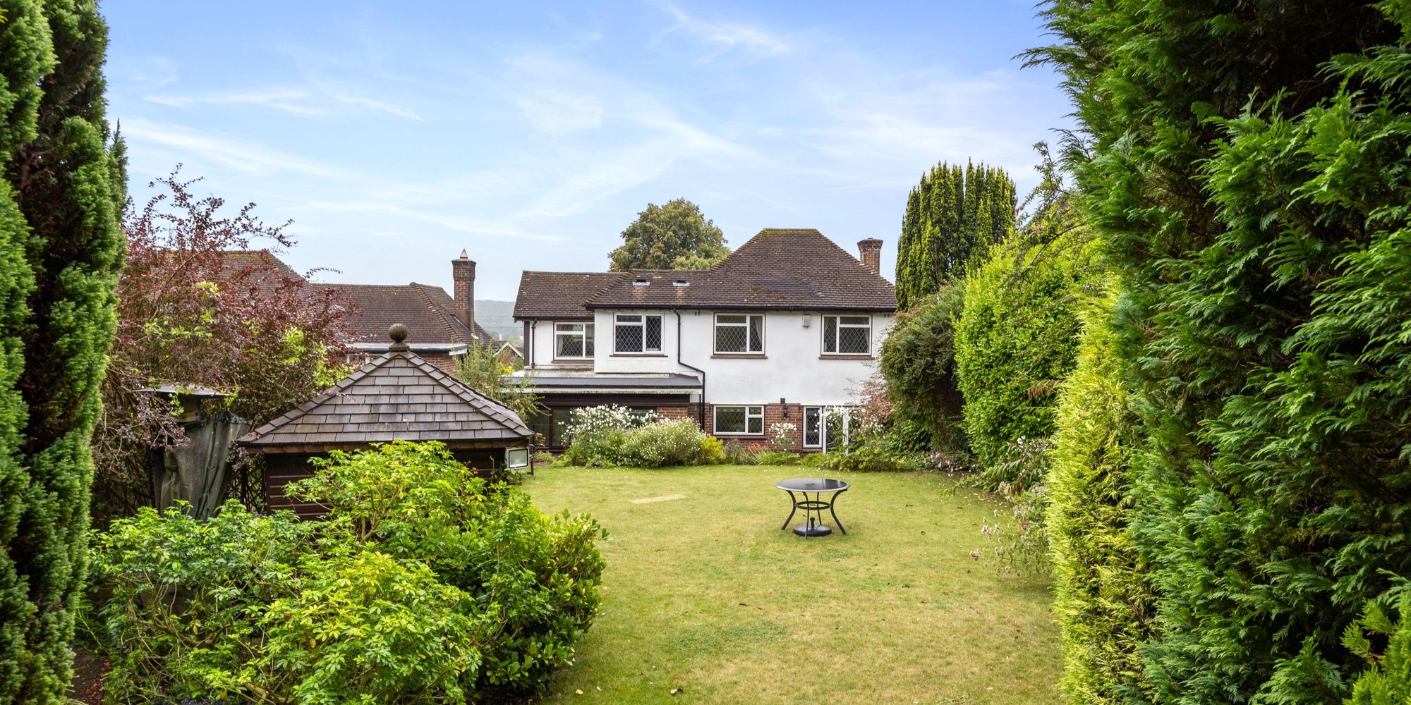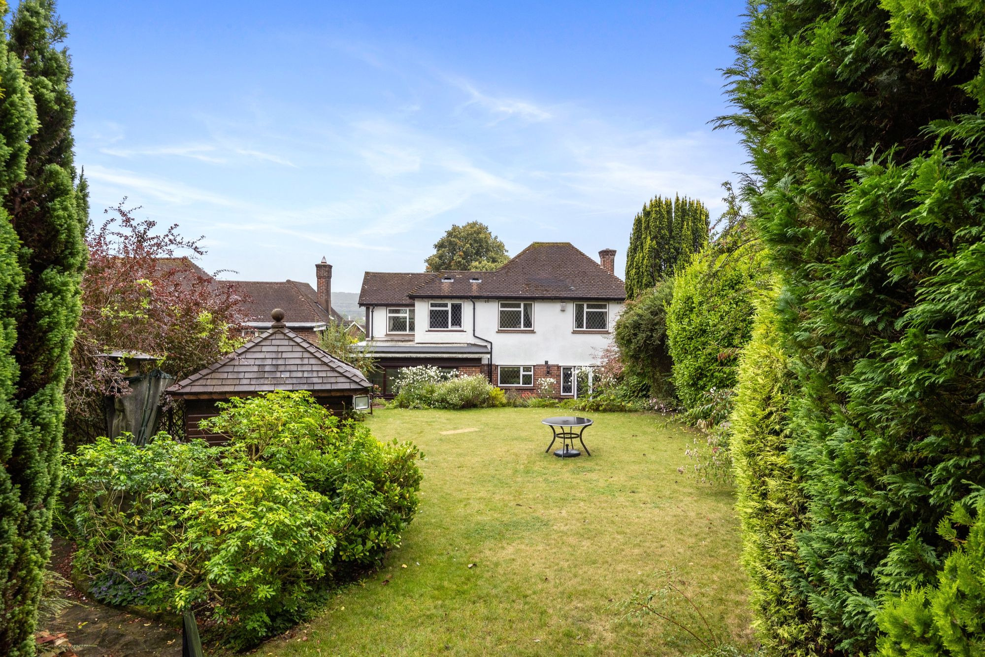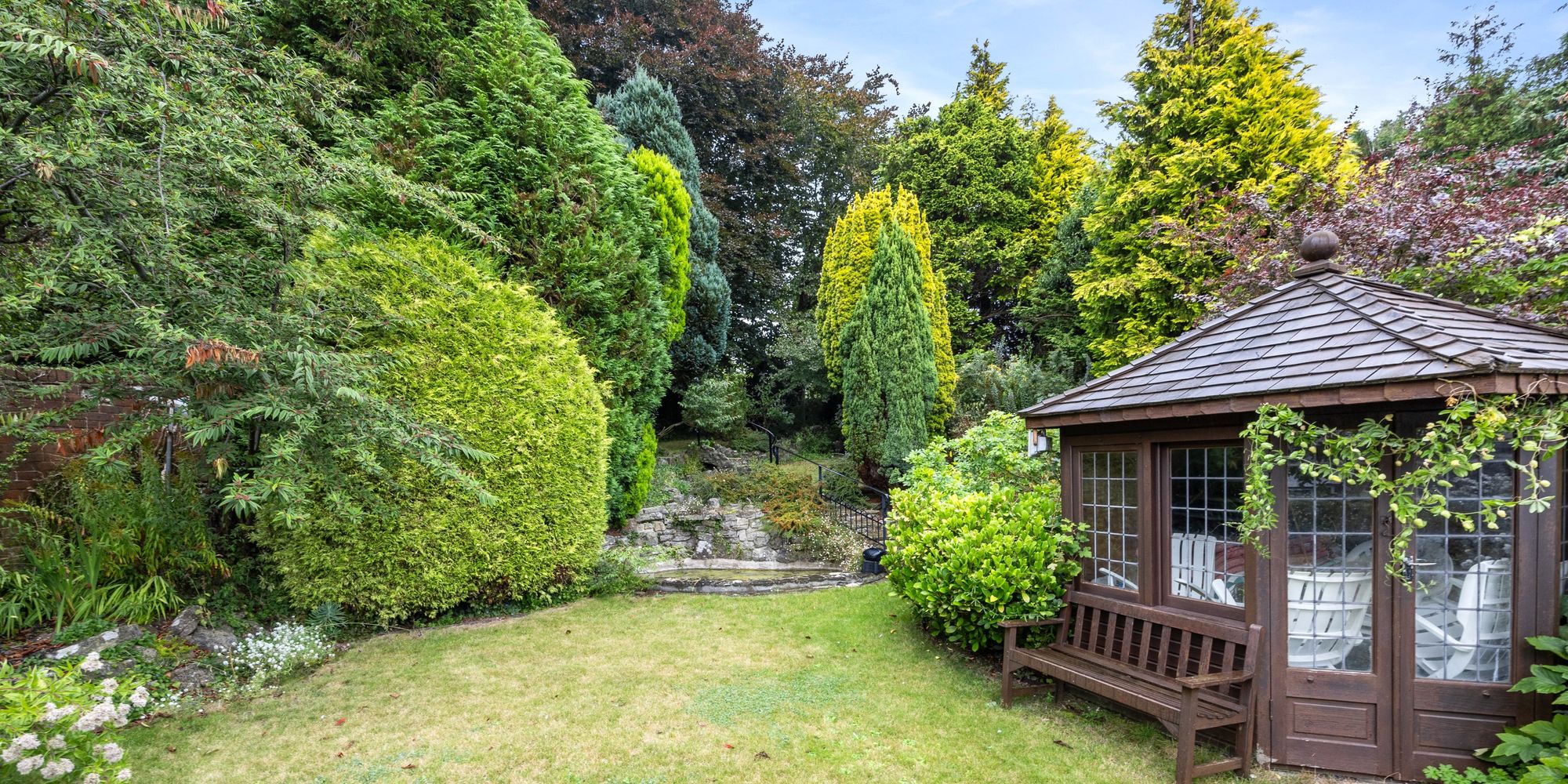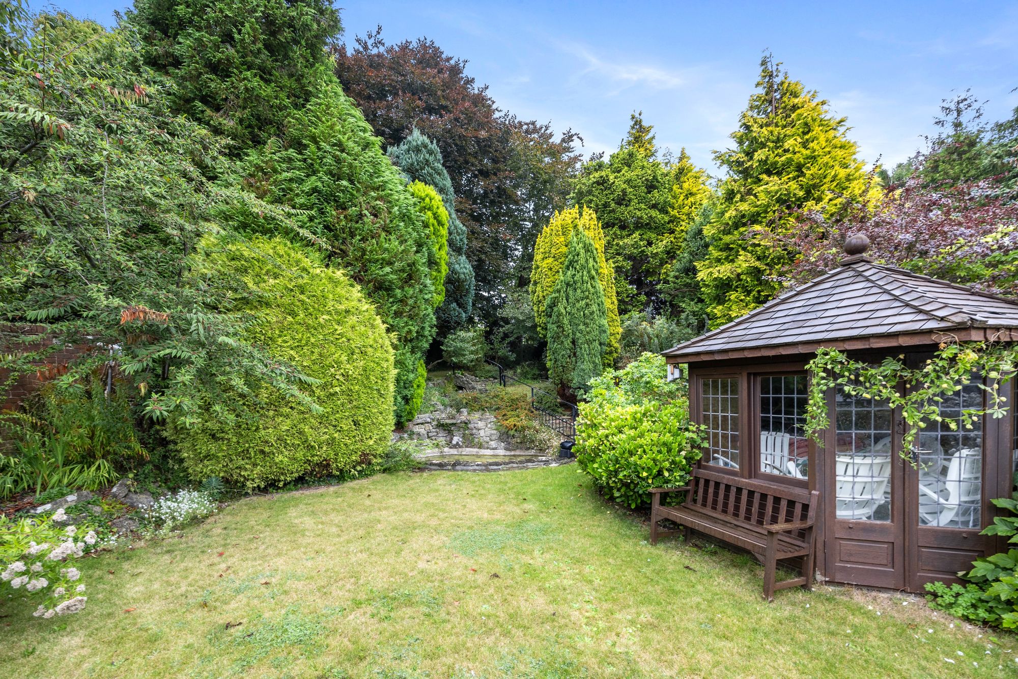 - Stunning Landscaped Rear Garden With Water Features And Mature Shrubbery Leading Back To Open Fields Beyond