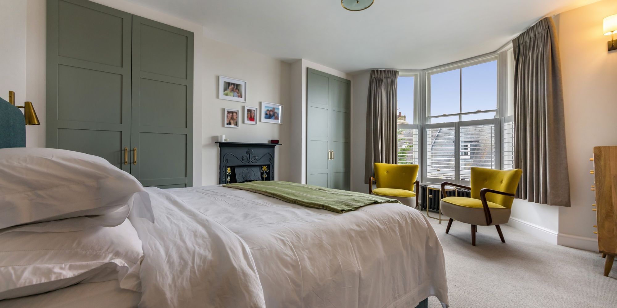 BEDROOM 1- A beautiful room featuring a bay window comprising of three, almost floor to ceiling double glazed sash windows with elevated views over Grange Road. Ornate fireplace with bespoke made fitted wardrobes to either side. Solid oak door to;