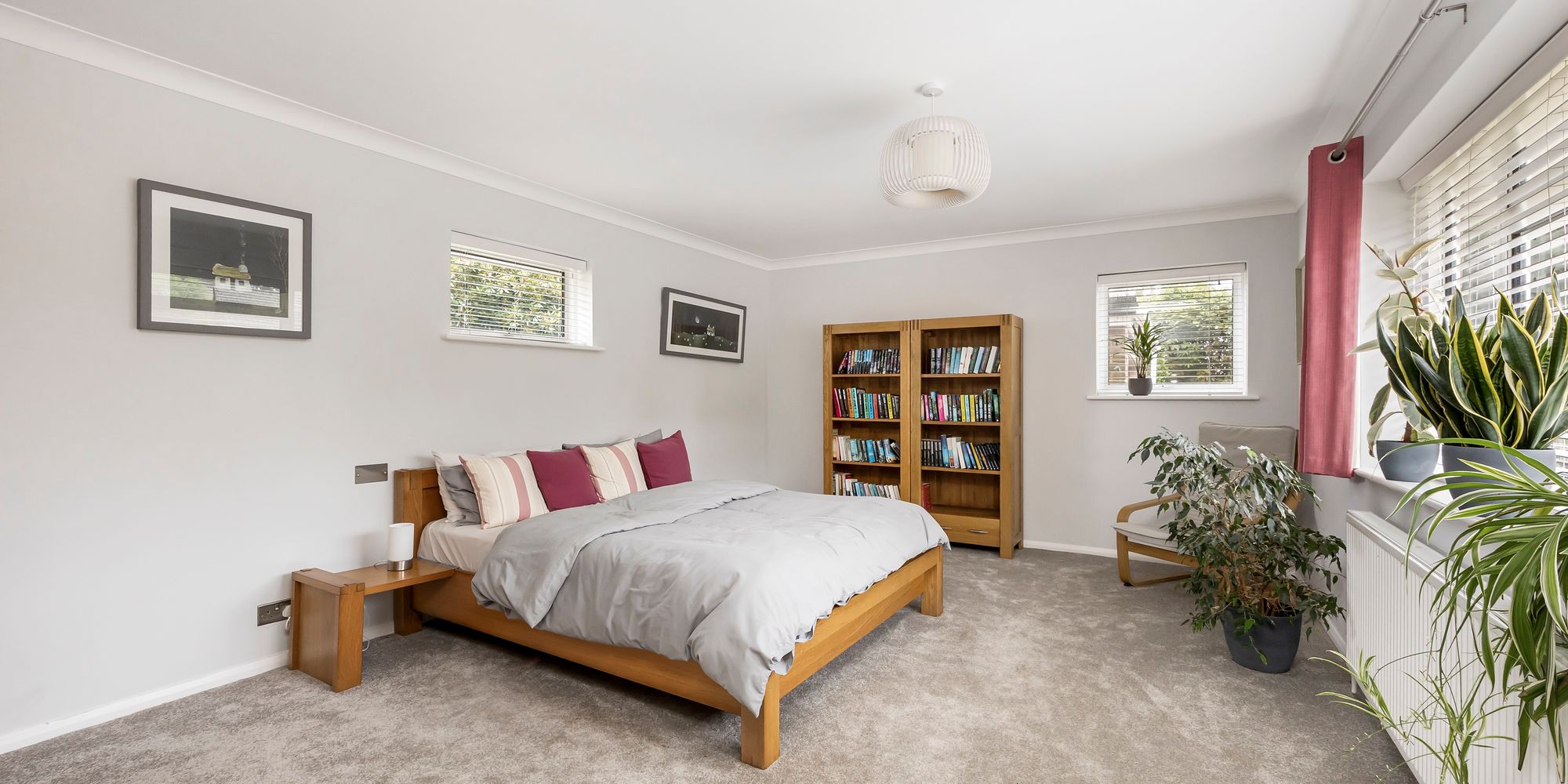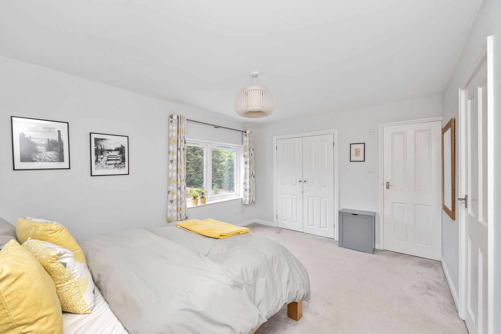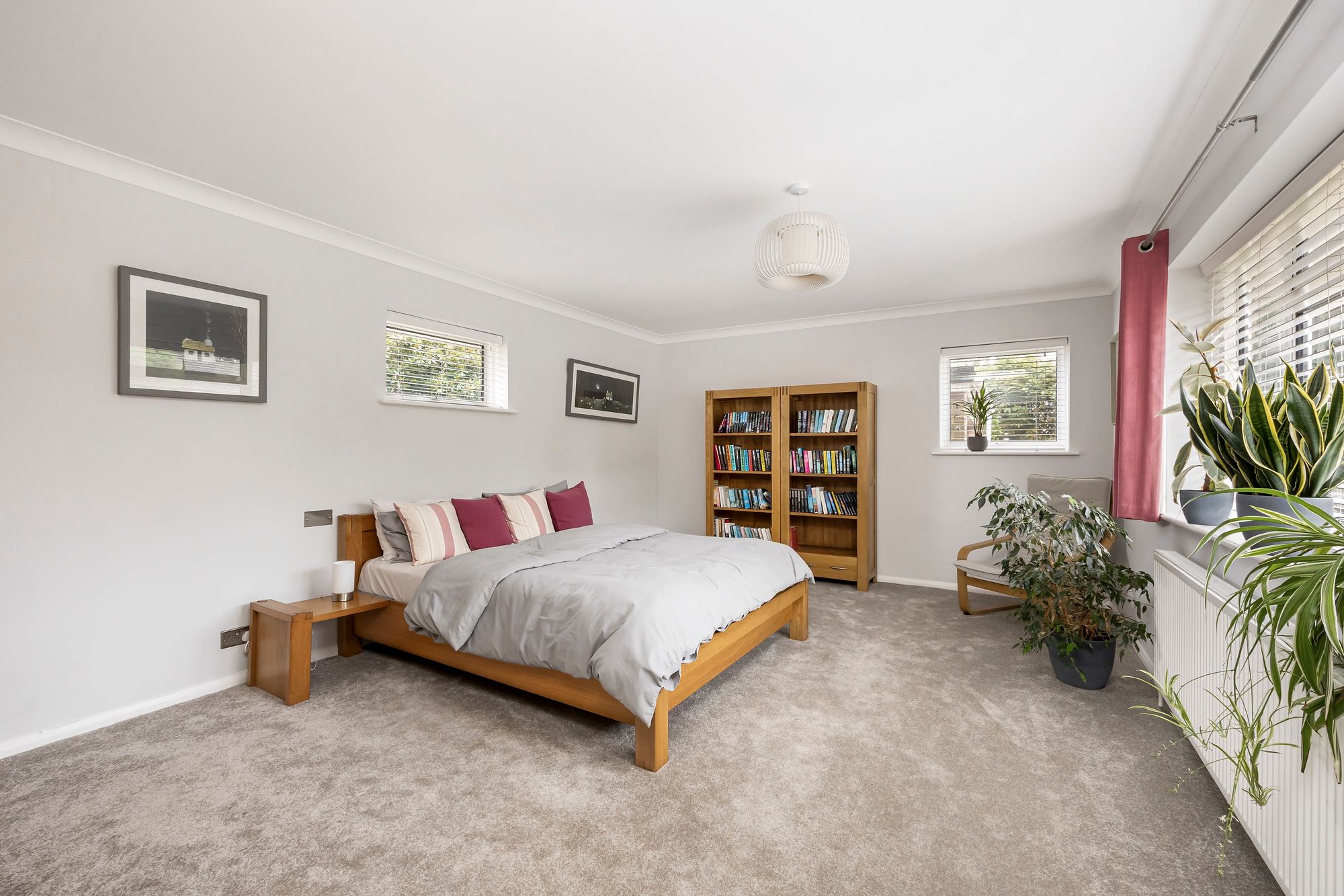 A ground floor bedroom, impresses with its size and includes fitted wardrobes alongside a well-equipped adjacent shower room. Moving upstairs, the bright and spacious principal bedroom features a walk-in wardrobe, an en suite, and serene views overlooking the rear garden.