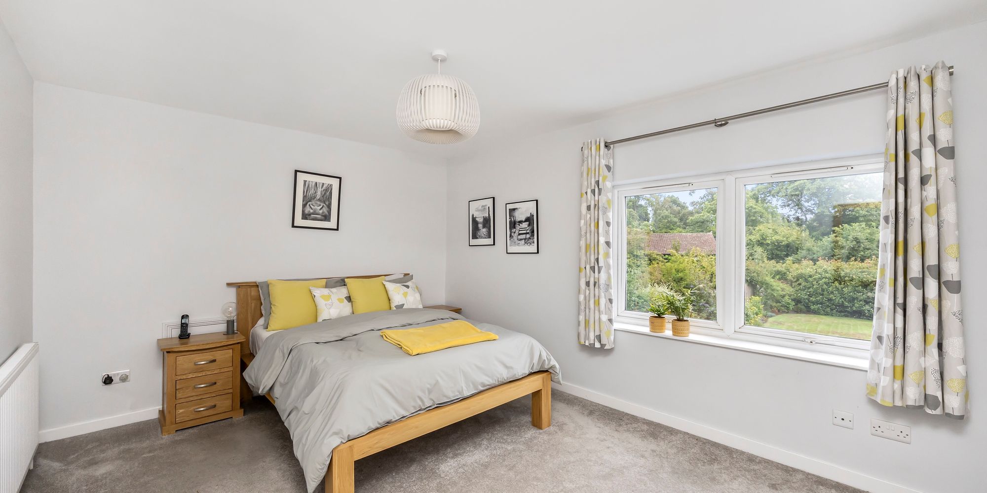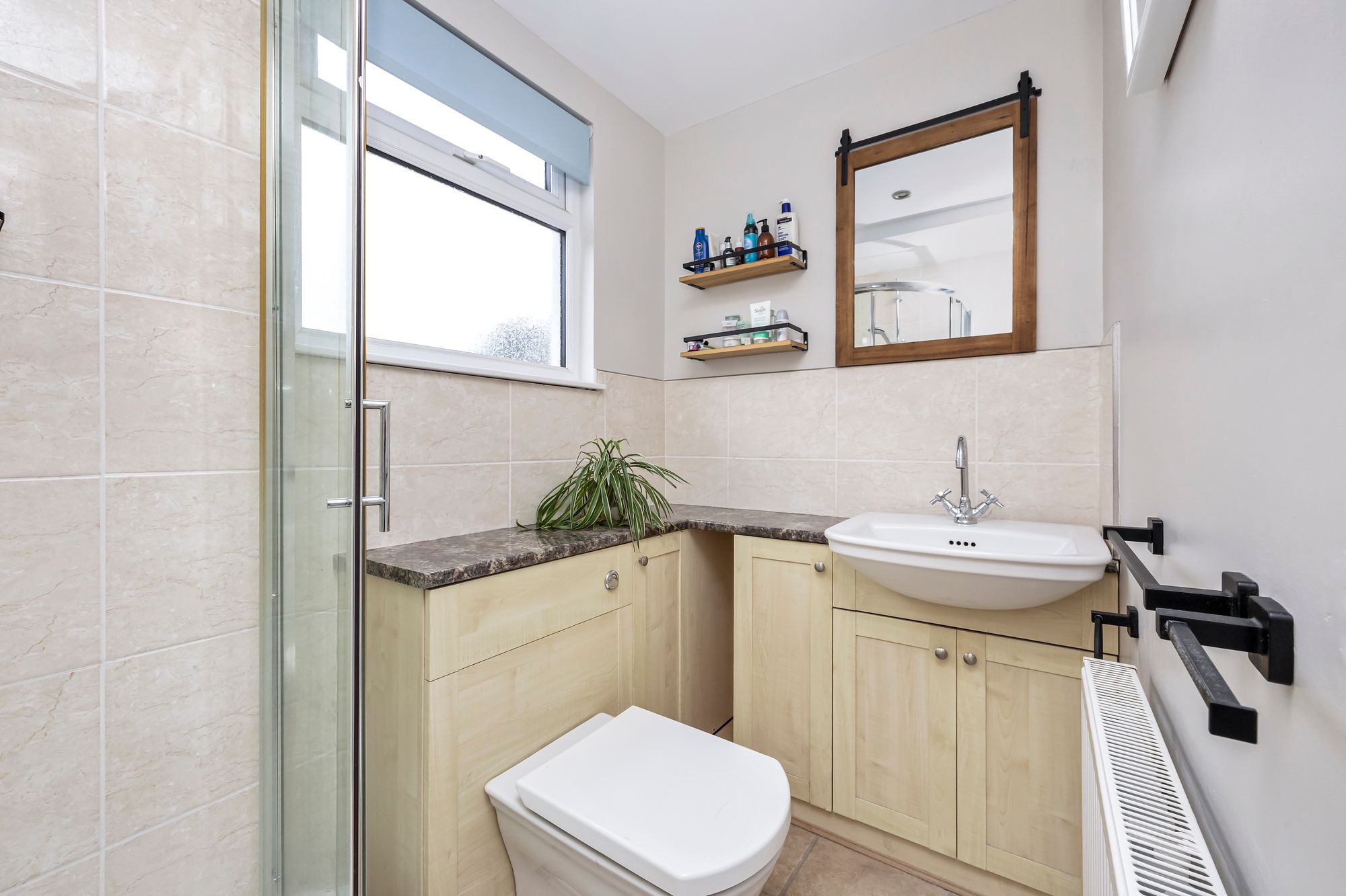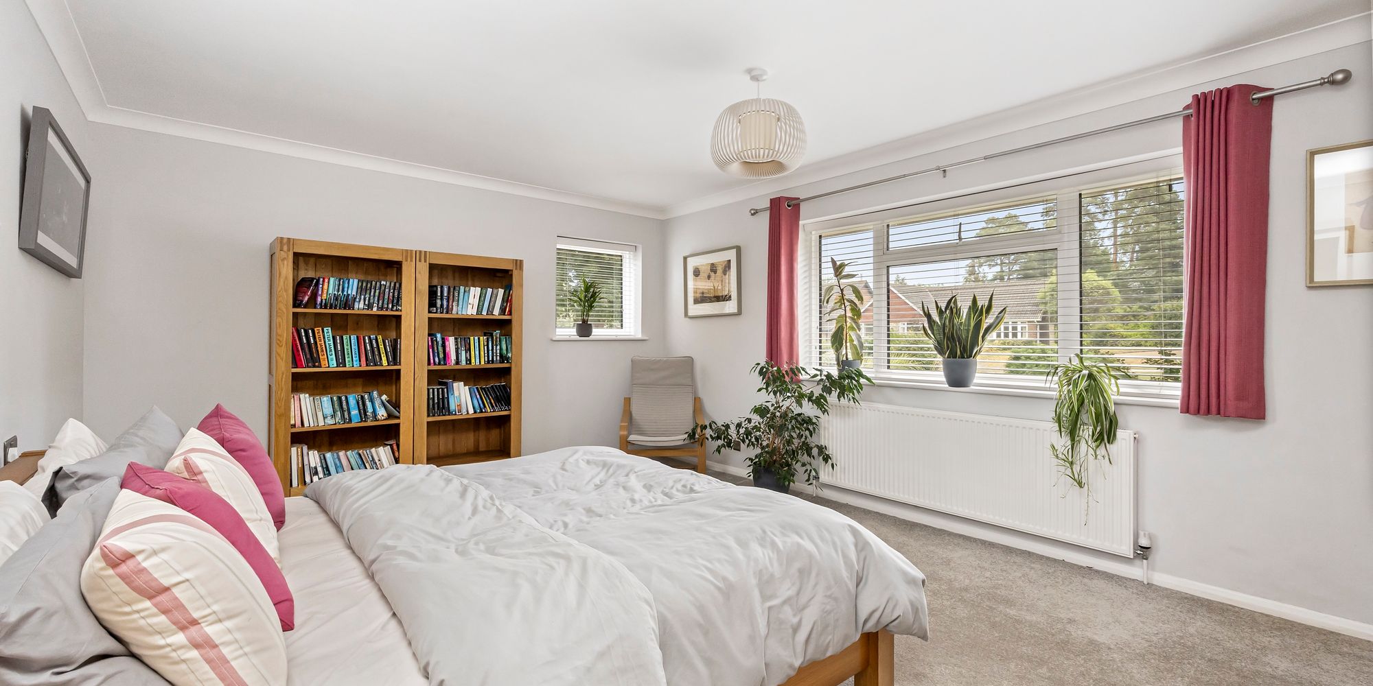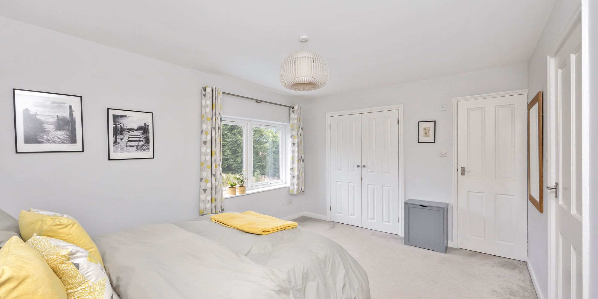 A ground floor bedroom, impresses with its size and includes fitted wardrobes alongside a well-equipped adjacent shower room. Moving upstairs, the bright and spacious principal bedroom features a walk-in wardrobe, an en suite, and serene views overlooking the rear garden.