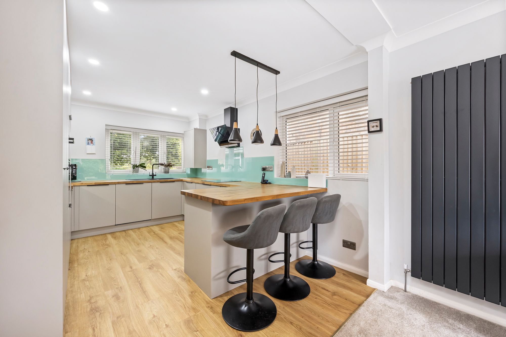 Stepping into the property, you are greeted by a spacious entrance hall adorned with wooden flooring, leading seamlessly into the modern fitted kitchen. Equipped with wall and base units, integrated appliances, and a breakfast bar, the kitchen effortlessly flows into the dining room, boasting doors that open onto the garden. For added convenience, a separate utility room with access to the side awaits.