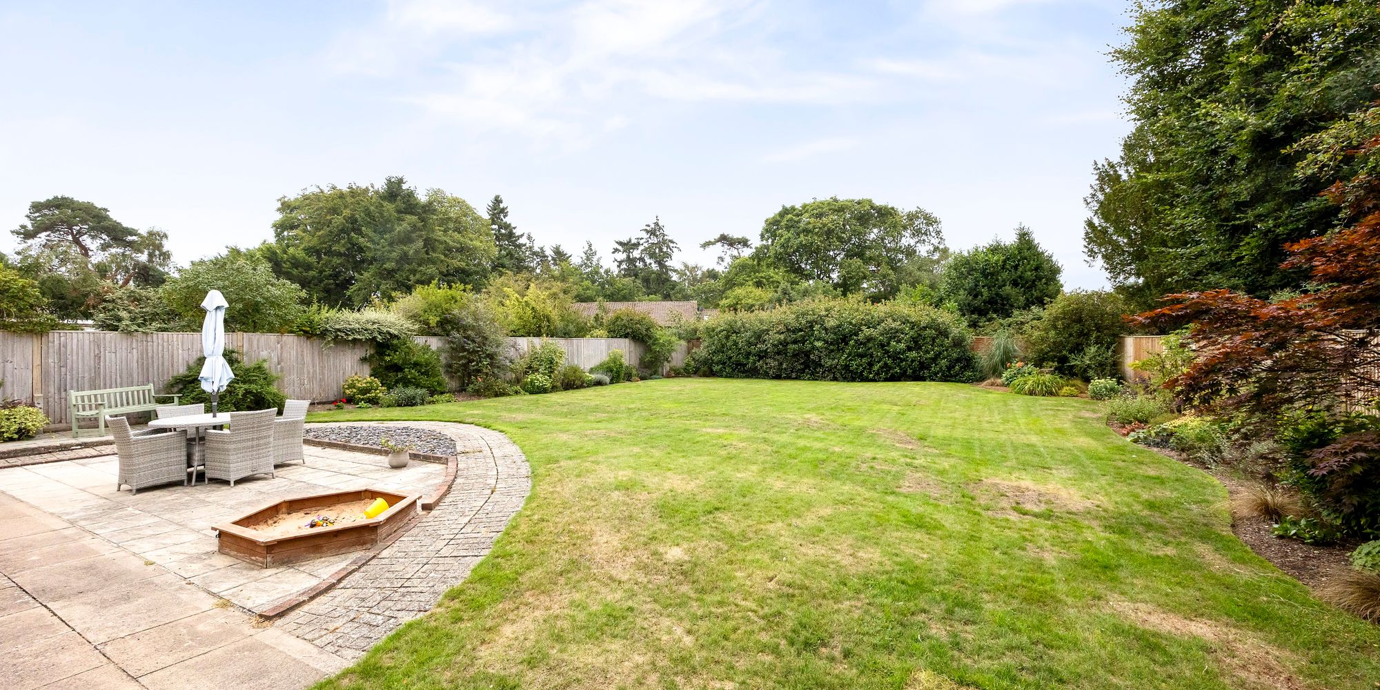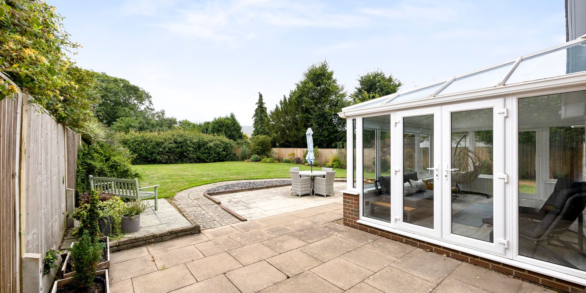 Moving outside, the property reveals an expansive south/easterly facing rear garden complete with mature shrubs, flower beds, and a wrap-around lawn. A patio area adds the perfect touch for entertaining, while side access on either end enhances convenience.
