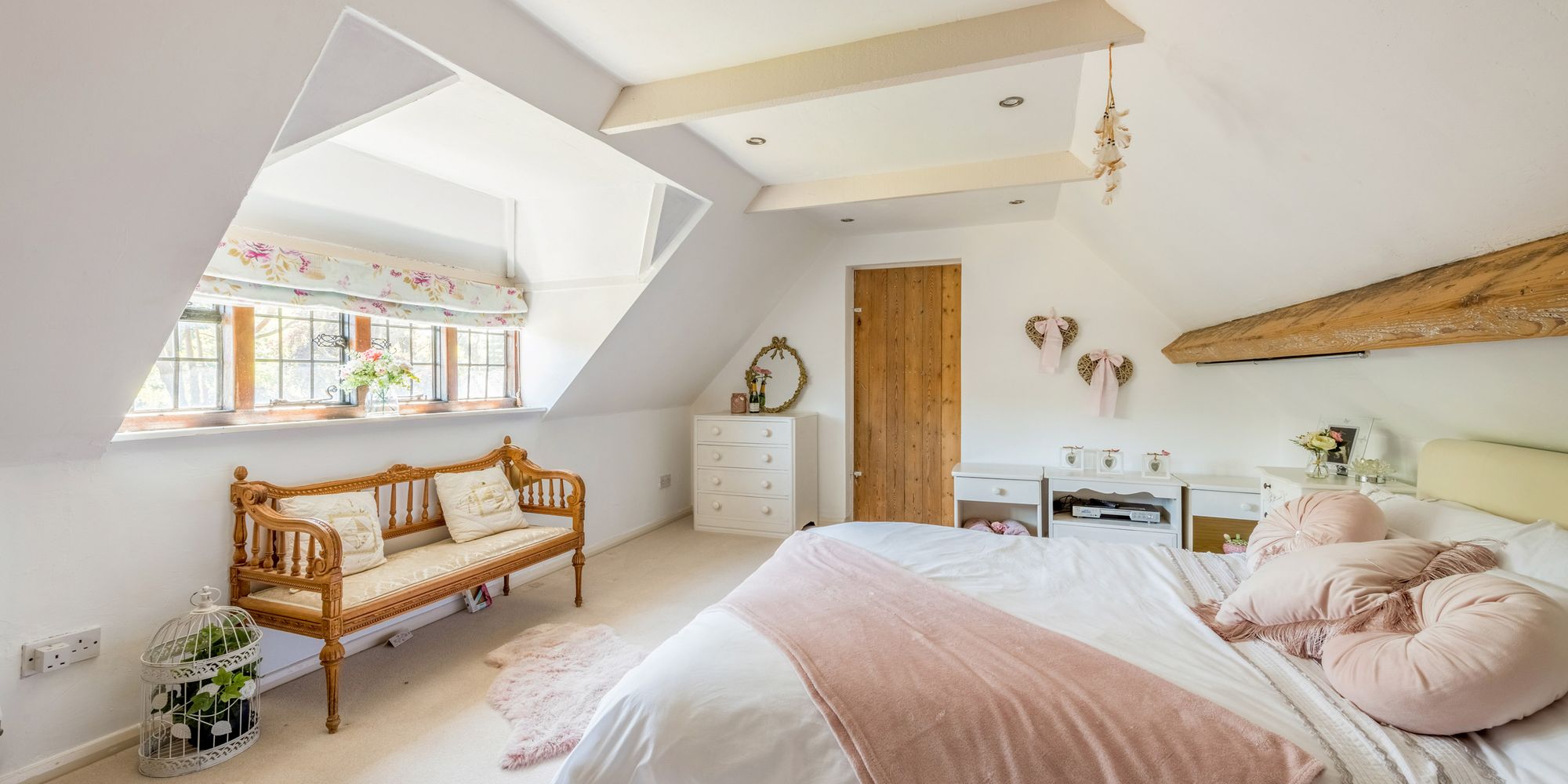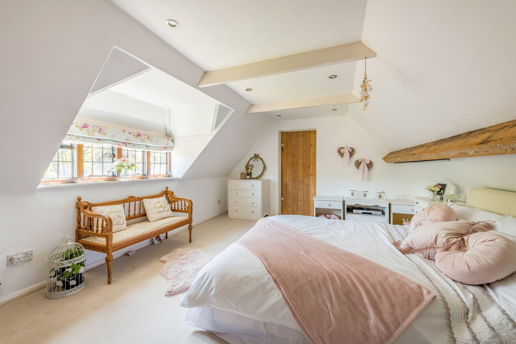 BEDROOM: 16’6 x 12’1 window overlooking the rear of the property with outstanding views across the gardens and grounds, recessed spotlighting, door giving access to extensive attic storage space.