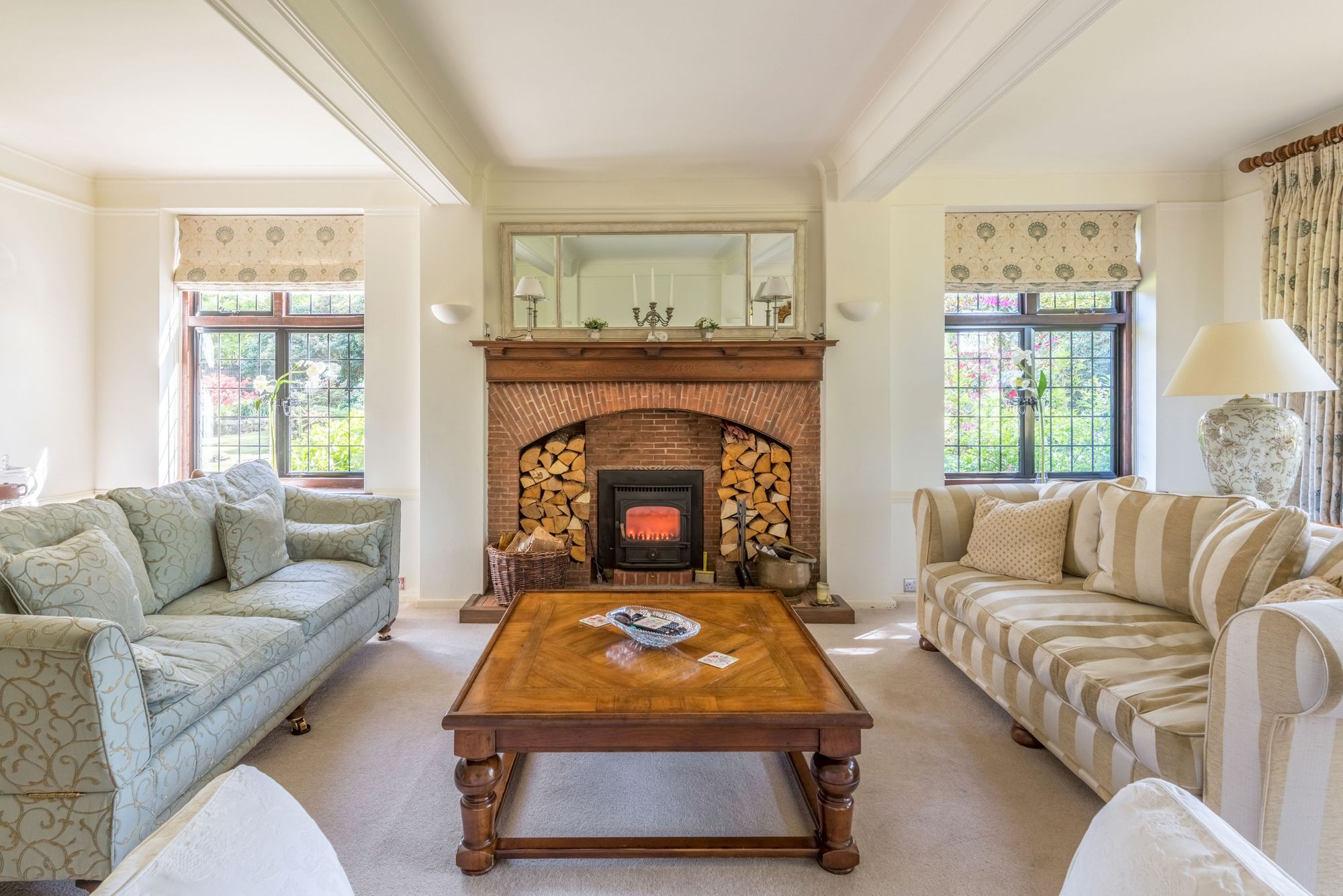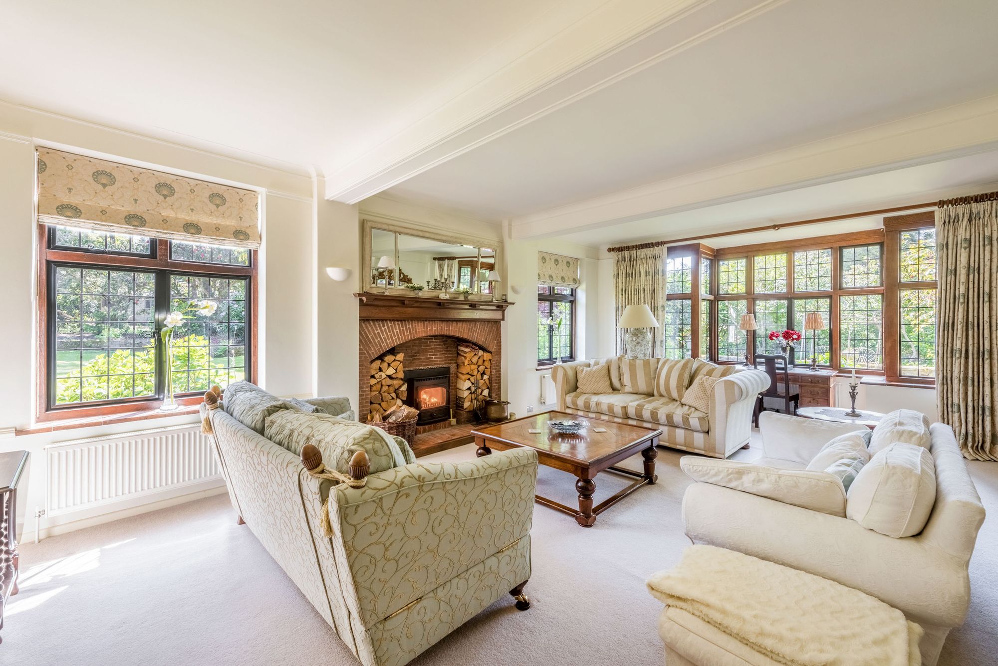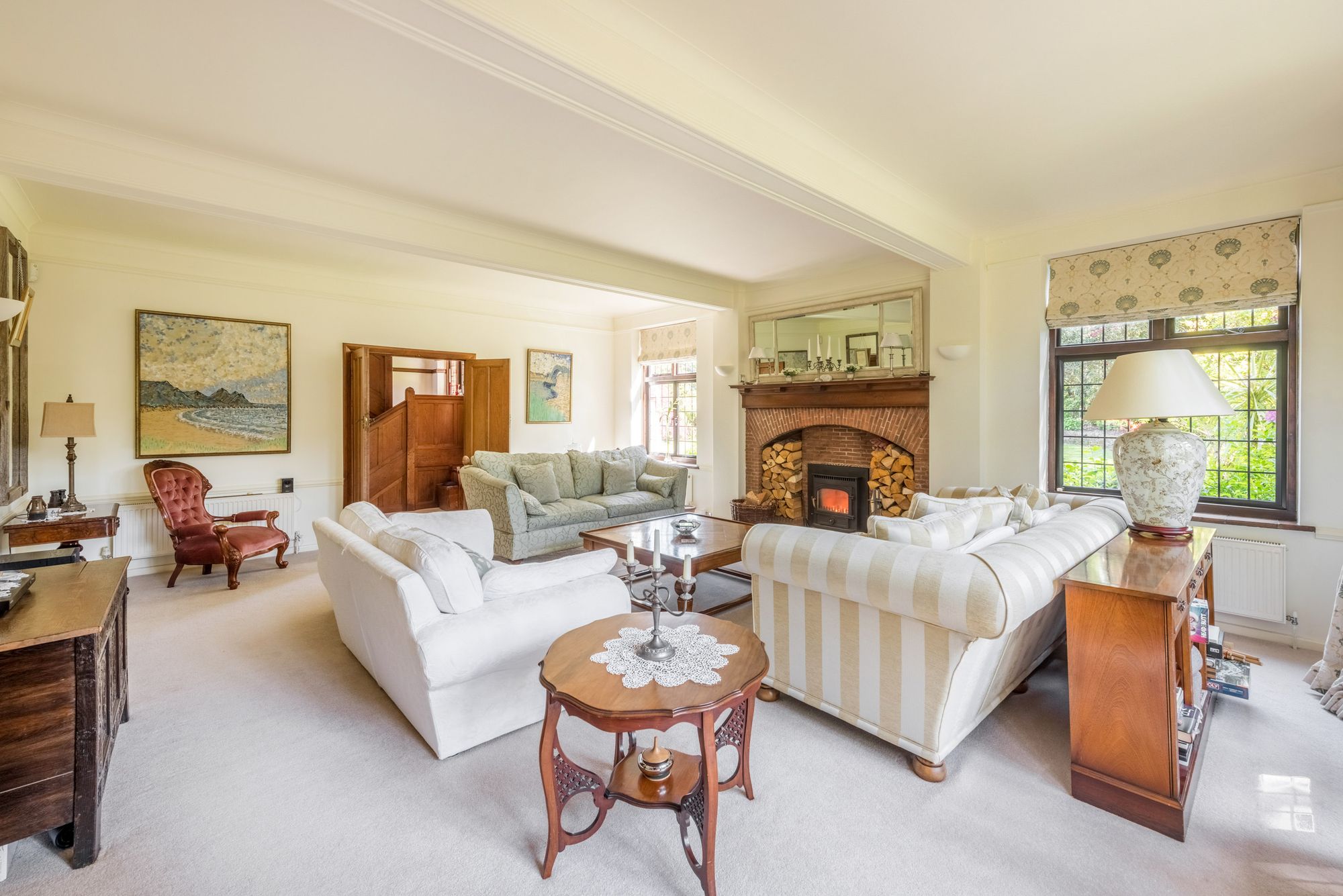 - Handsome bay fronted double aspect drawing room with wood burner