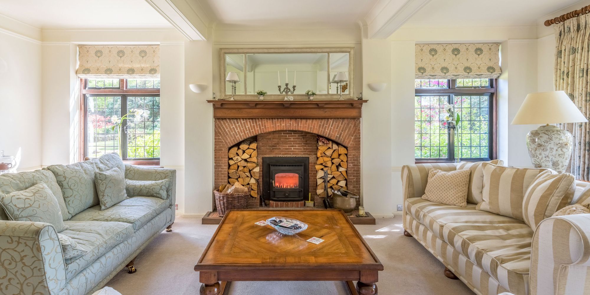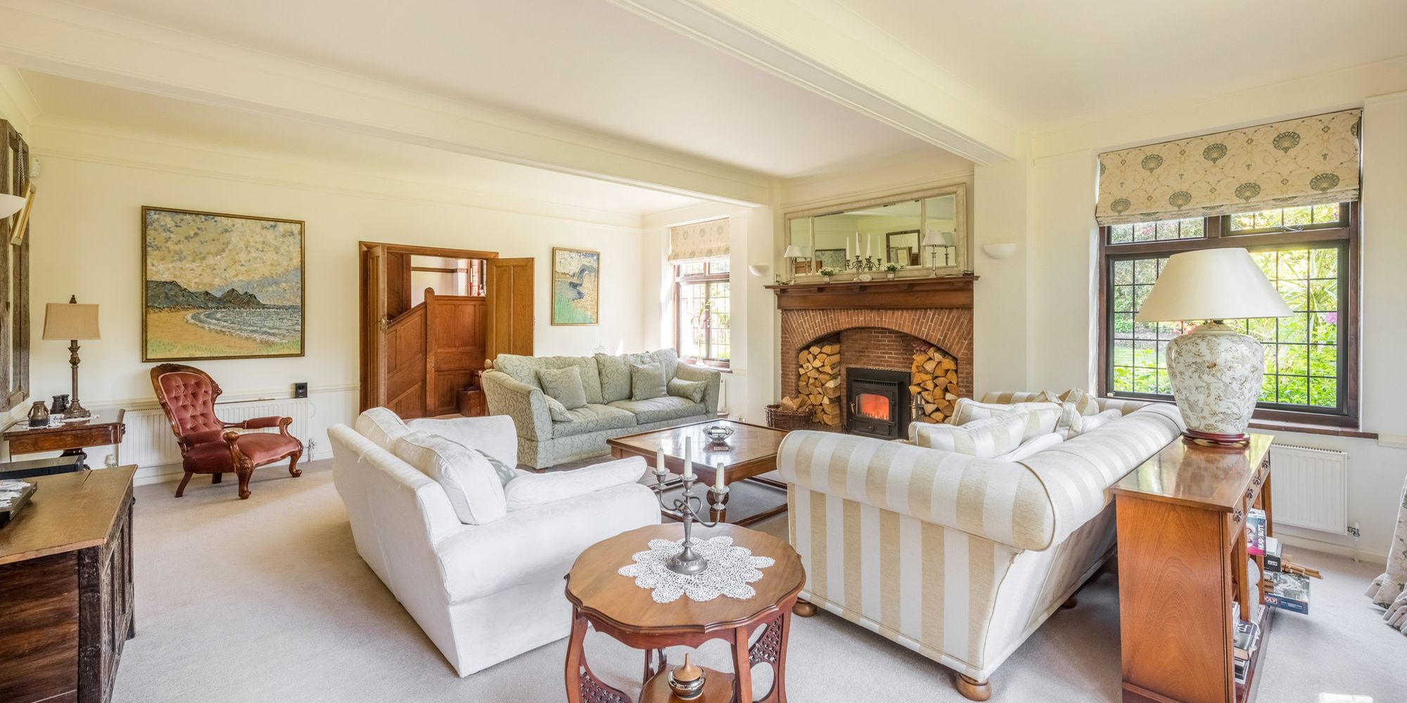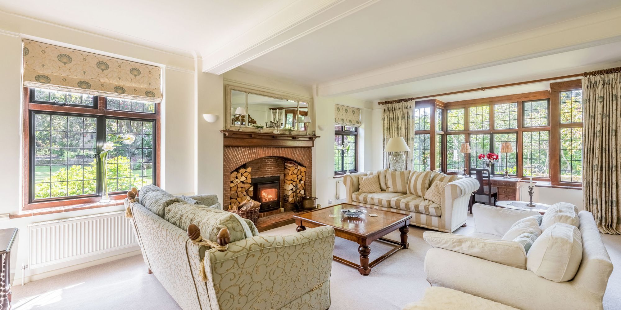 - Handsome bay fronted double aspect drawing room with wood burner