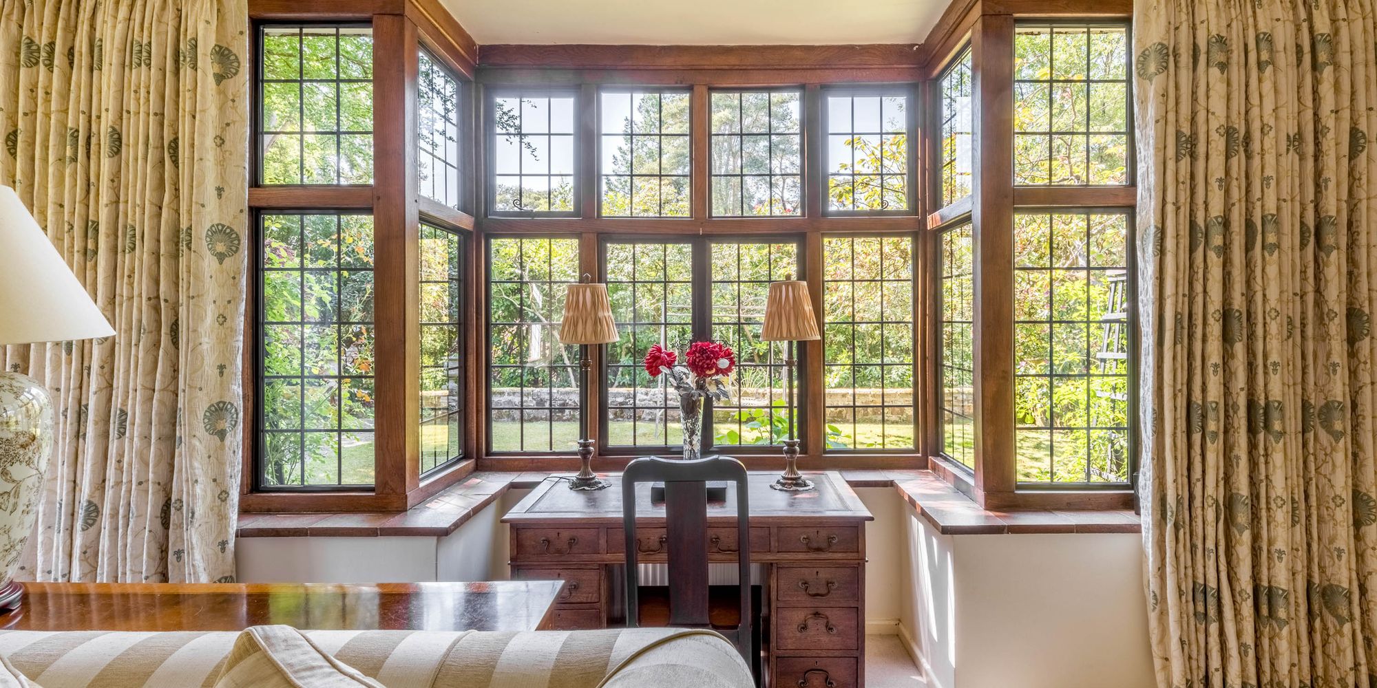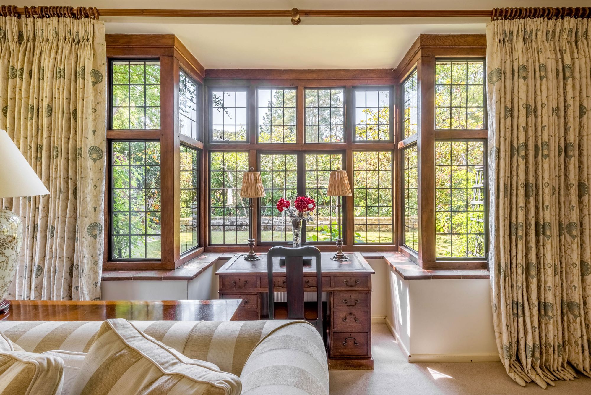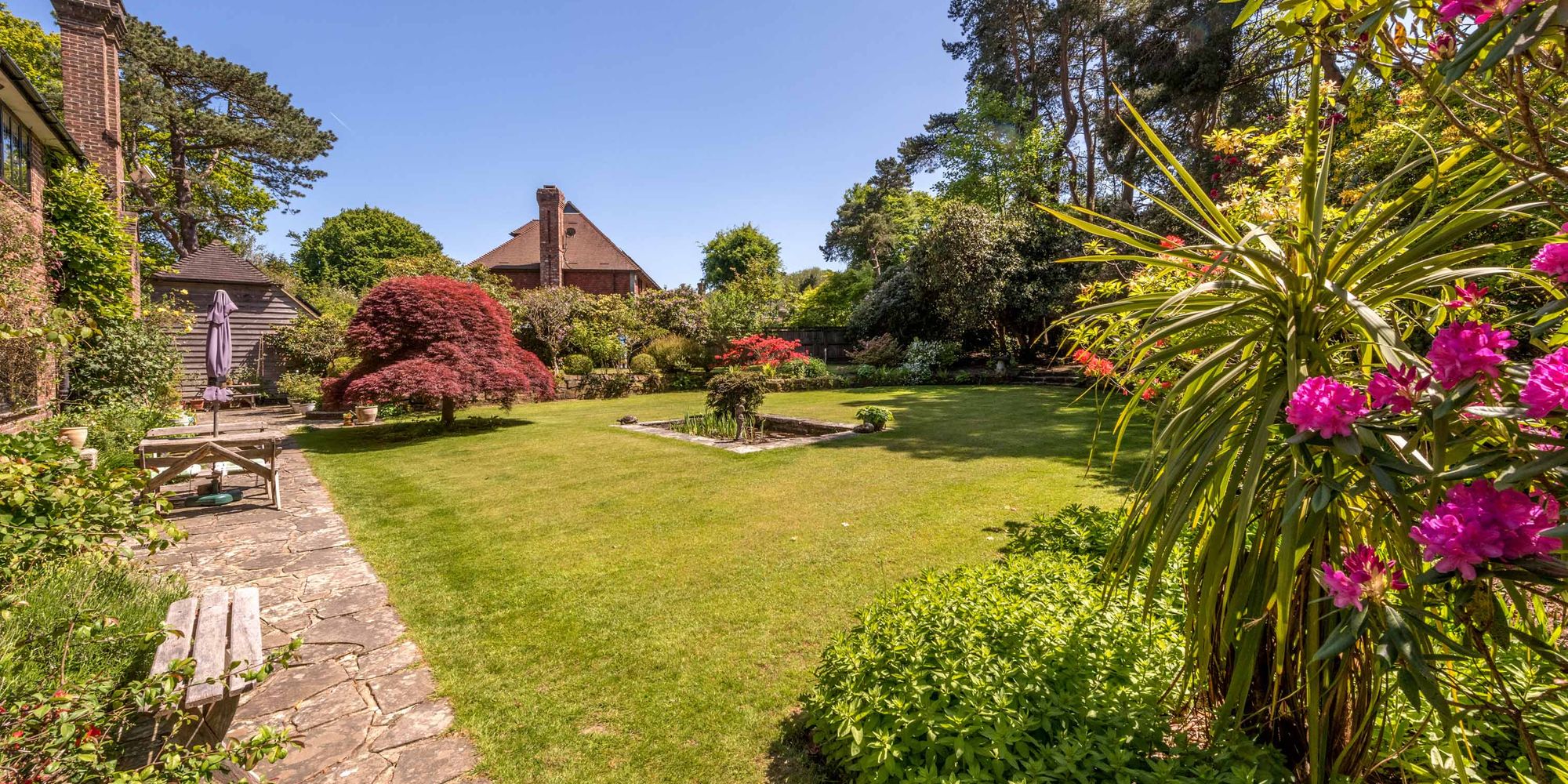 The fantastic south-facing GARDENS are a particular feature of the property and are laid to lawn with a multitude of mature trees, shrubs, and flower beds. The gardens are divided into various sections which include terraces and seating areas, ornamental pond, garden store and an attractive circular thatched gazebo which is ideal for entertaining and al fresco dining. In all the property extends to about 0.74 acres