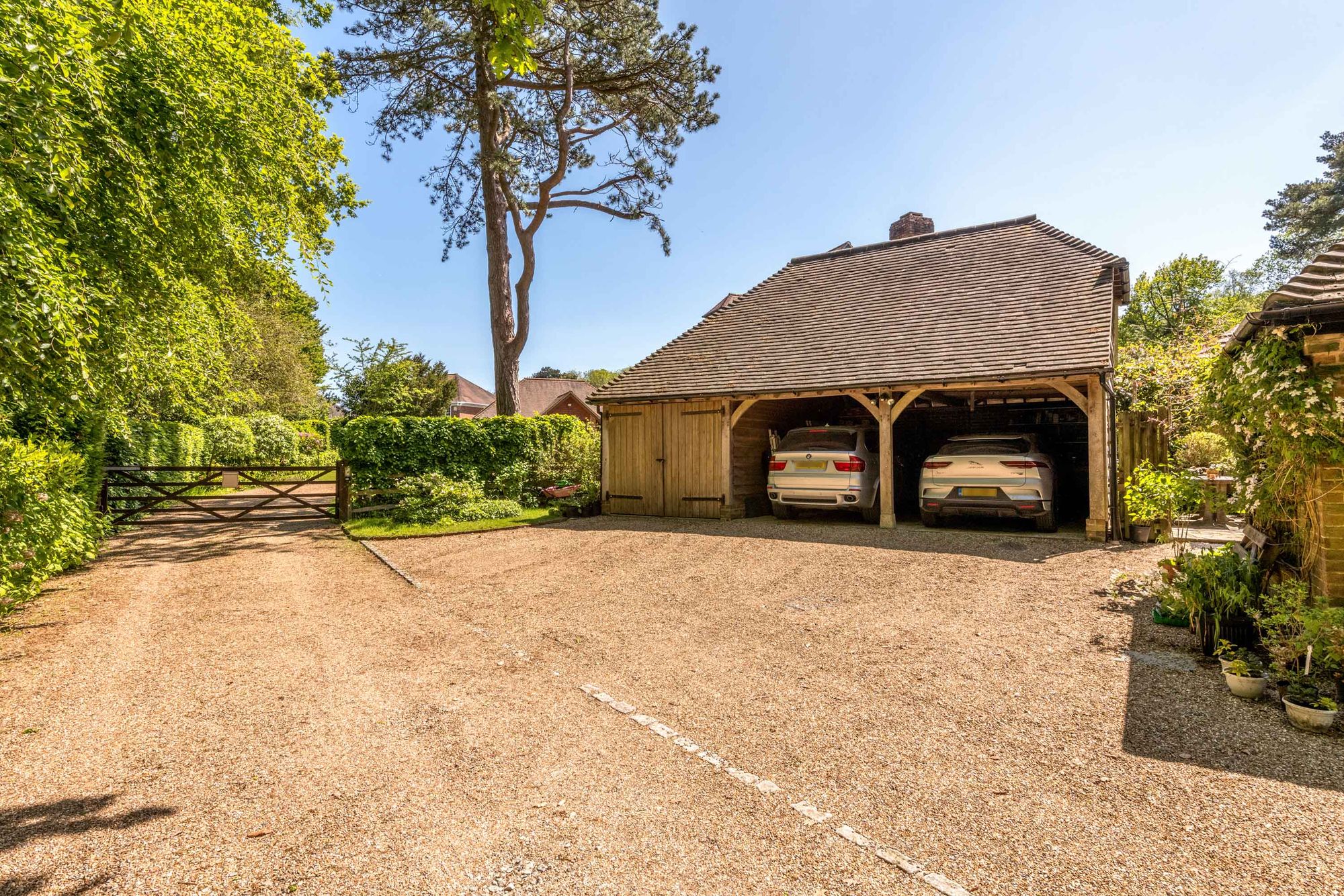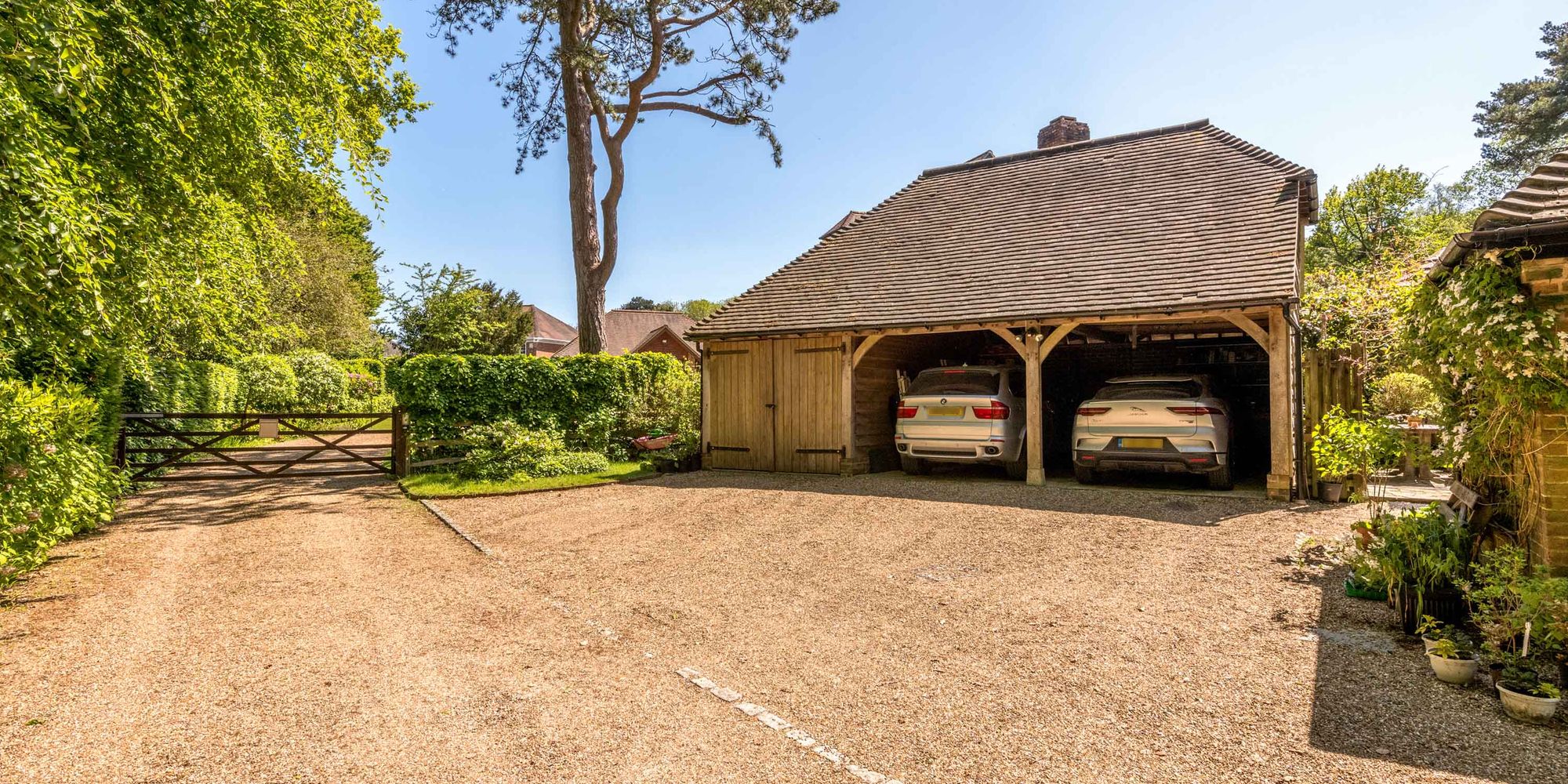 - Triple garage building with electric car charging point and solar panels