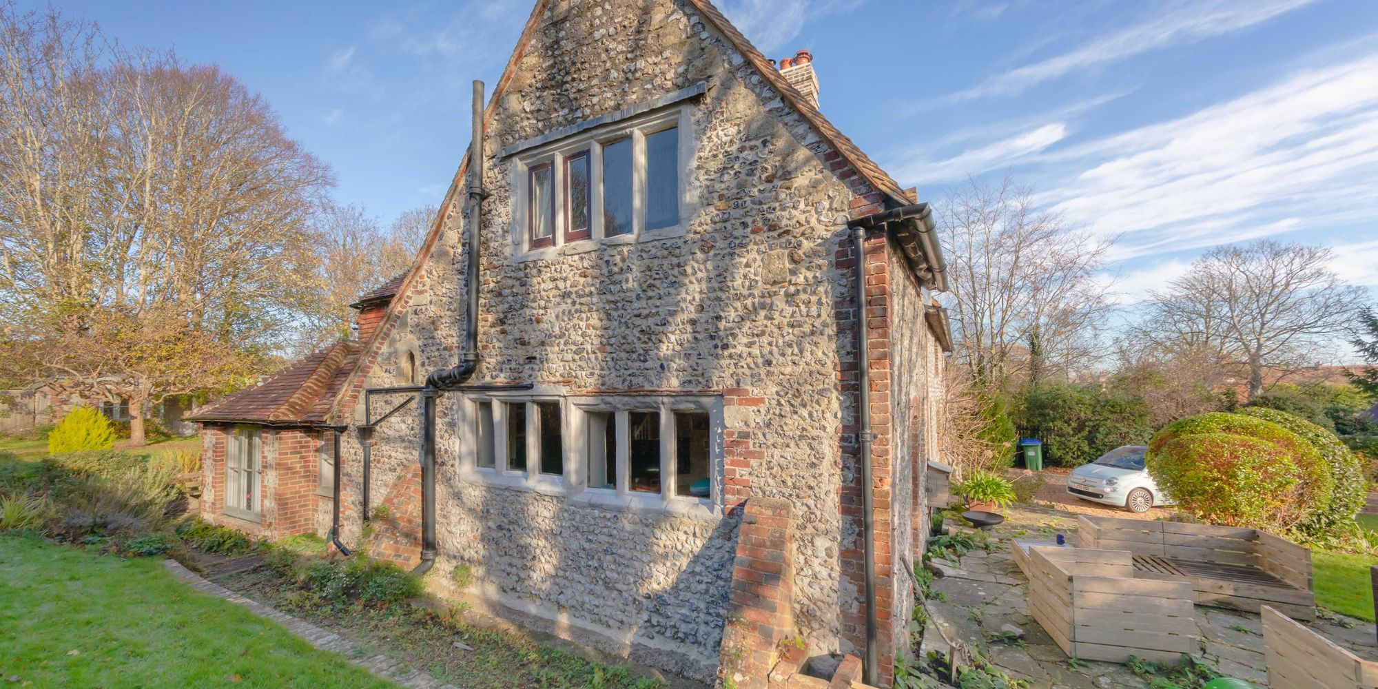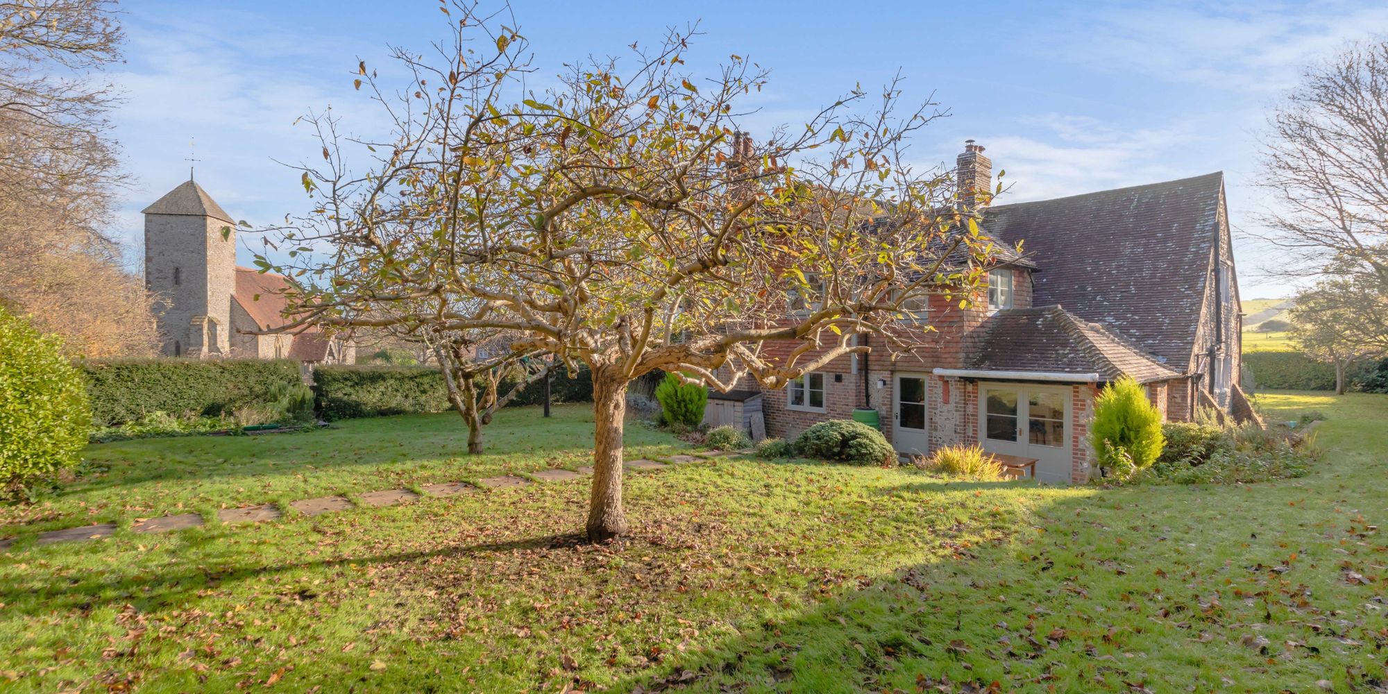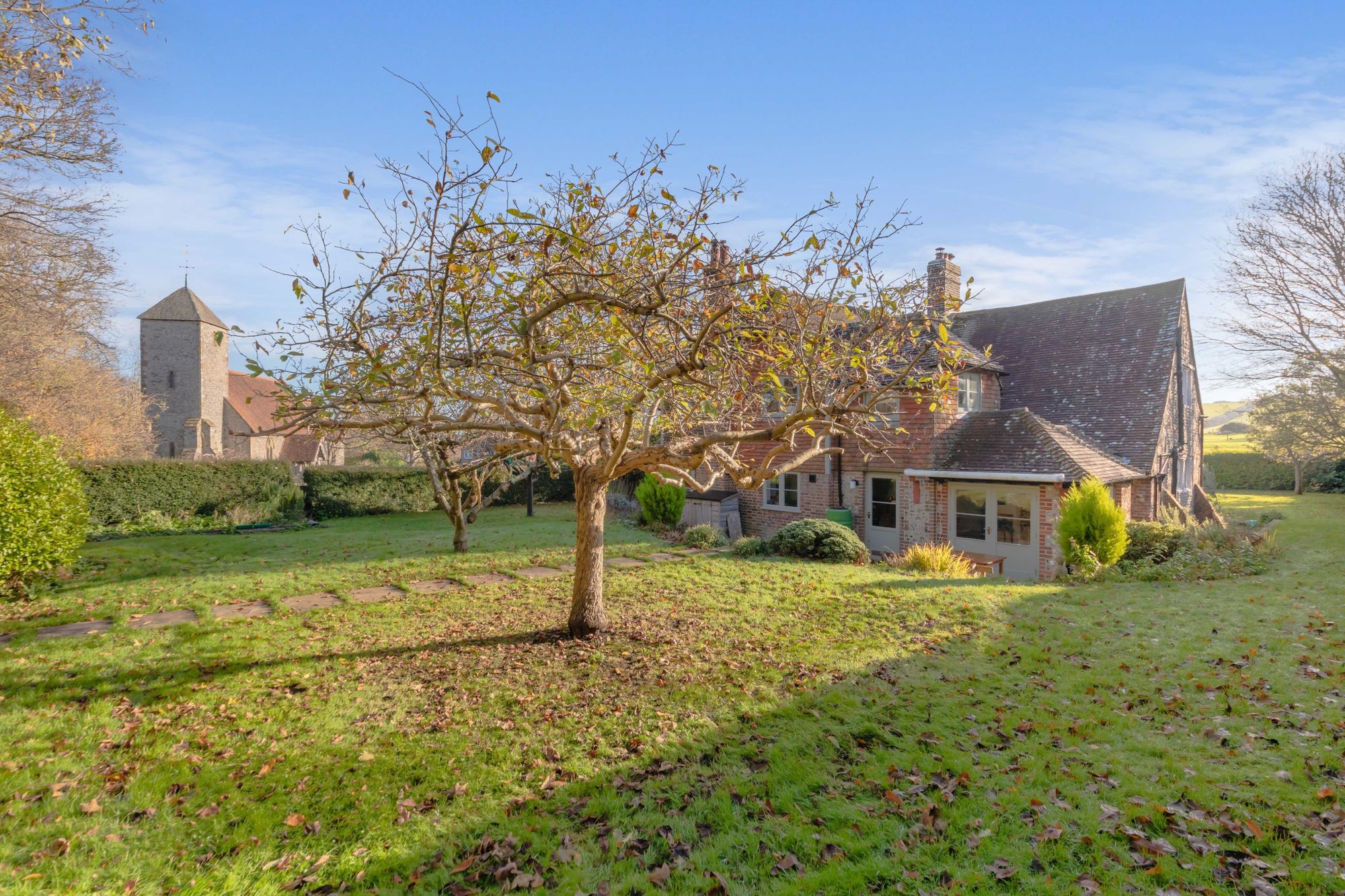 Set well back from the street with wrap around gardens and occupying an enviable position, the Grade II Listed former Hall House, is beautifully presented throughout boasting glorious views of the South Downs and of the neighbouring Church.