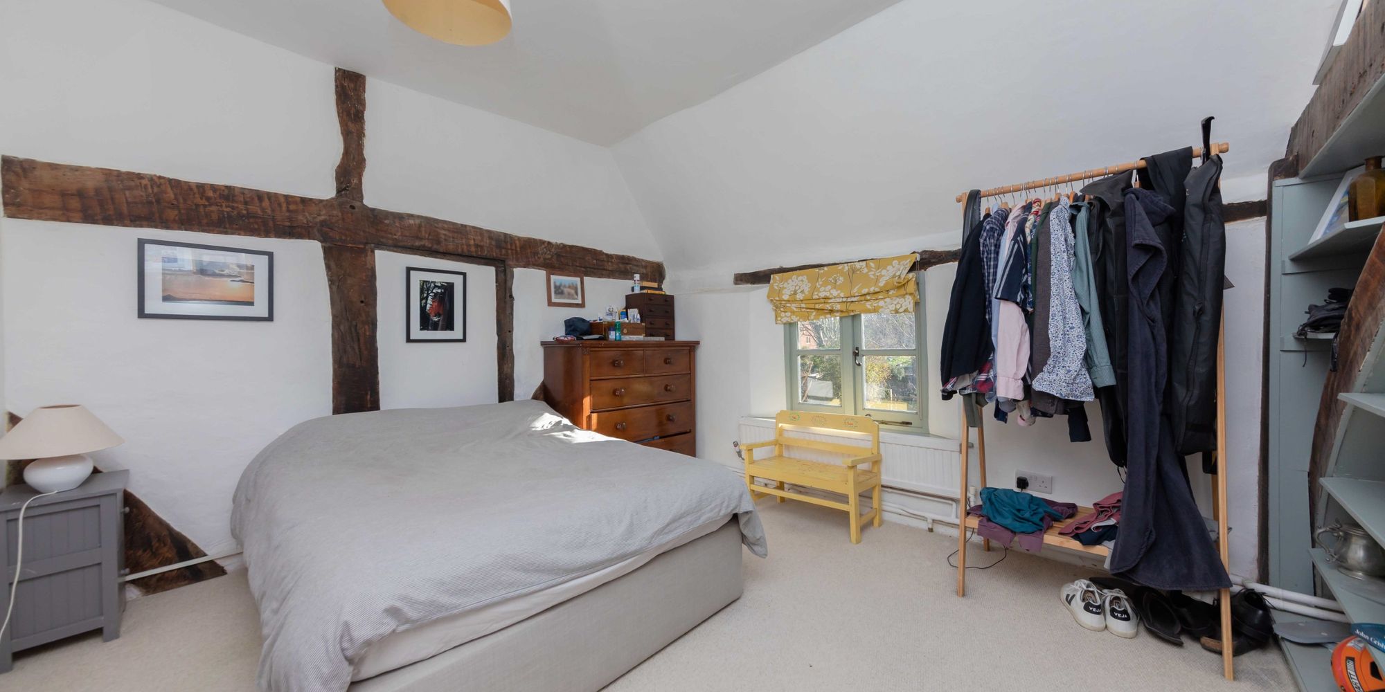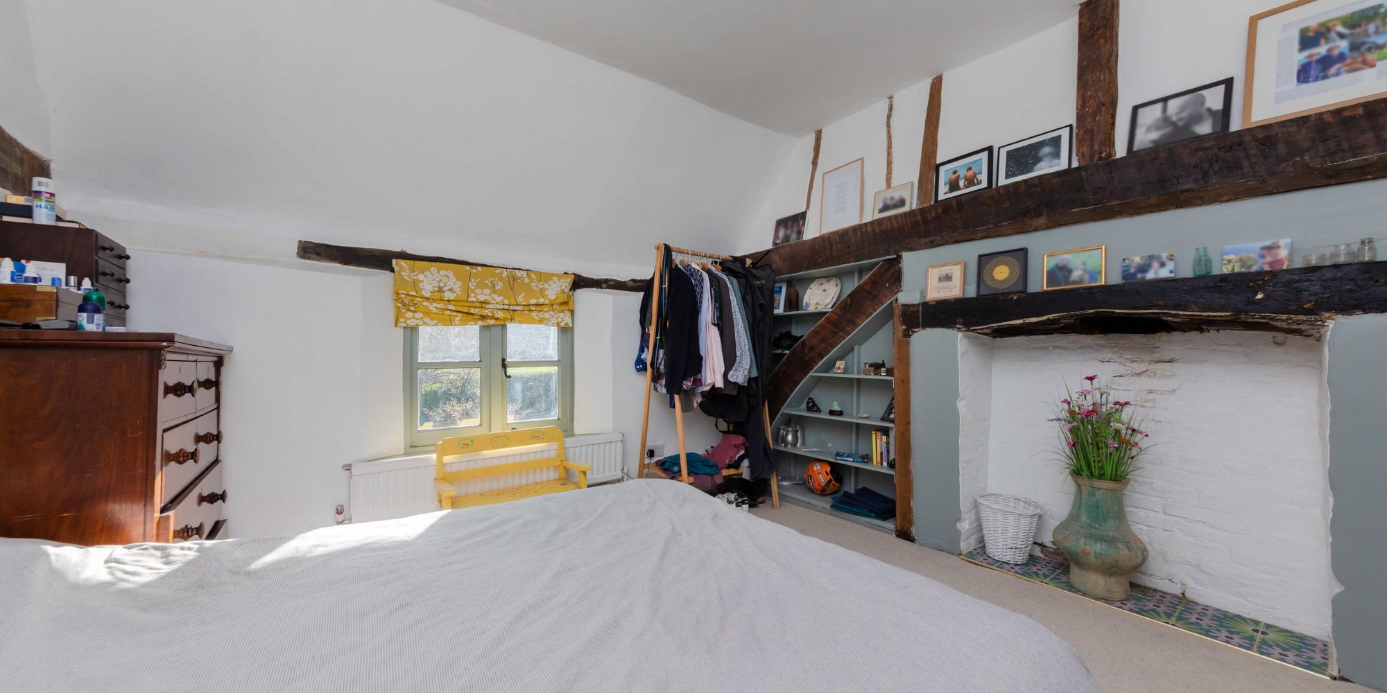 BEDROOM 3- A wonderful double bedroom with exposed beams to the walls, and dual aspect views of the neighbouring church and of the South Downs to the front.