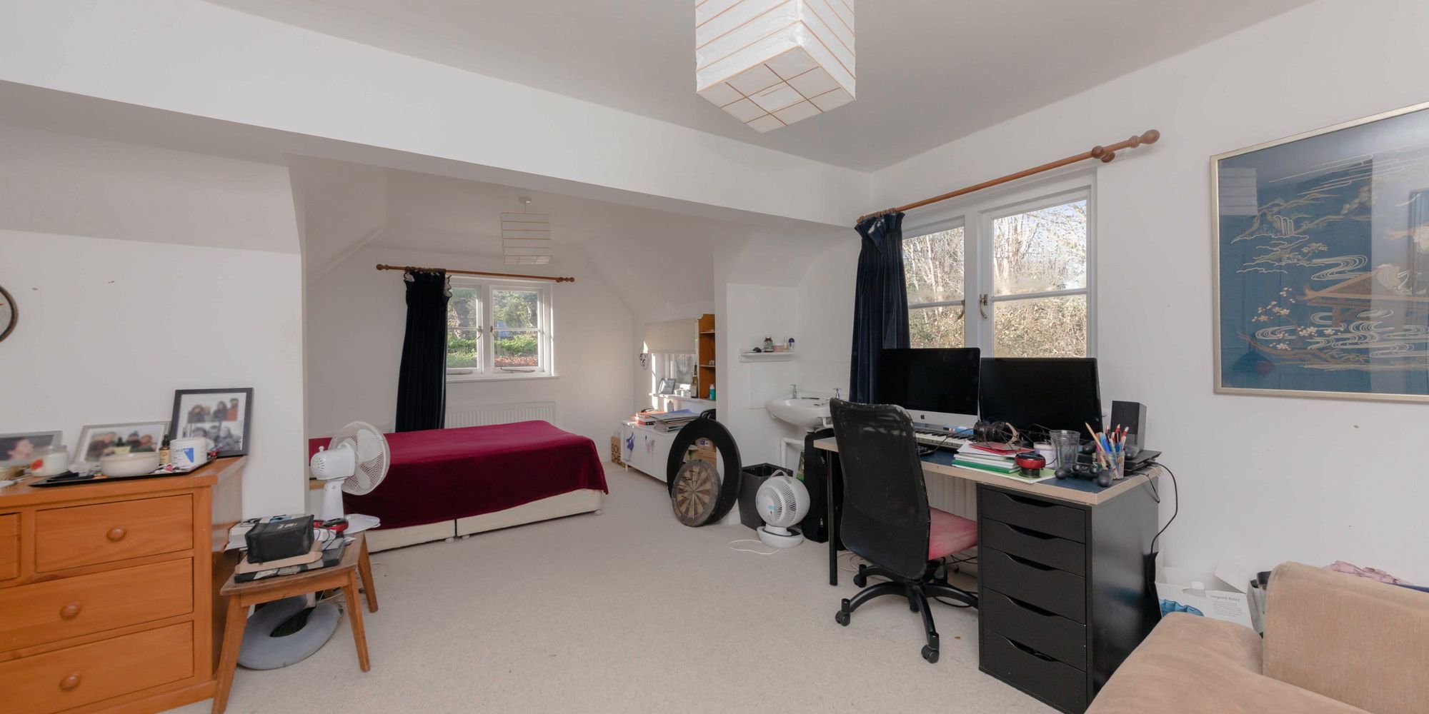 BEDROOM 2- The 18ft double bedroom enjoys elevated views over the garden and to the South Downs to the side. The dual aspect bedroom features a fitted wardrobe and a useful wash hand basin.