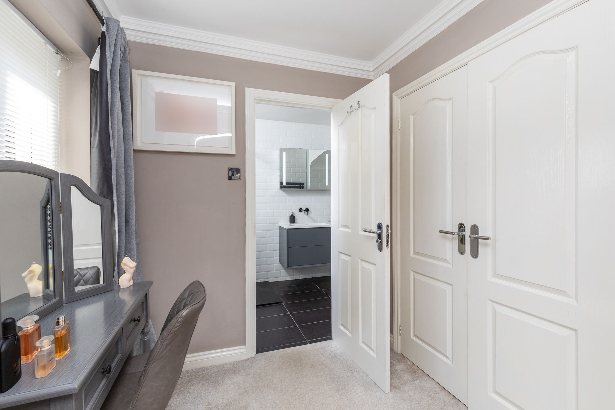 The principal bedroom is fitted with wardrobes, dressing area and re-modelled bath/shower room.