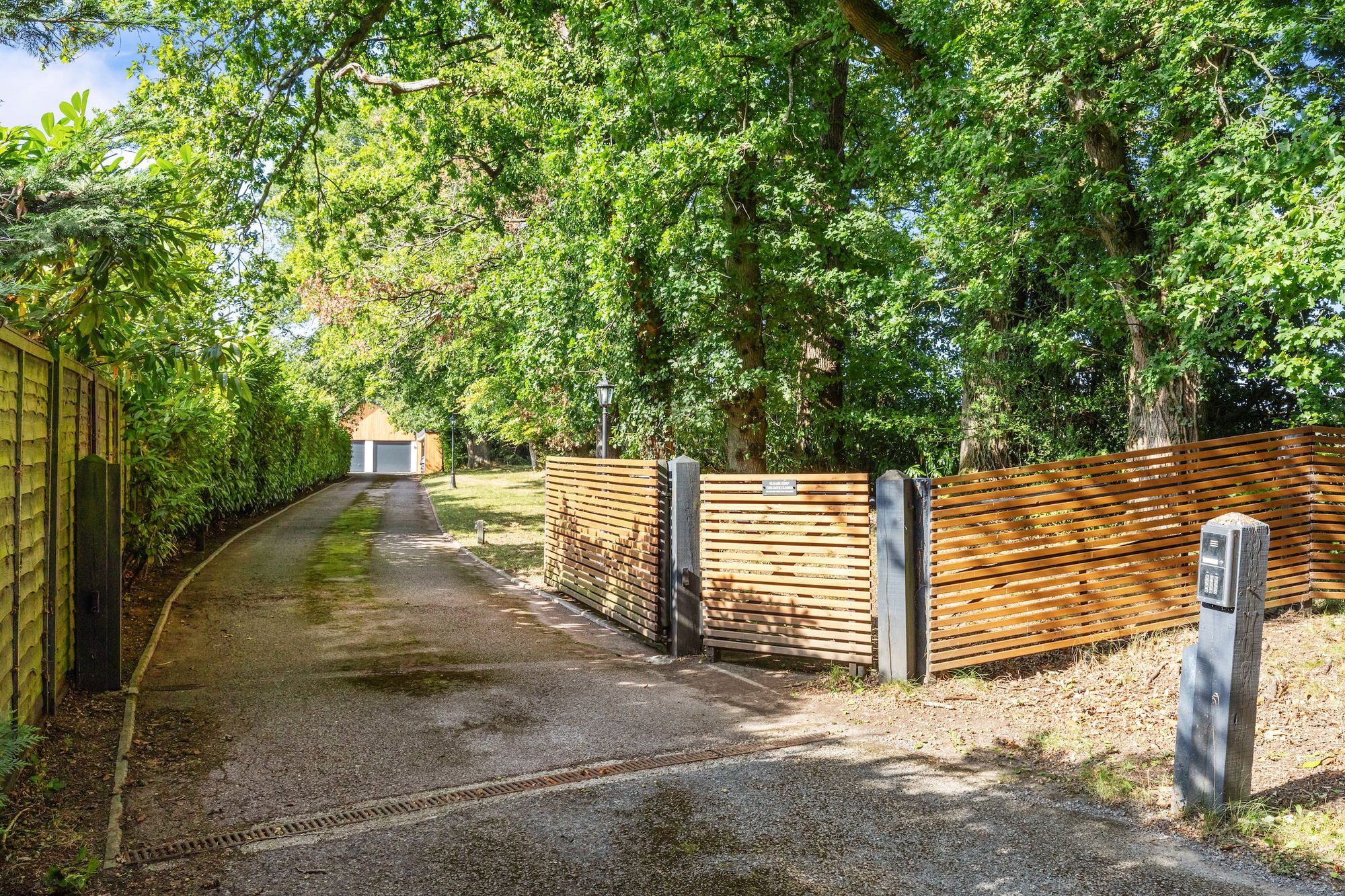 A secure and remote controlled gated entrance provides a perfect approach to a large parking area, 19’3 × 18’8 double garage with power, remote controlled roller shutter doors, courtesy door to the rear garden and full height loft storage above. There is an opportunity to incorporate this into the property which would create additional living accommodation, if required.