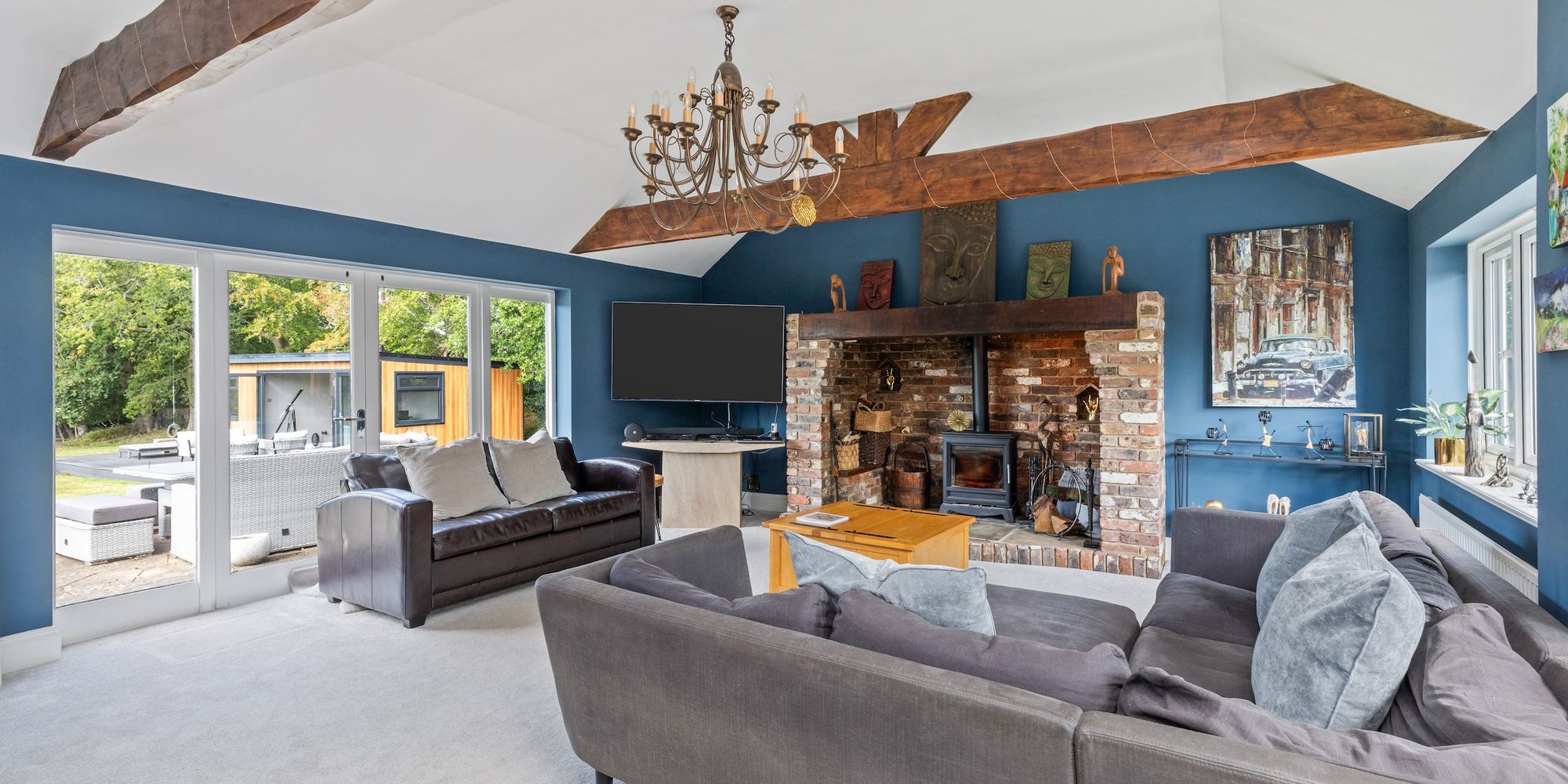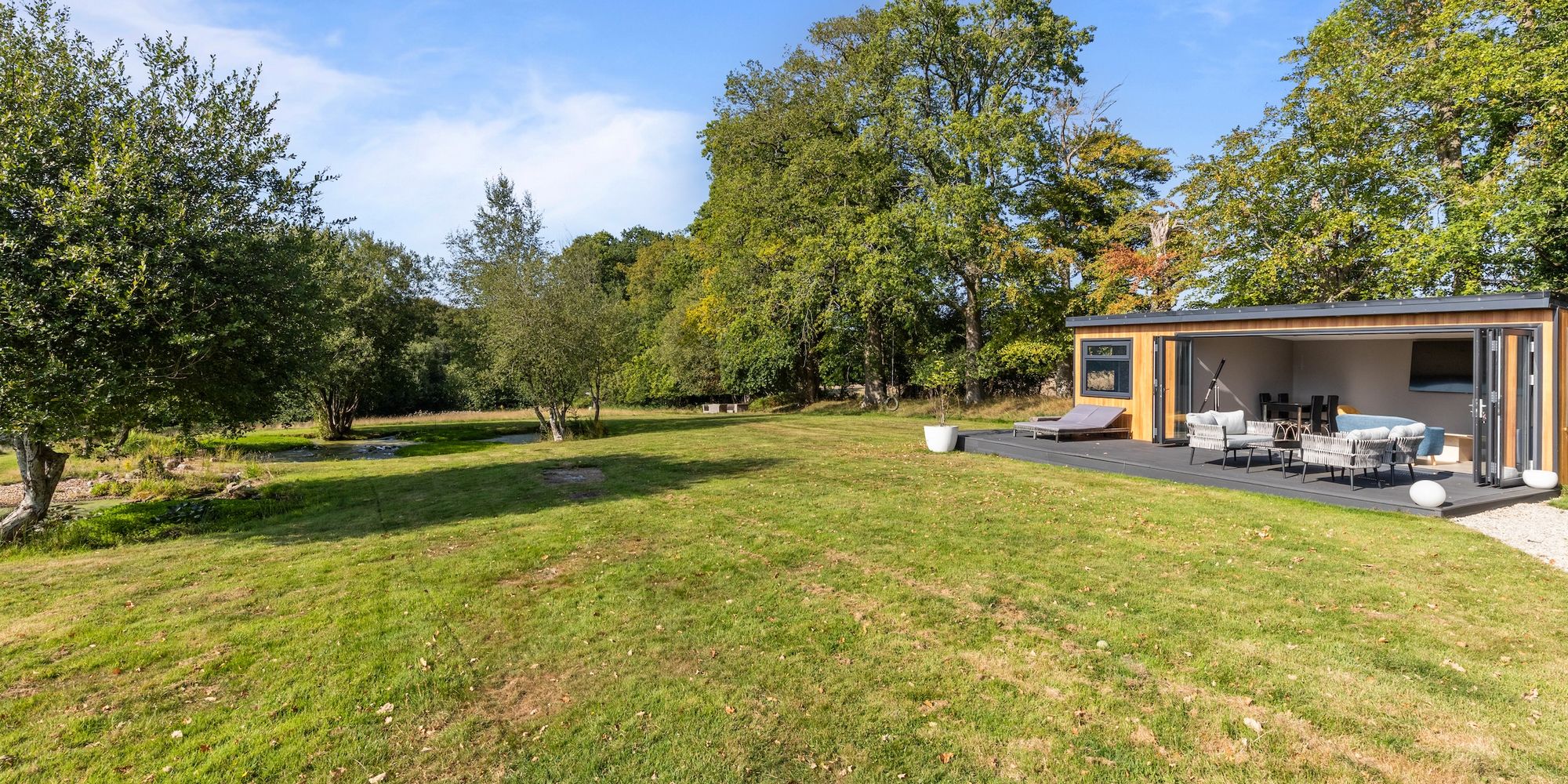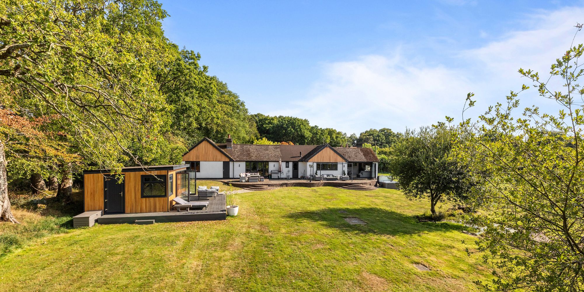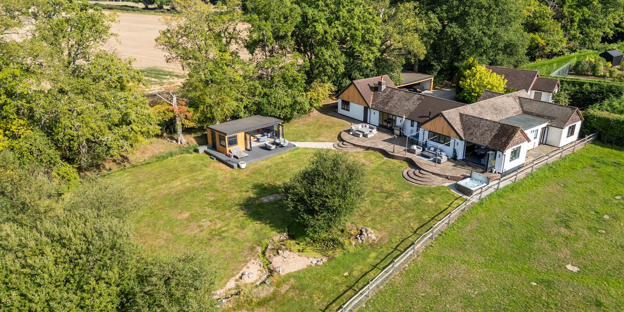 The 22’2 × 17’10 detached annex with kitchenette and shower room is ideal for elderly relatives, teenagers, or those with a business.