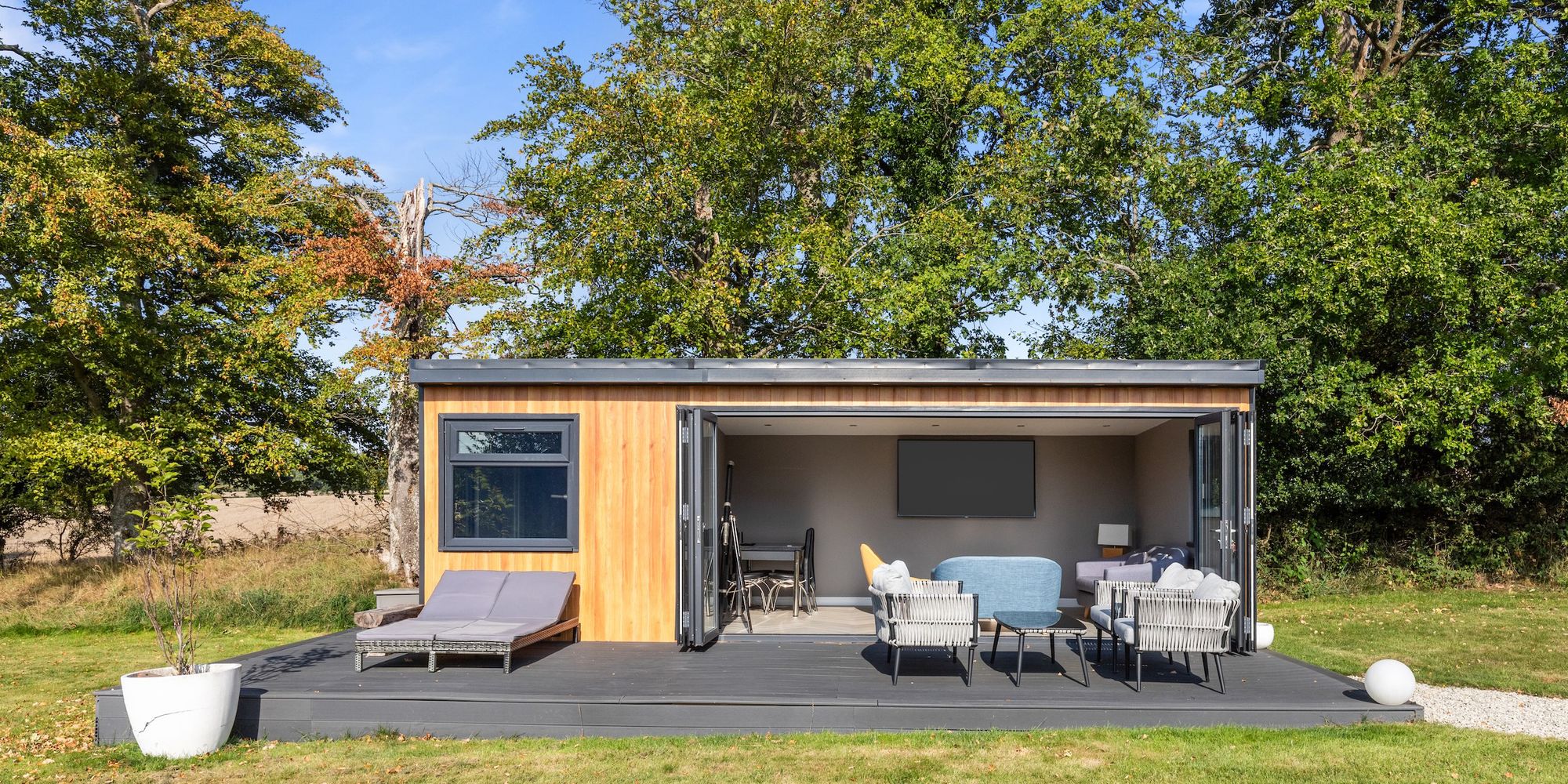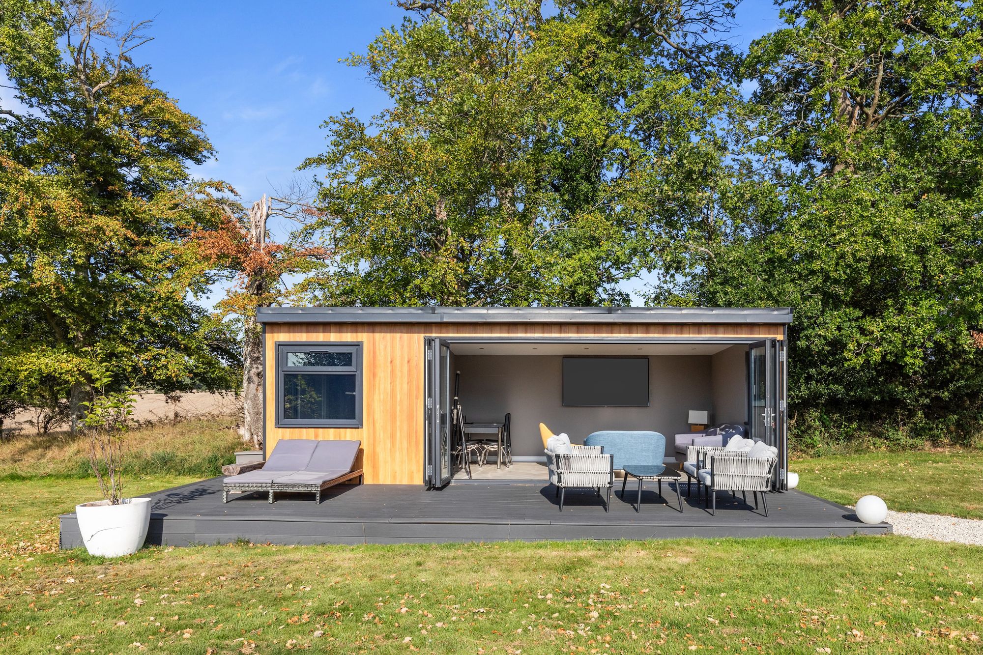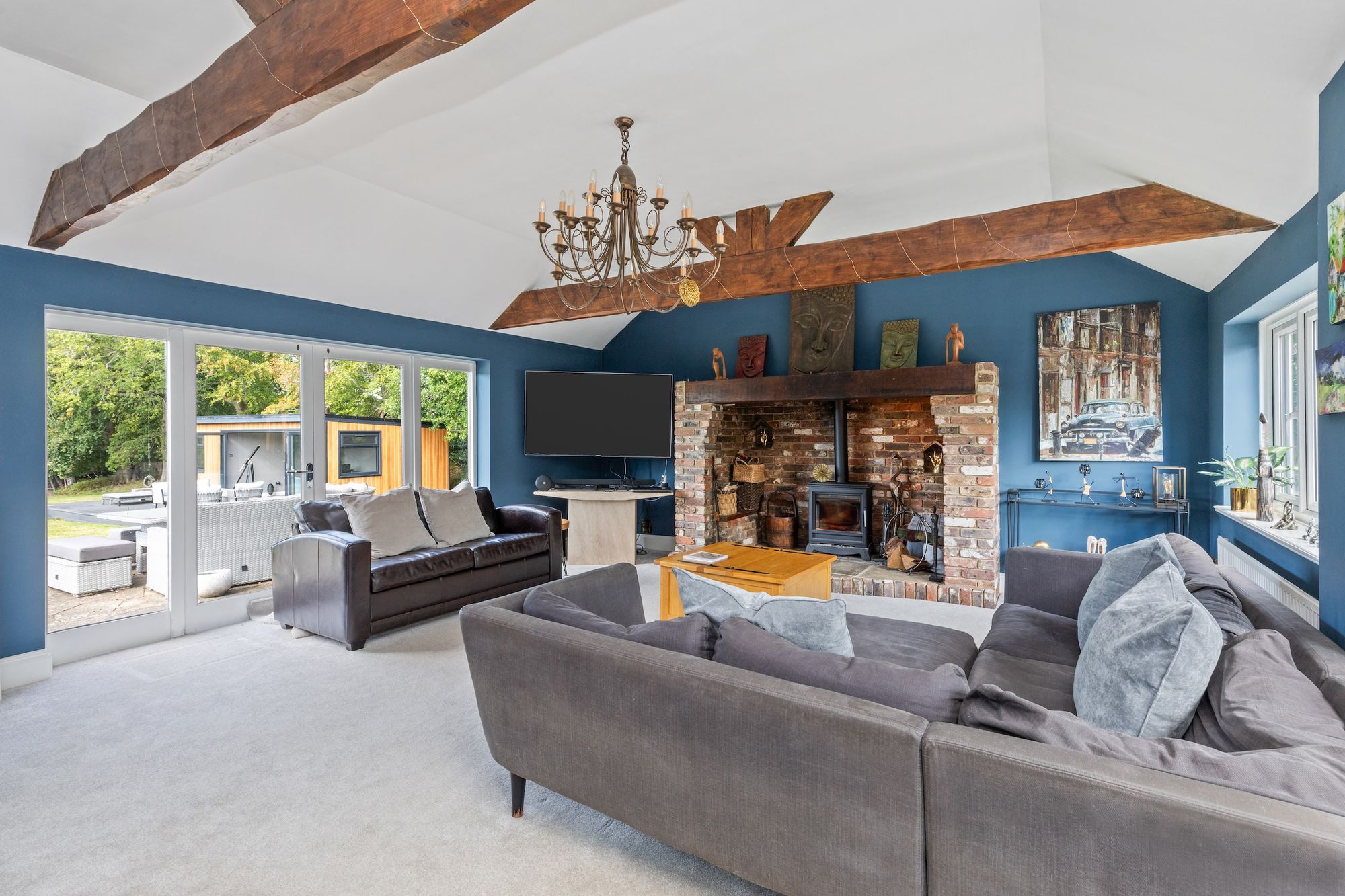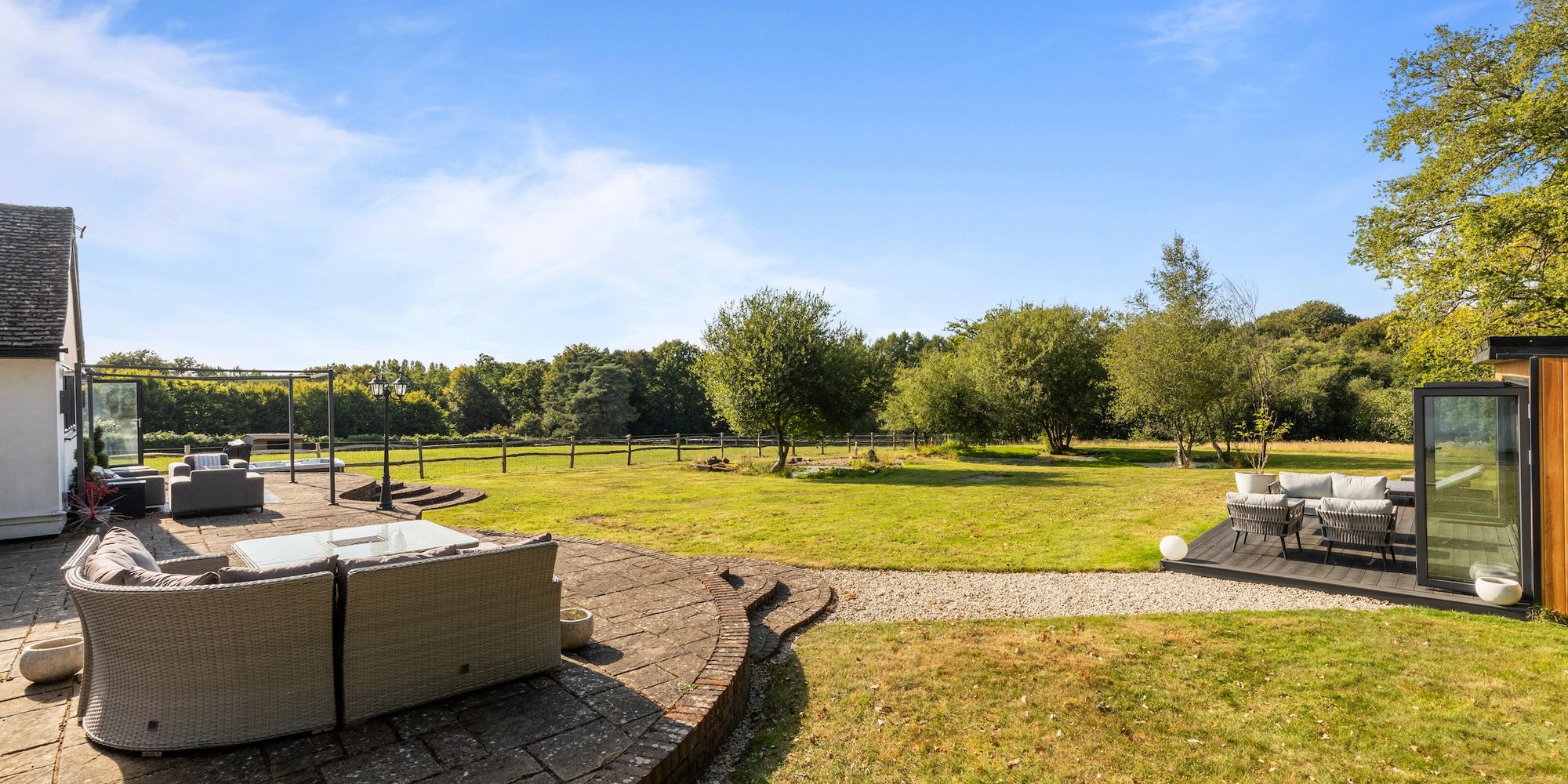 The 22’2 × 17’10 detached annex with kitchenette and shower room is ideal for elderly relatives, teenagers, or those with a business.