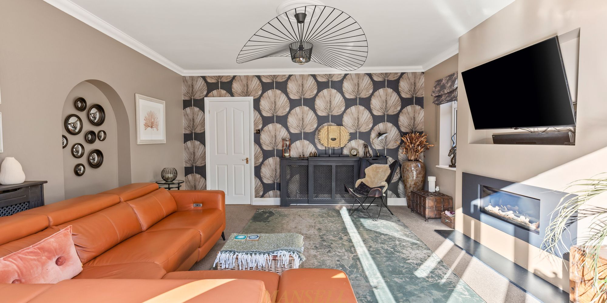 To the rear of the house is the dual aspect living room, finished in a neutral décor with French doors leading out to the rear garden and a modern inset wall mounted electric fireplace creating a focal point. The room measures approximately 16ft X 14ft making it easy to accommodate and position plenty of living room furniture.