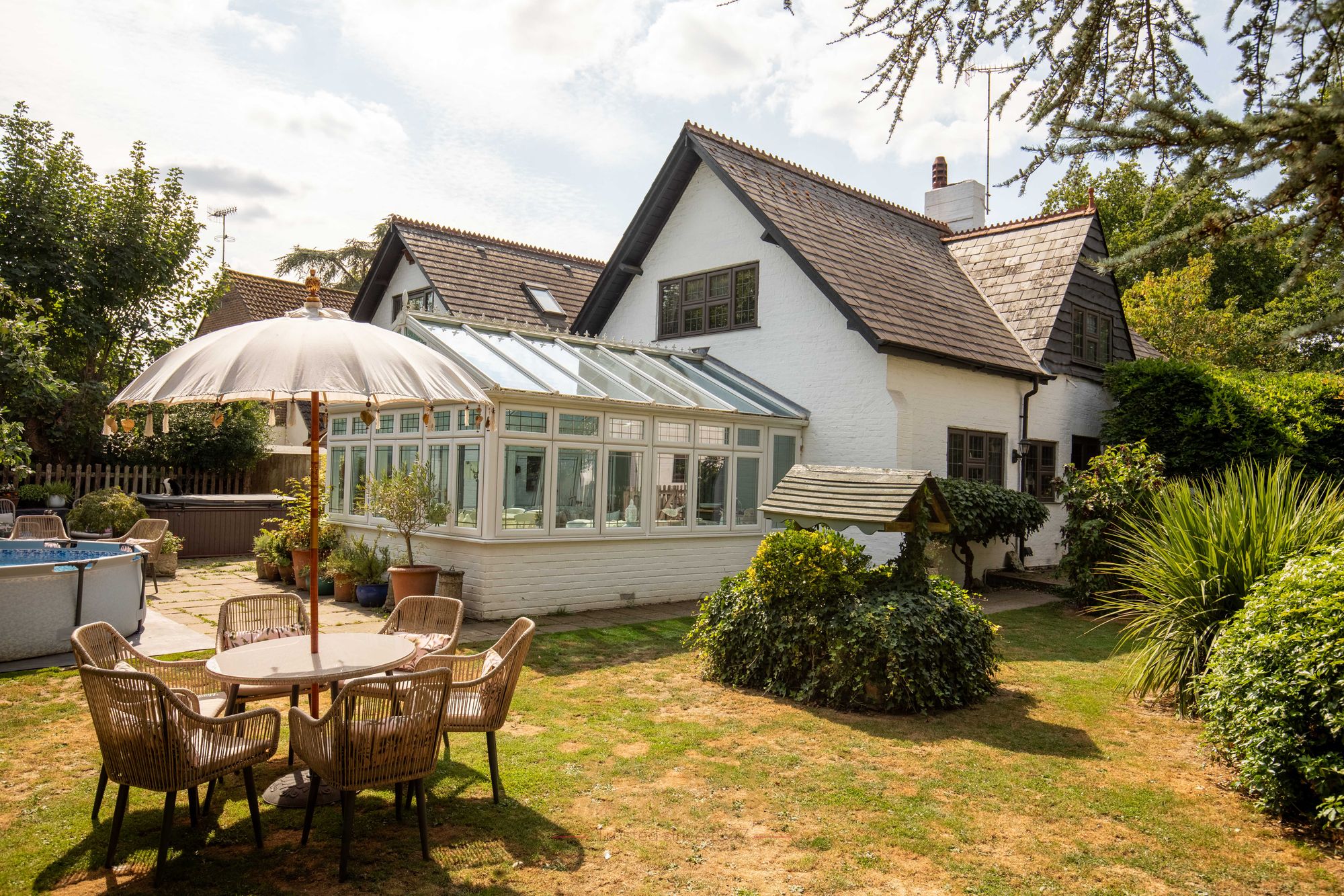 Both share generous grounds with a host of mature trees, shrubs, vegetable and fruit patches. There is also a tasteful original well and a pond. The remainder is laid to lawn and has high reaching boarders giving a sense of privacy and seclusion. There are also 2 large storage shed with an attached summer house.