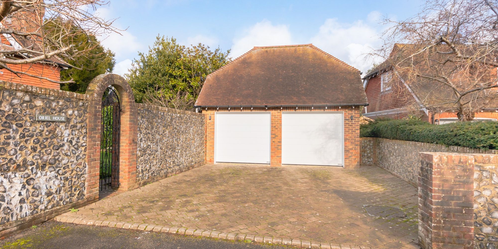 DOUBLE GARAGE- A wonderful garage approached via a full width block paved driveway offering parking for two cars, electric garage doors with a personal door to the garden, power, light and stair access to the loft space which is currently used for storage but offers potential for conversion STP. Electric car charge point.