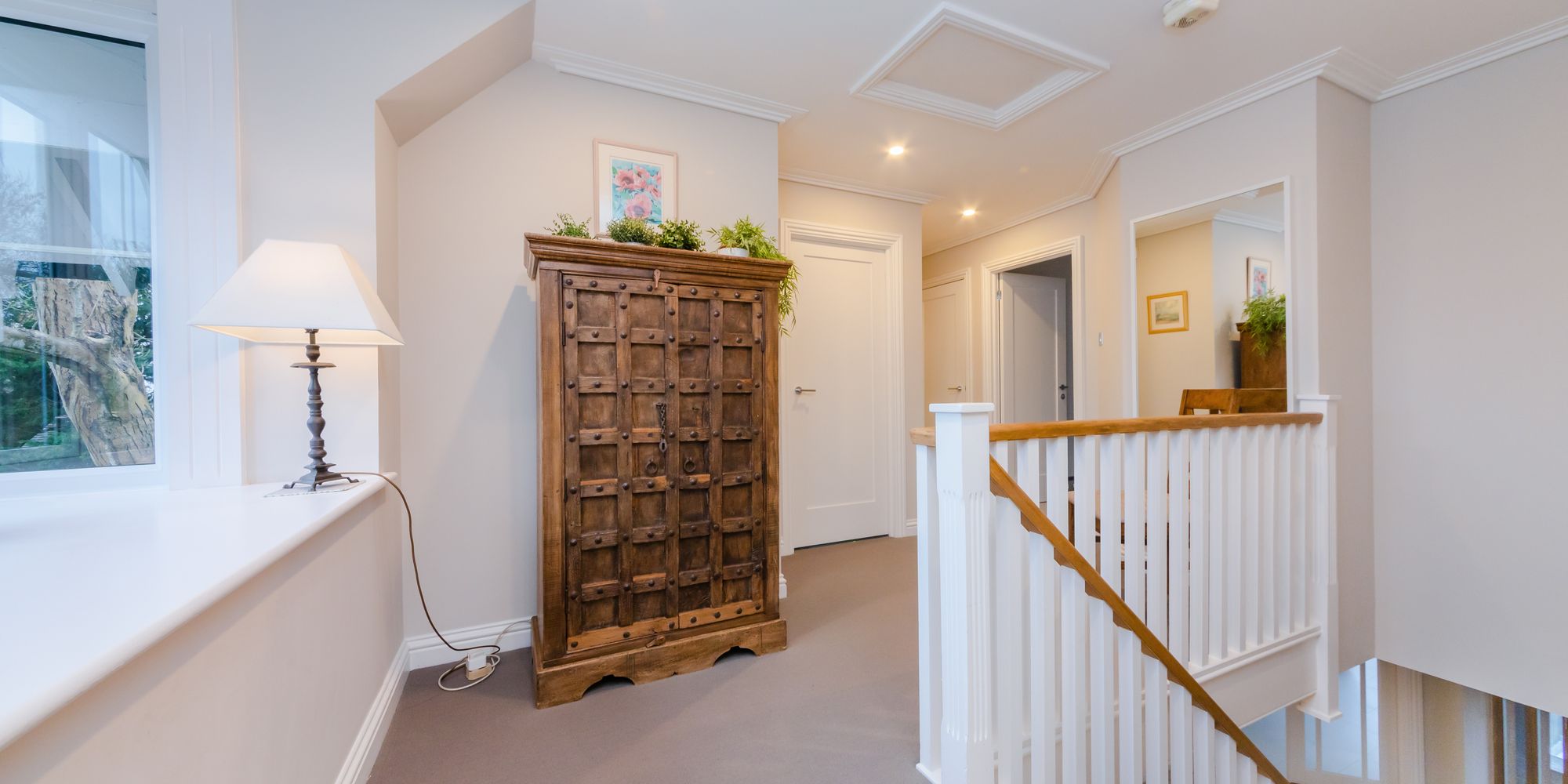 FIRST FLOOR LANDING- A bright, spacious landing with a box bay window, airing cupboard, access to loft space.